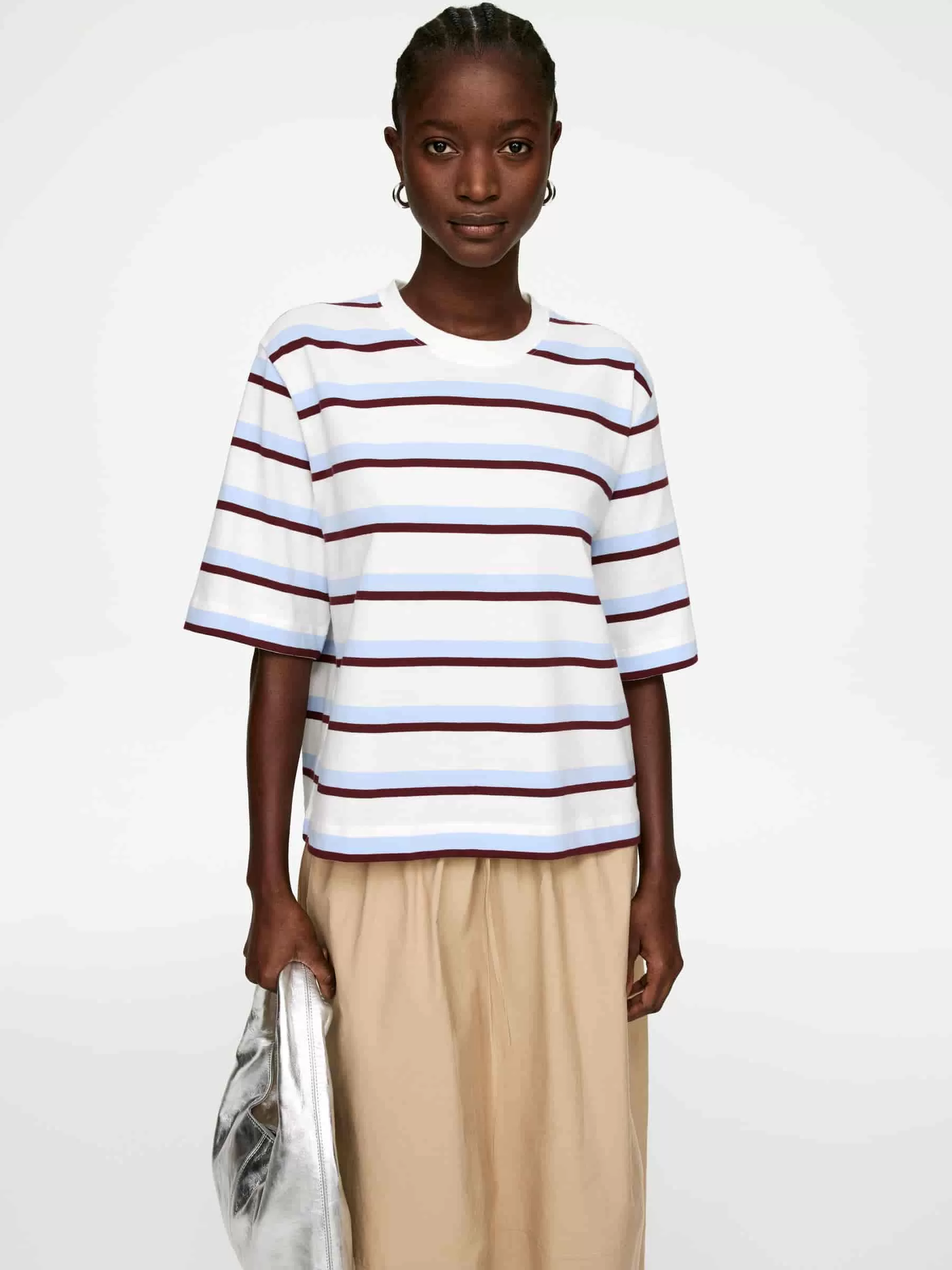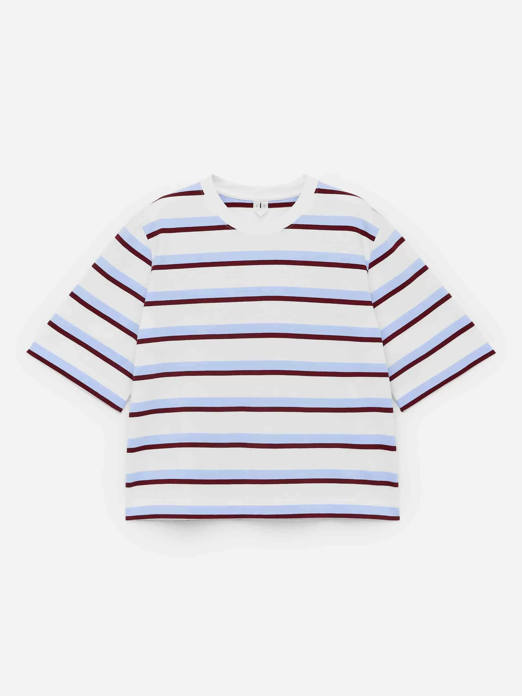 ARKE Damen ALBA Schwergewichts-T-Shirt Weiß/Blau/Dunkelrot