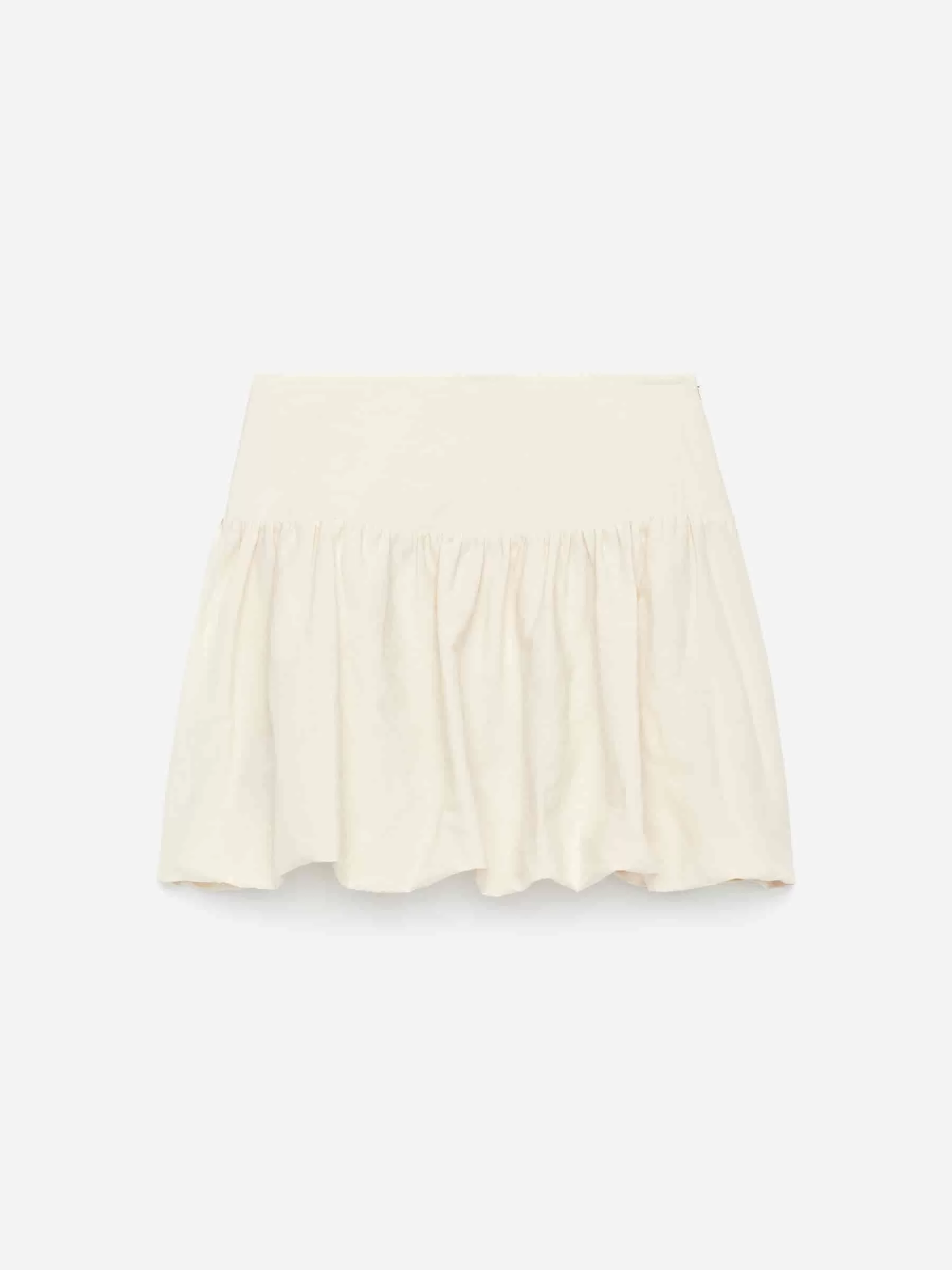 Minirock aus einer Baumwoll-Leinen-Mischung mit Ballonsaum und verdecktem Reißverschluss mit Haken- und Ösenverschluss. Normale Passform.