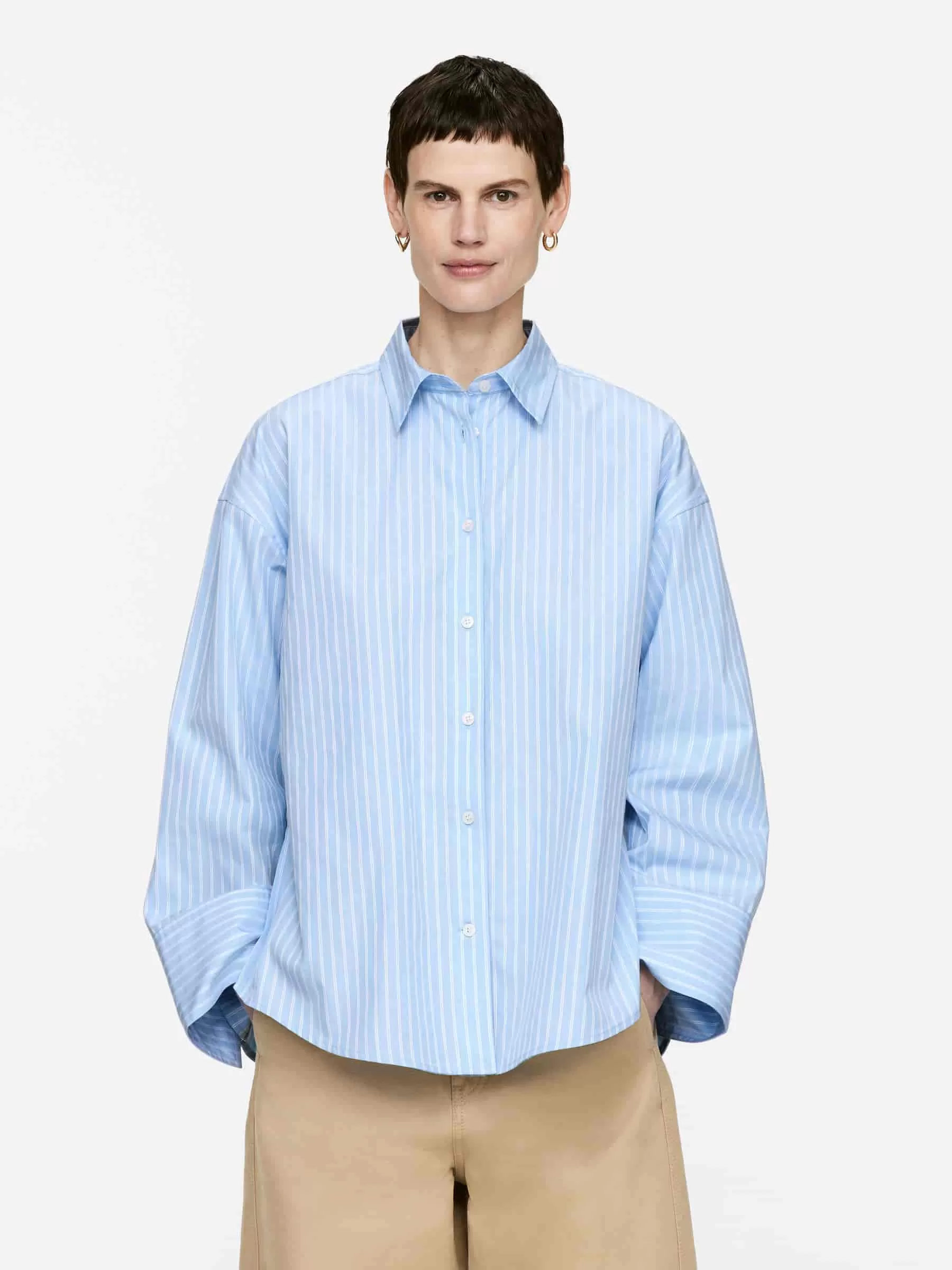 ARKE Damen Baumwollhemd mit weiten Ärmeln Hellblau