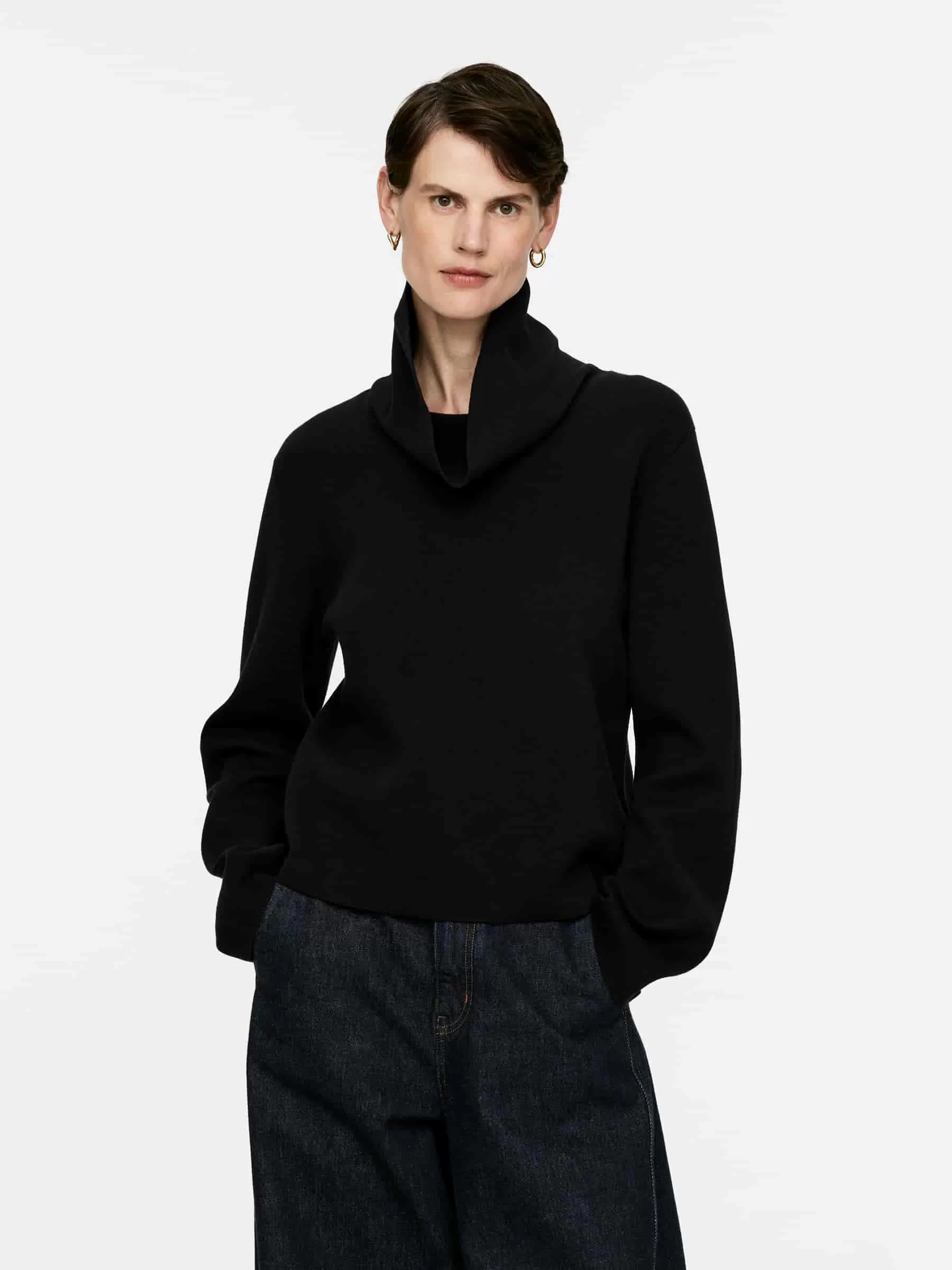 ARKE Damen Baumwollpullover mit Stehkragen Schwarz