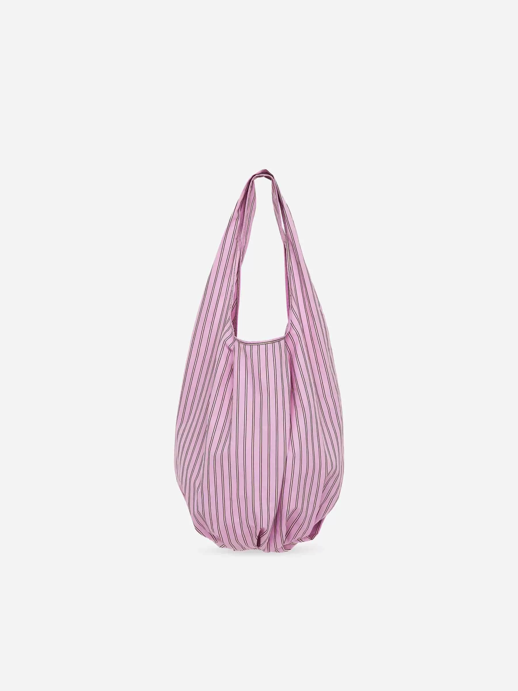 Abgerundete Tragetasche aus Nylon mit einer Innentasche zum Verstauen der Tasche. Körpermaße: Breite 54 cm, Höhe 31 cm. Grifftiefe 17 cm.