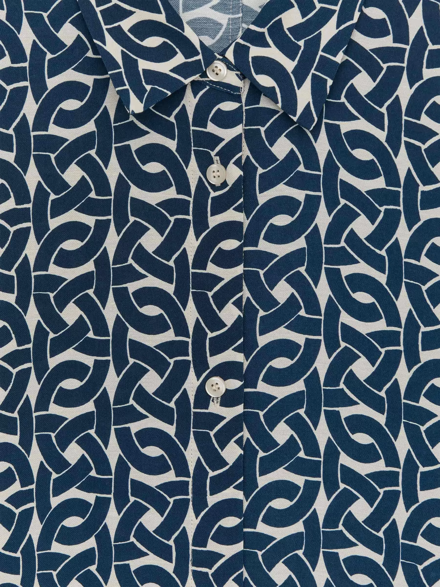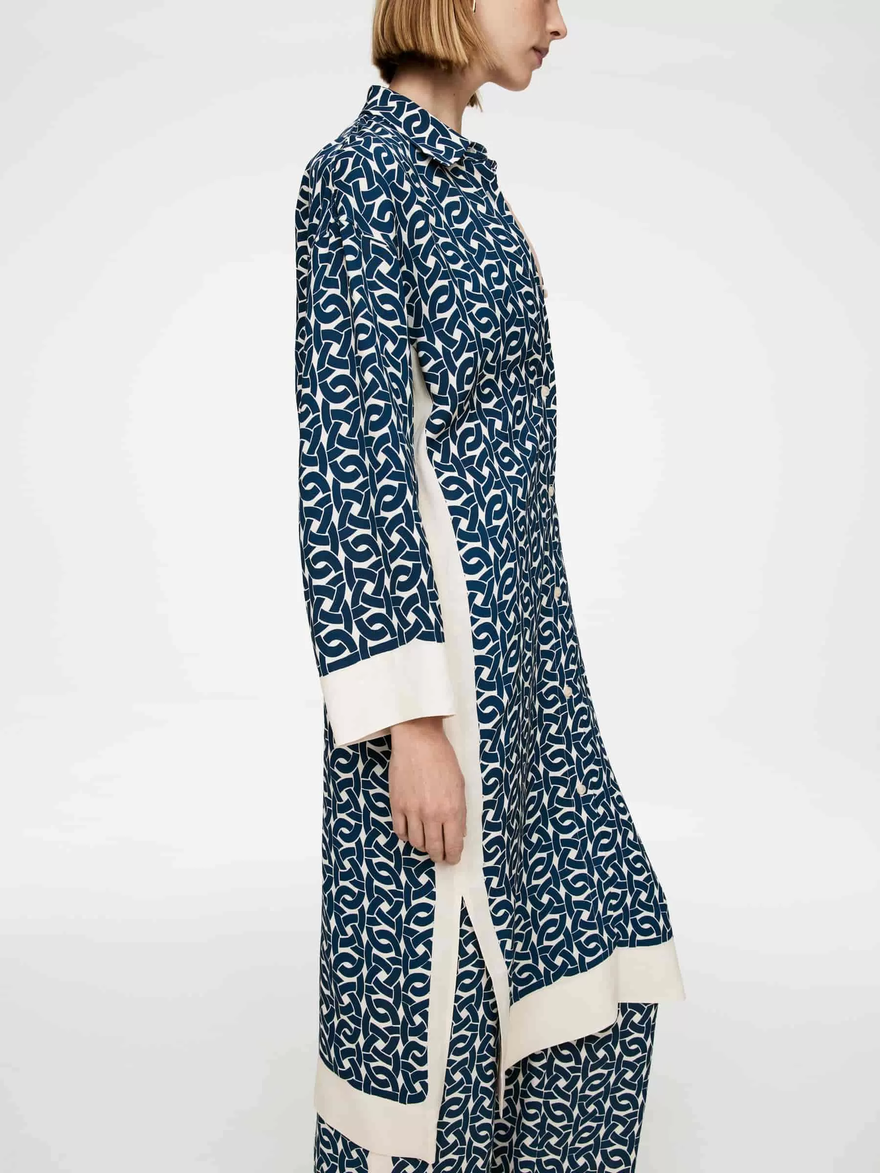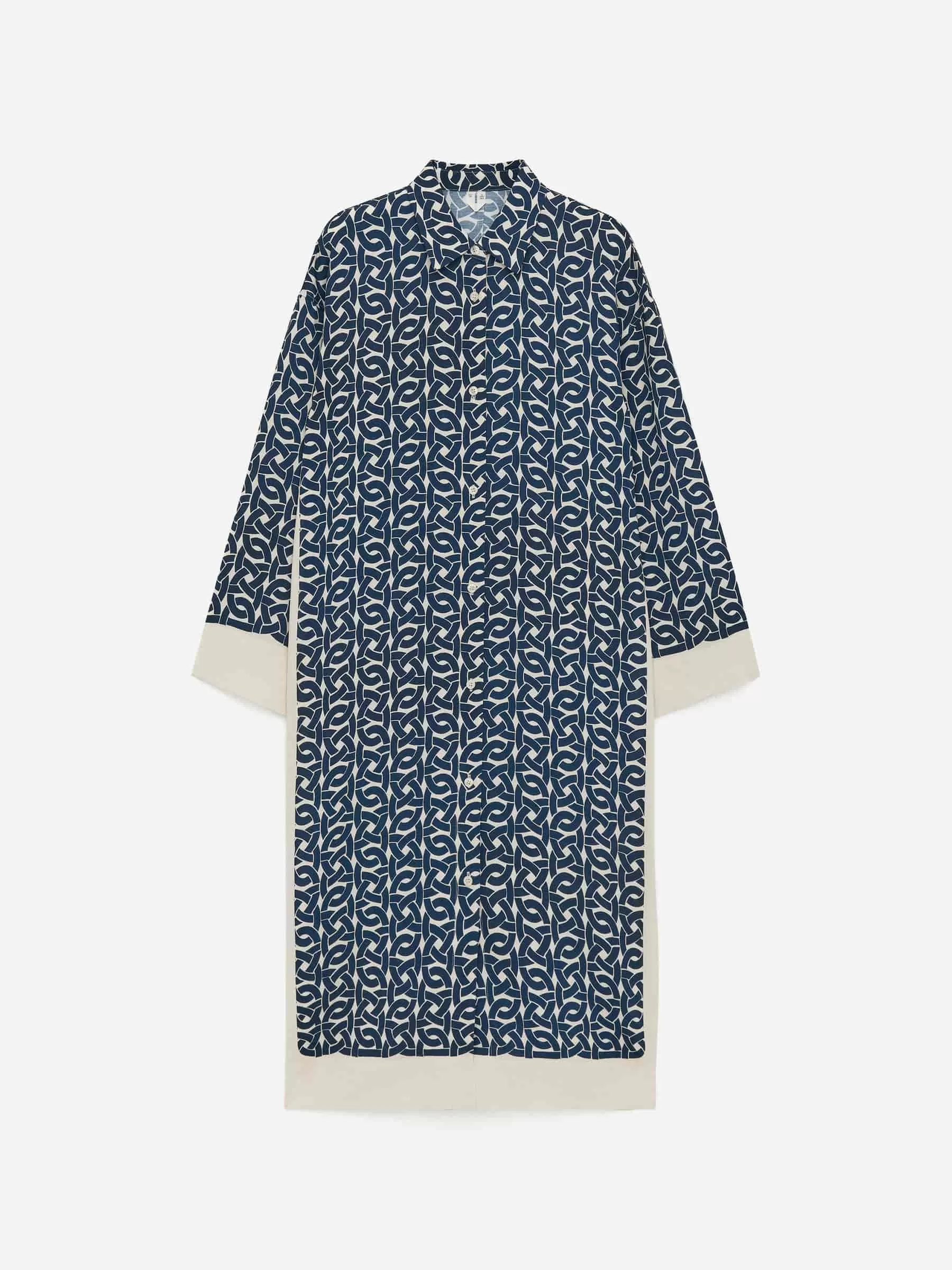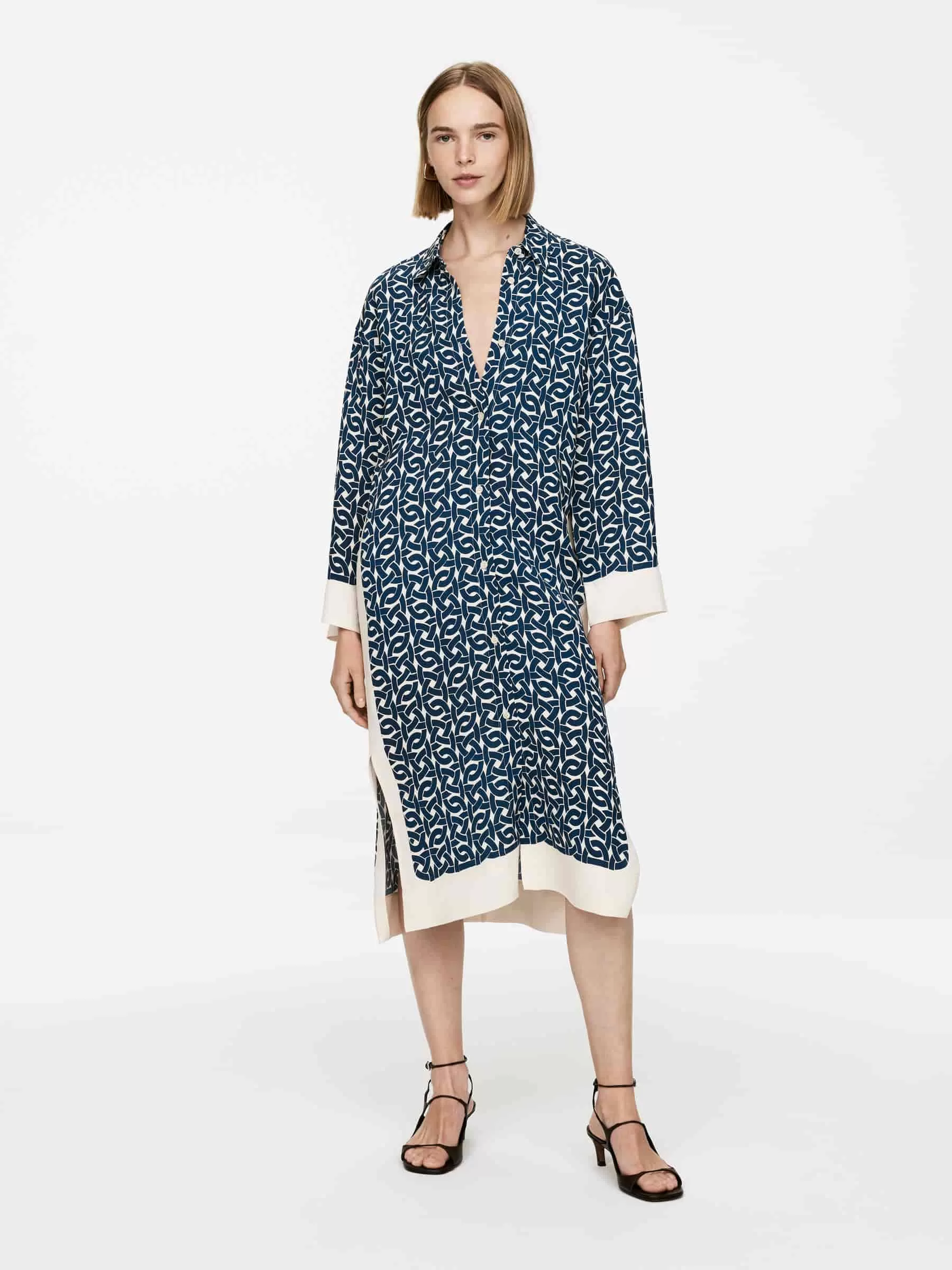 ARKE Damen Bedrucktes Kleid Dunkelblau/Gebrochenes Weiß