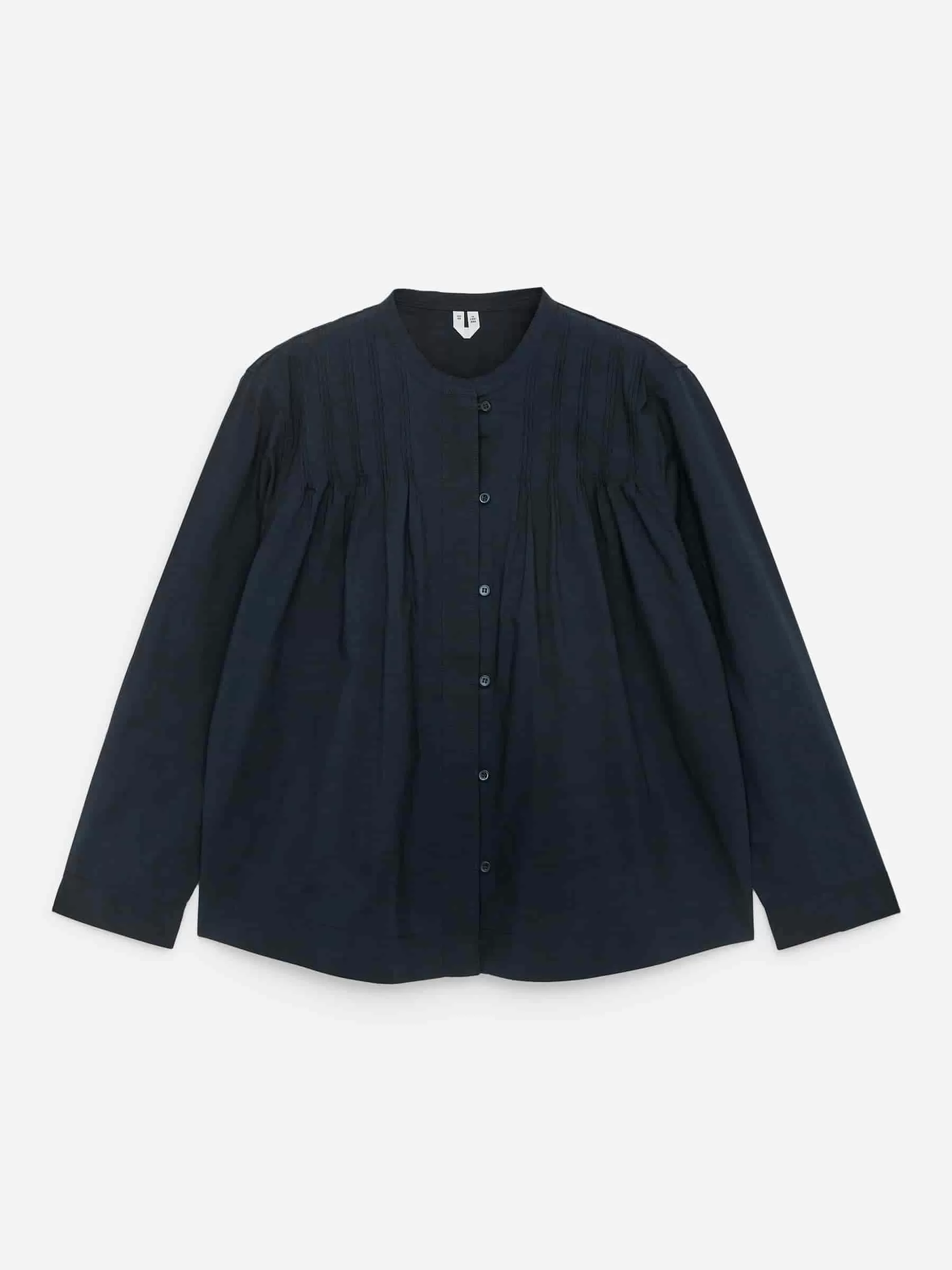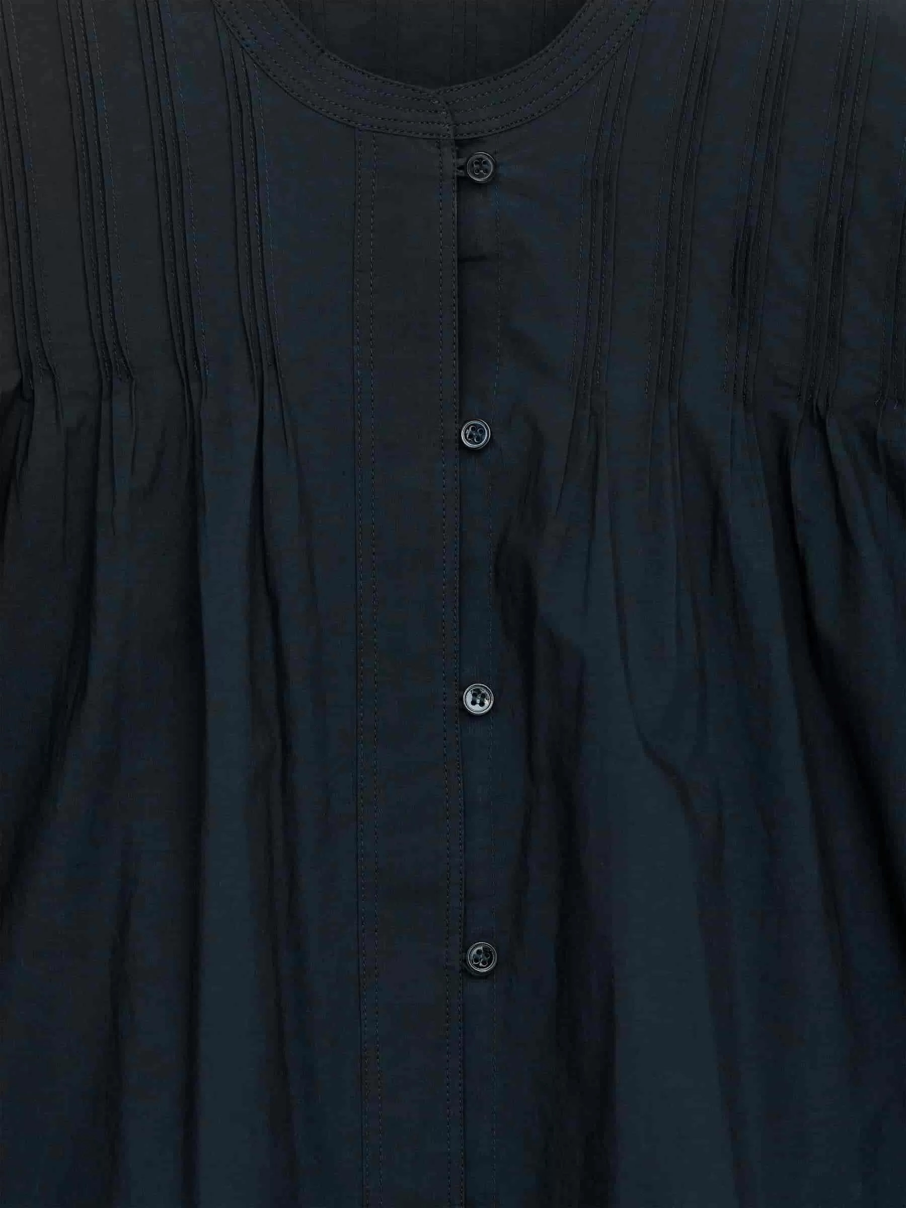 Bluse aus gewebtem Baumwollstoff mit Biesendetails auf der Brust. Rundhalsausschnitt und geknöpfte Vorderseite.