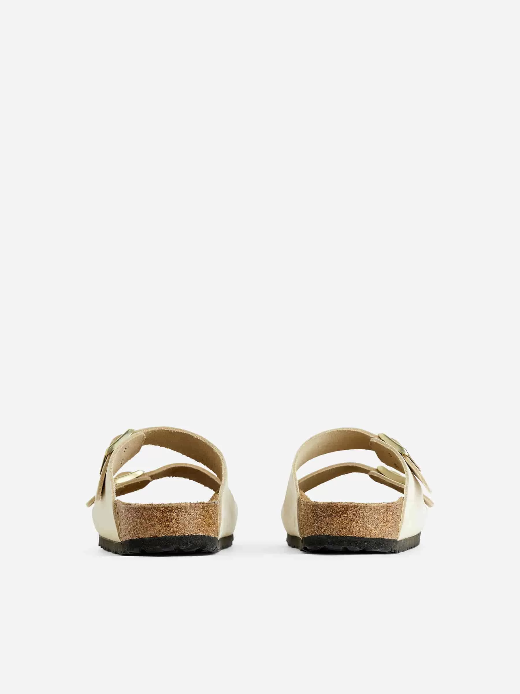 Der BIRKENSTOCK Arizona verfügt über ein anatomisch geformtes Fußbett aus Kork-Latex und ein Obermaterial aus hochwertigem Nubukleder mit samtiger Haptik. Die Doppelgurte sind mit Metallschnallen verstellbar. Außensohle aus EVA.