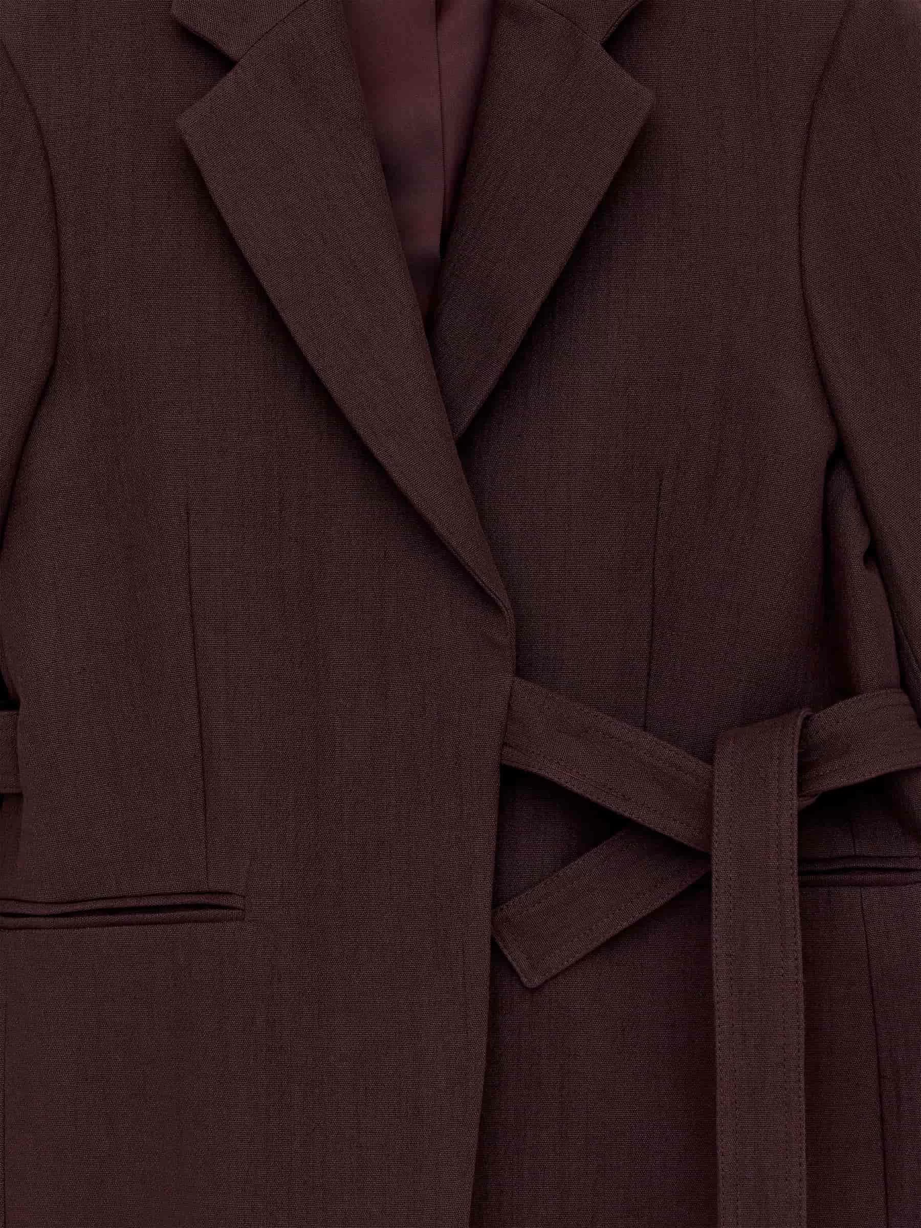 Blazer aus einer Mischung aus Baumwolle und Leinen. Ein übergroßer, vollständig gefütterter Stil mit fallendem Revers, doppelten Leistentaschen und einem Bindeband zum Verschließen. Schlitze in der hinteren Mitte und an den Ärmelsäumen.