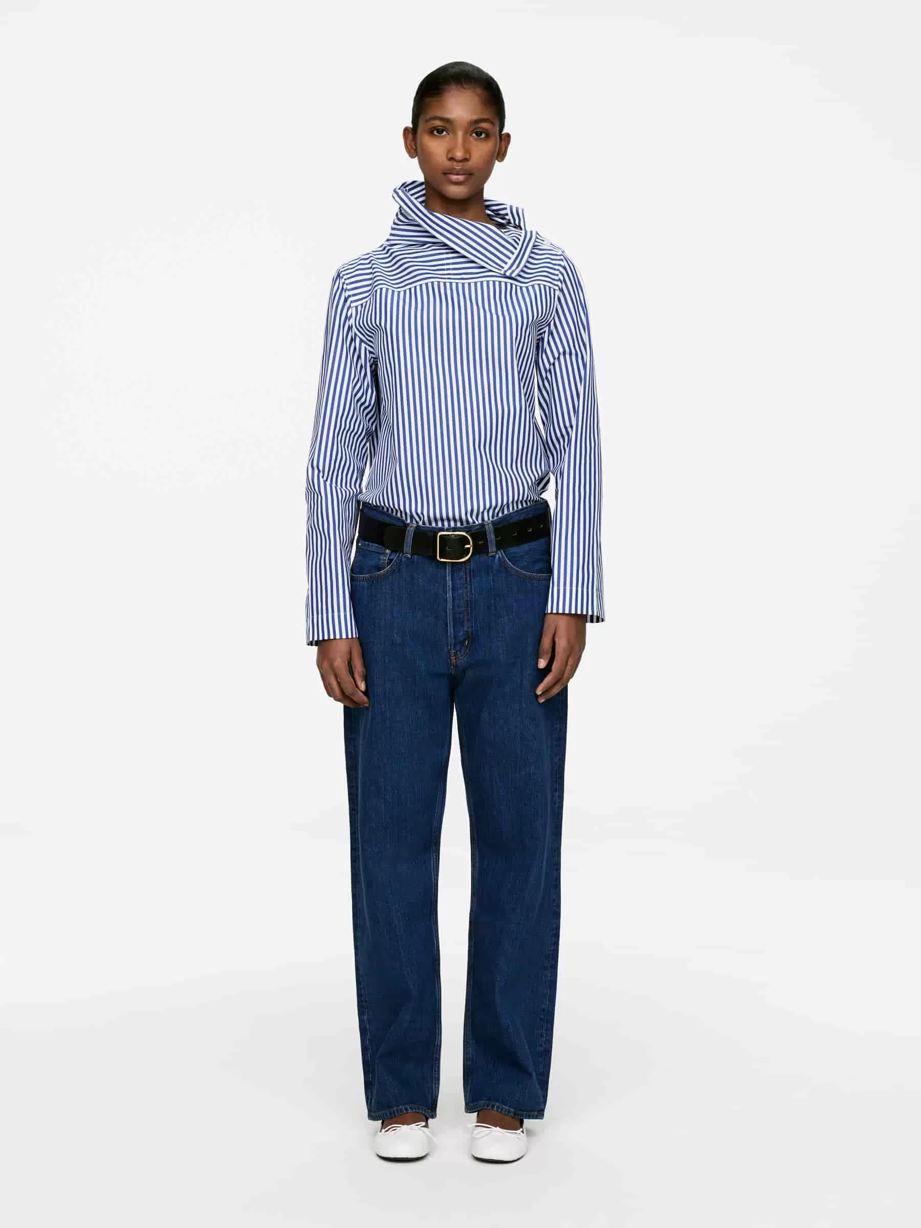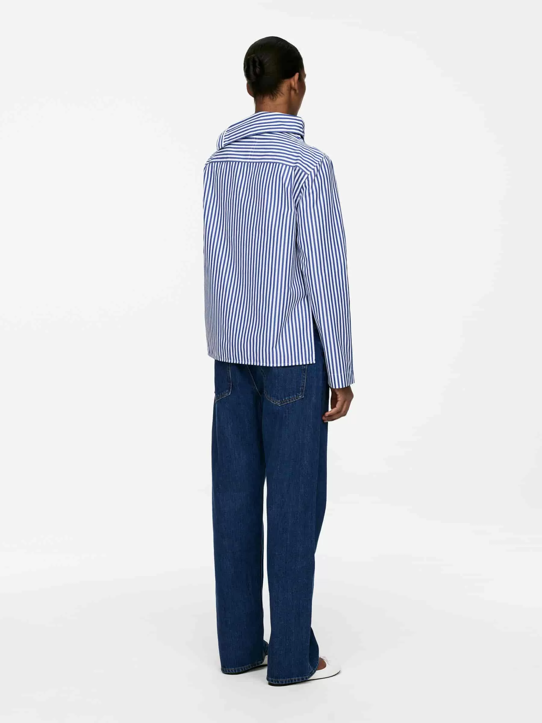 ARKE Damen Bluse mit Umschlagkragen Weiß/Blau
