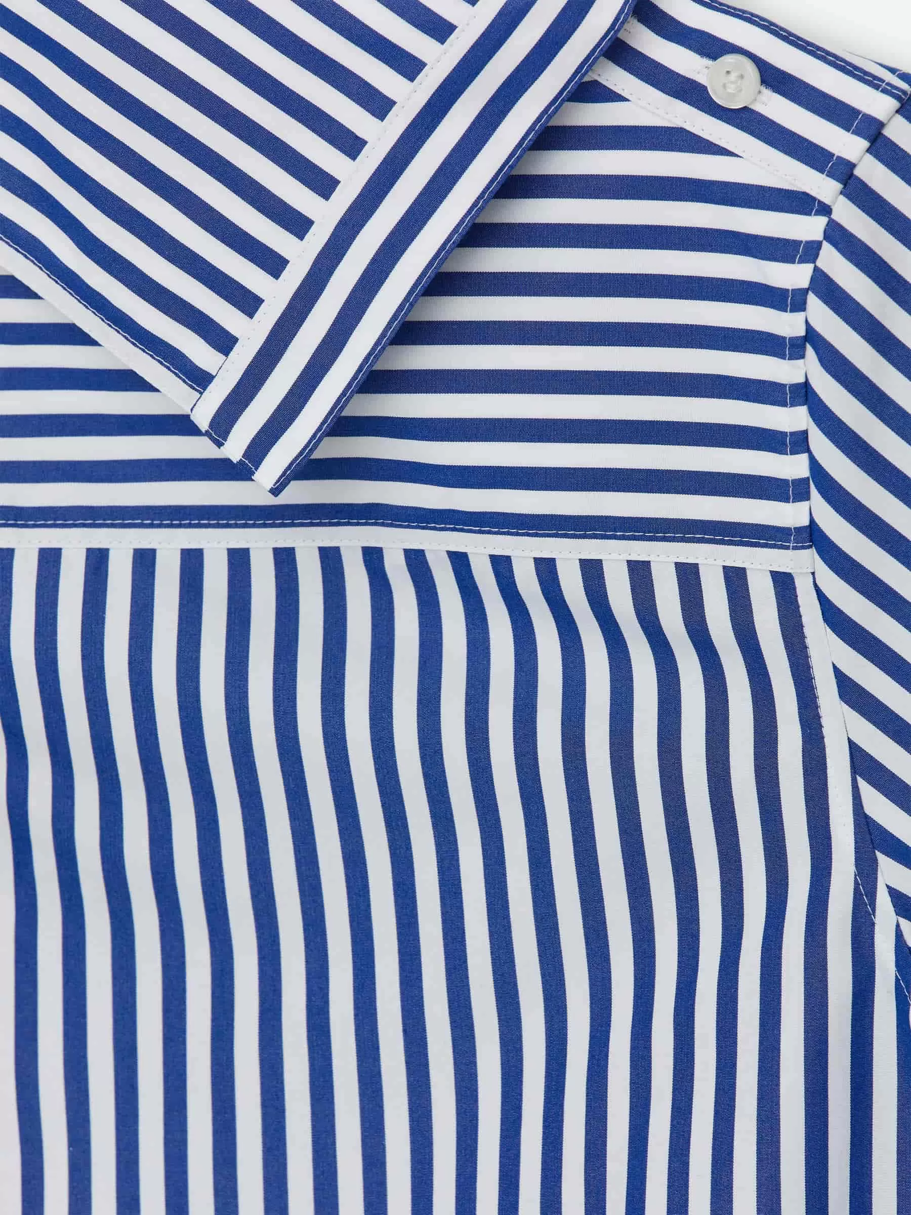 Langärmlige Baumwollbluse mit umgeschlagenem Kragen und Knopfverschluss. Normale Passform.