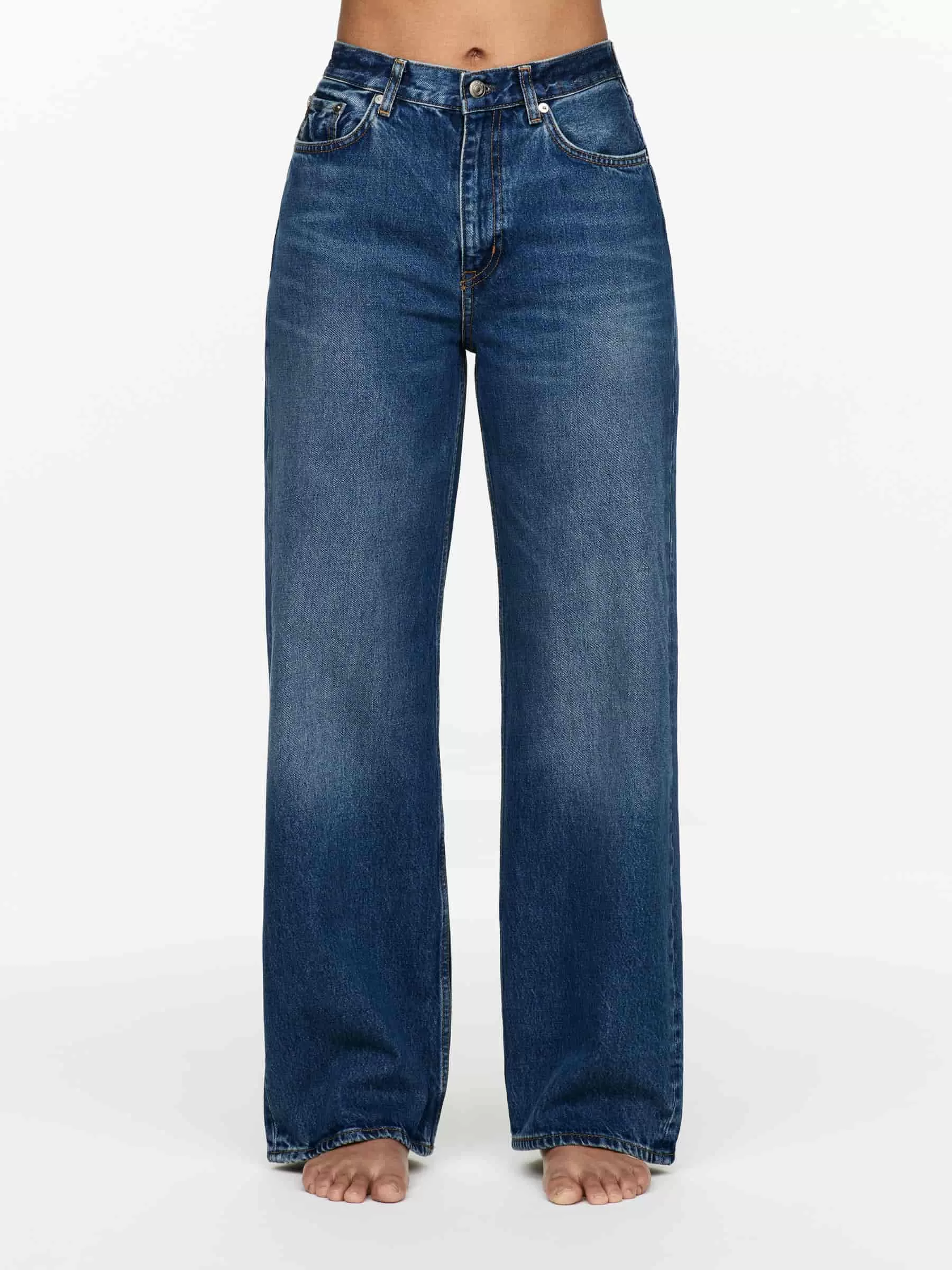 CORAL ist aus nicht dehnbarem Denim gefertigt und verfügt über eine hohe Taille, eine lockere Passform und weite Beine.