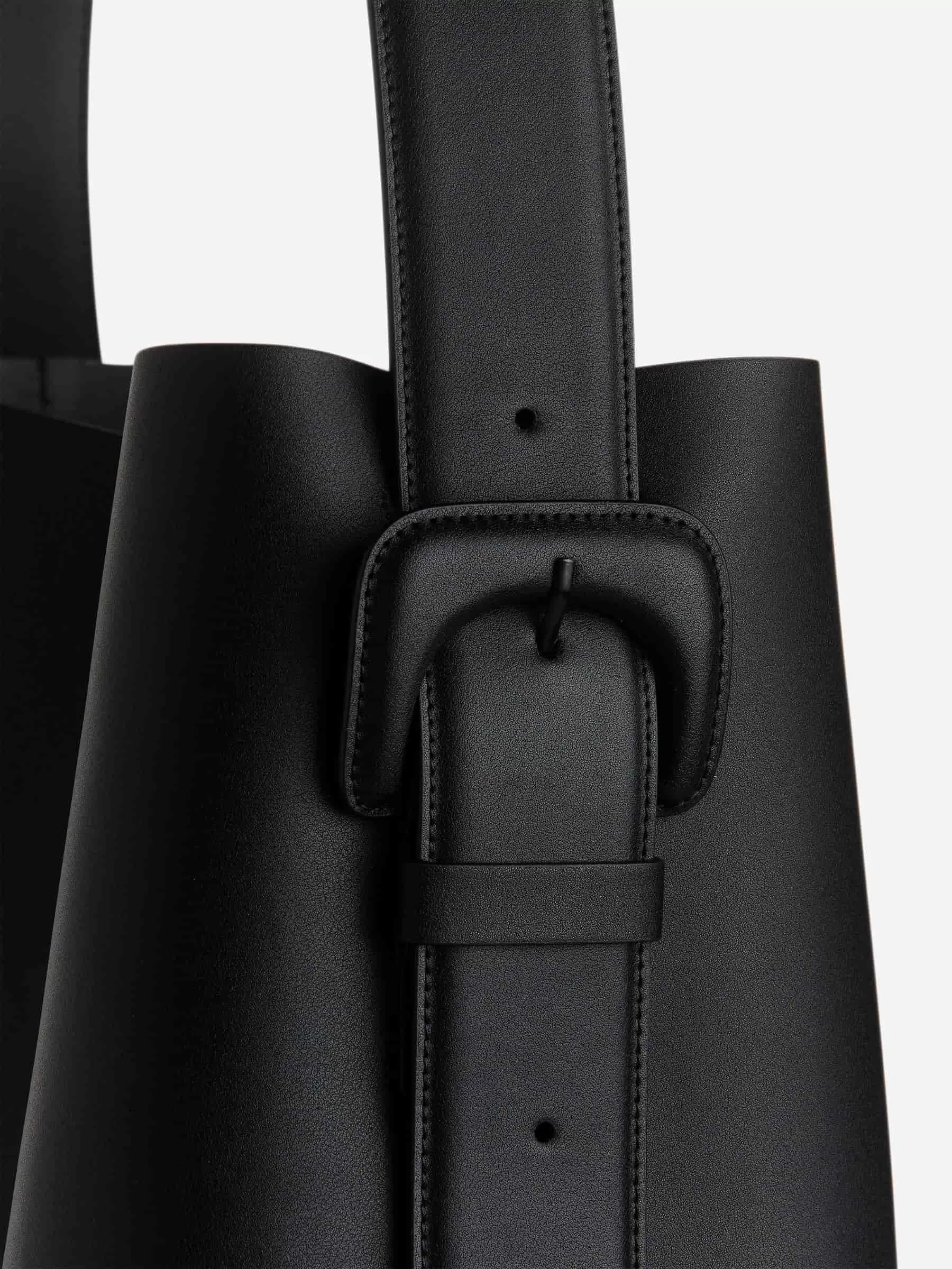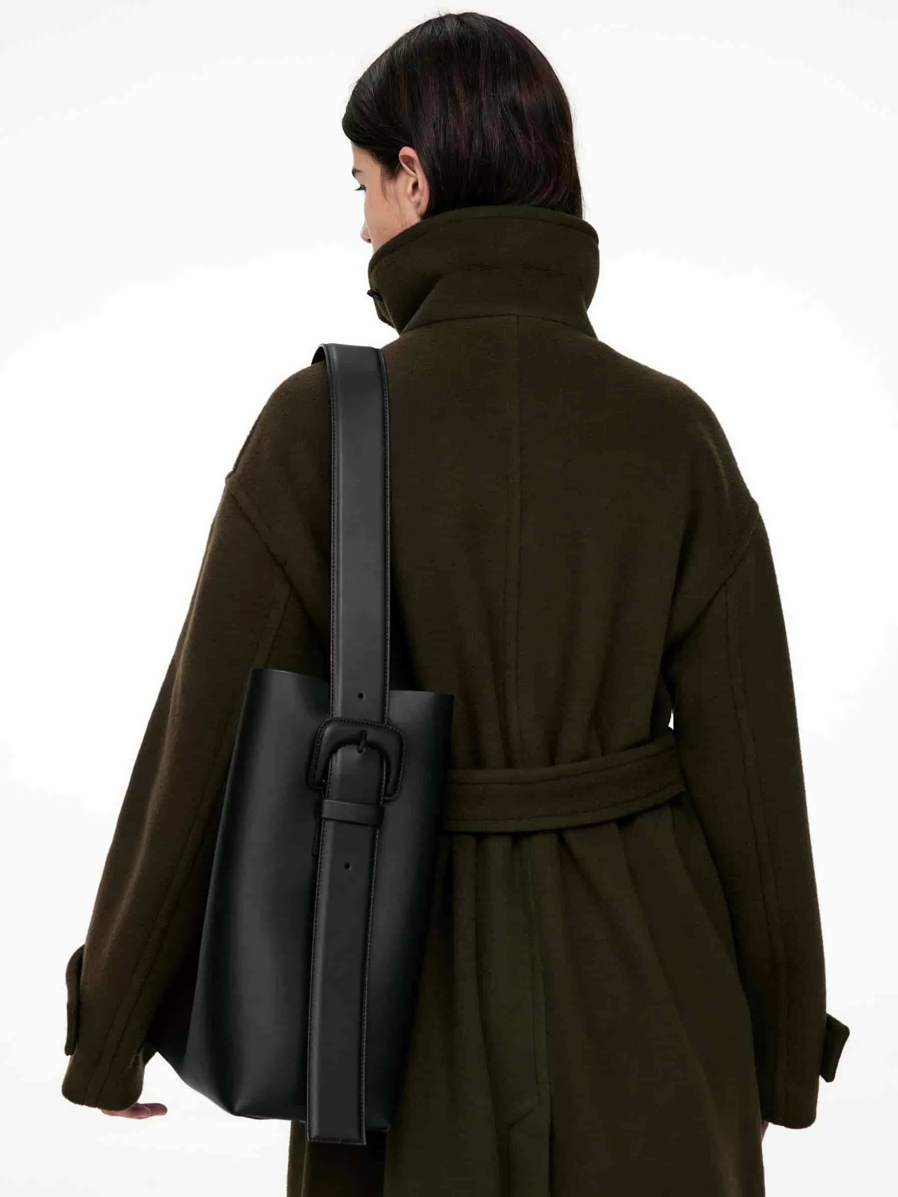 Tragetasche mit halbfester Haptik und geräumig genug für einen Laptop. Ausgestattet mit einem verstellbaren, fünf Zentimeter breiten Schultergurt und Magnetverschluss. Innenfach mit Reißverschluss. Abmessungen 35 cm x 32 cm x 13 cm.