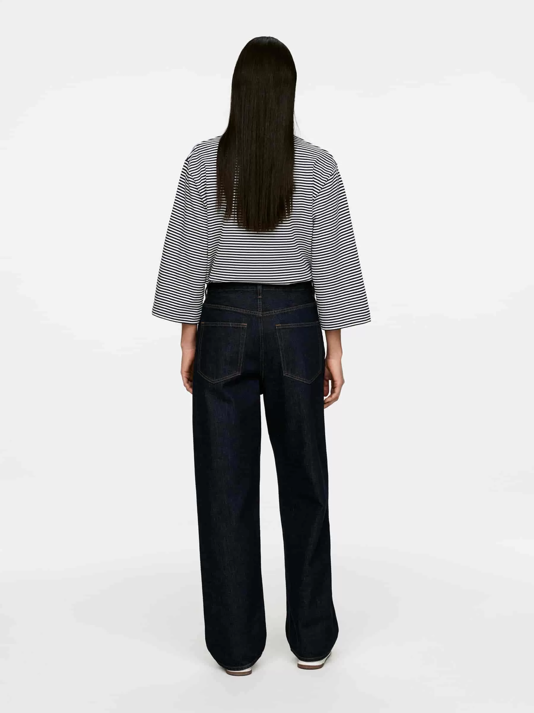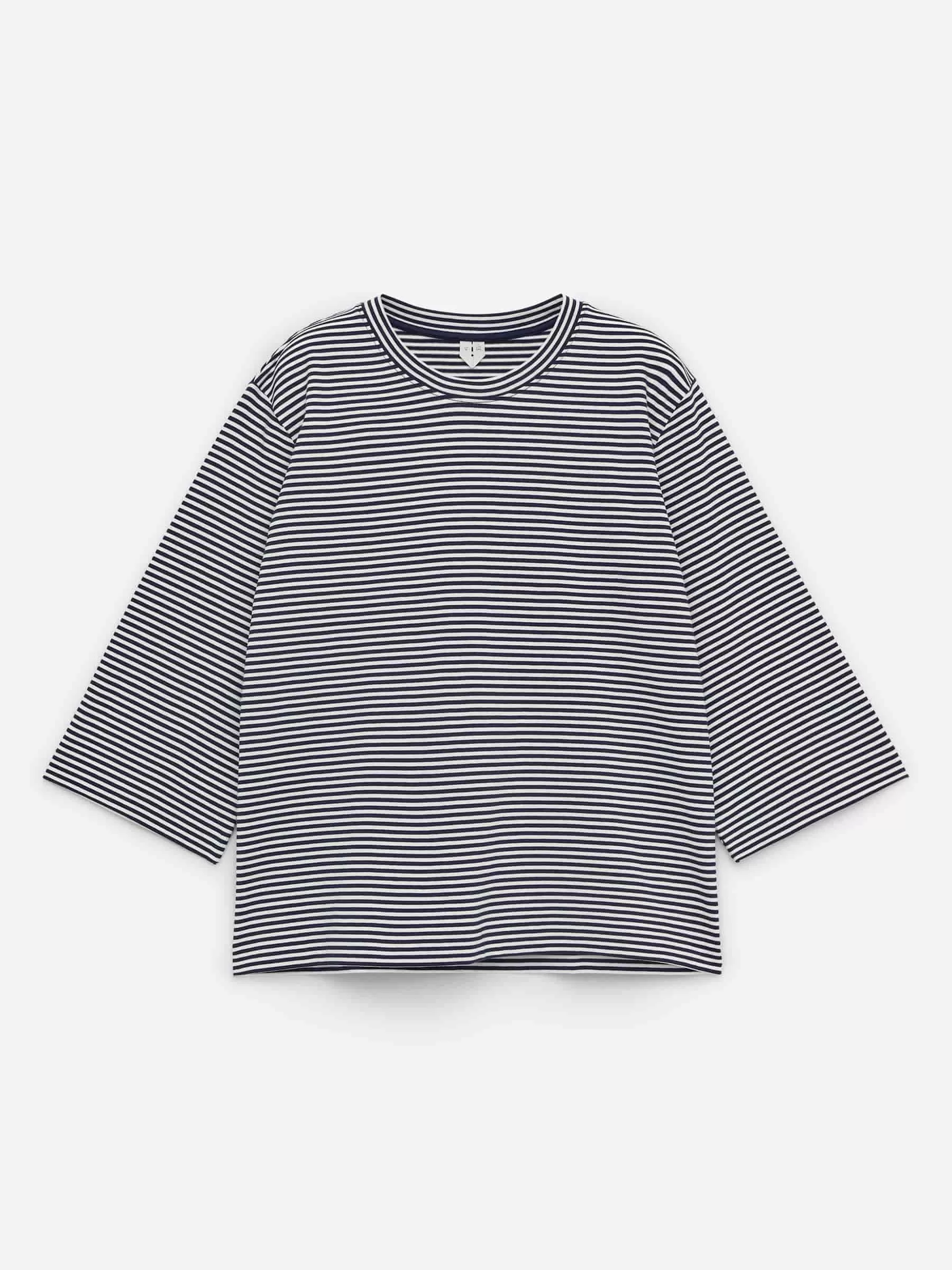 ARKE Damen EIRA Schwergewichts-T-Shirt Dunkelblau/Weiß