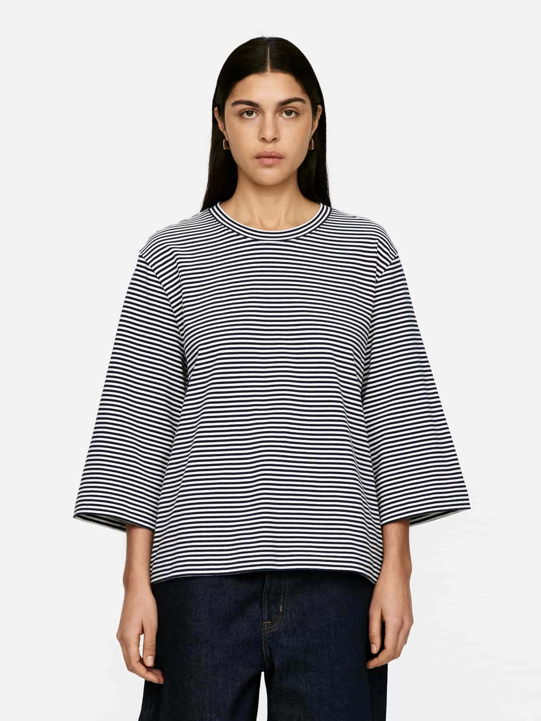 T-Shirt mit Rundhalsausschnitt aus frischem, schwerem Baumwolljersey. Mit 3/4-Ärmeln.