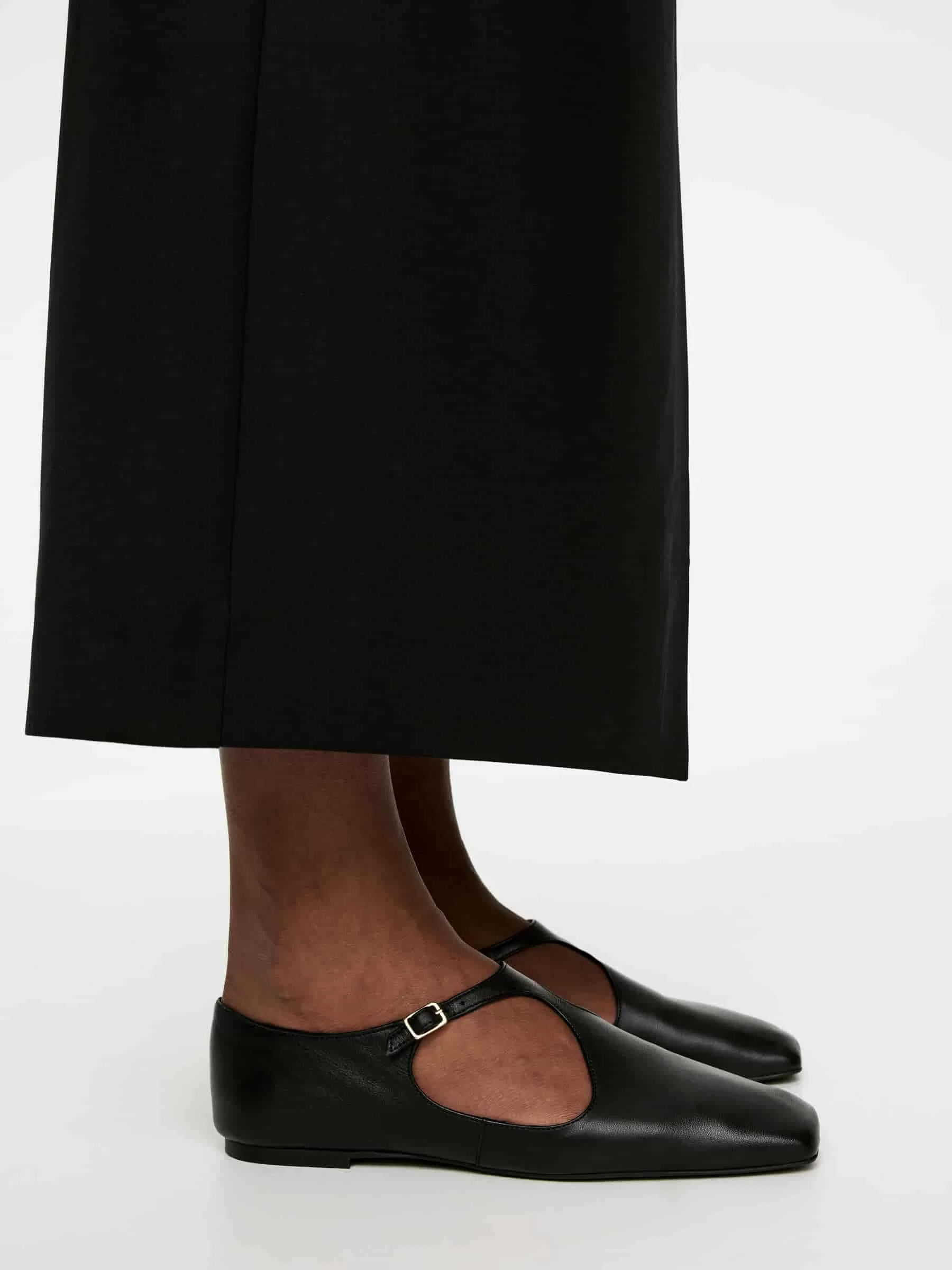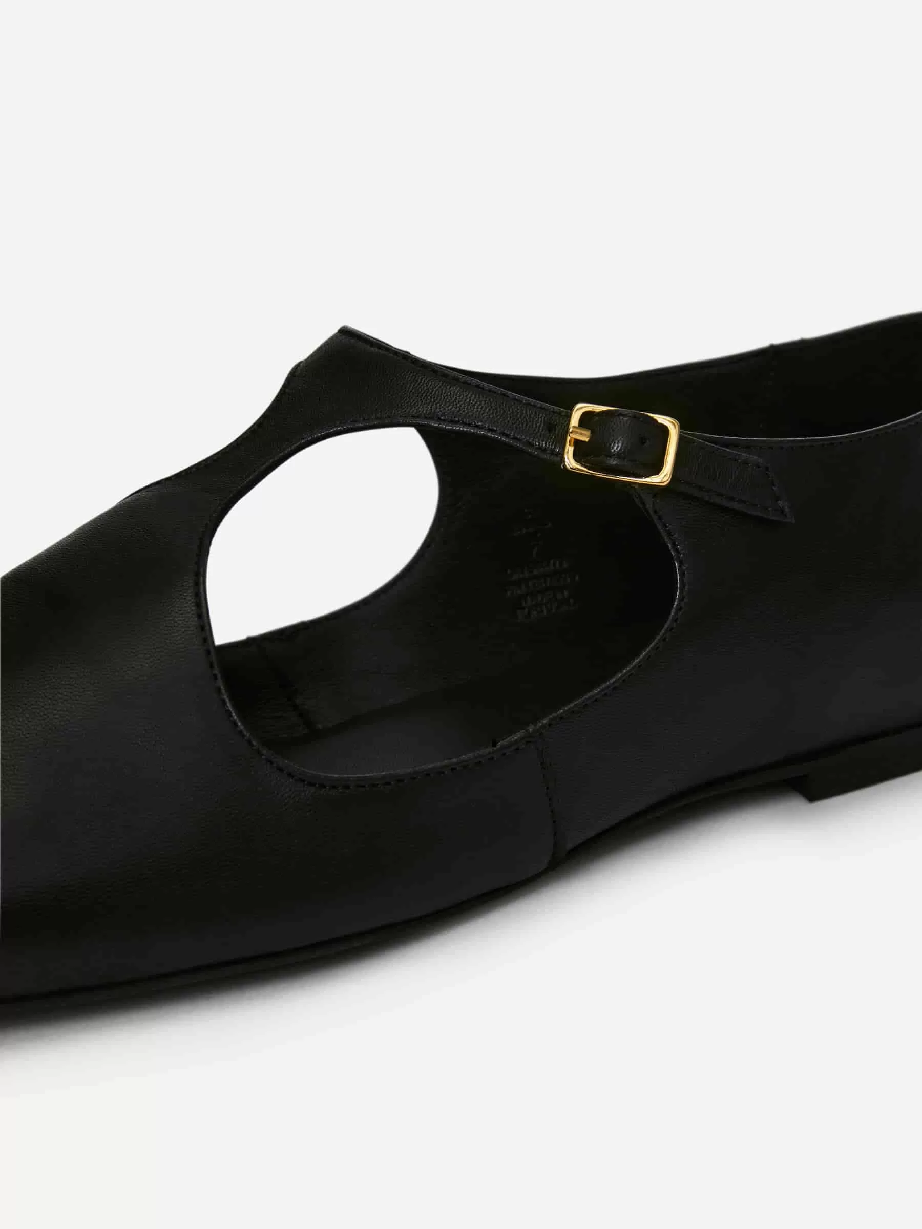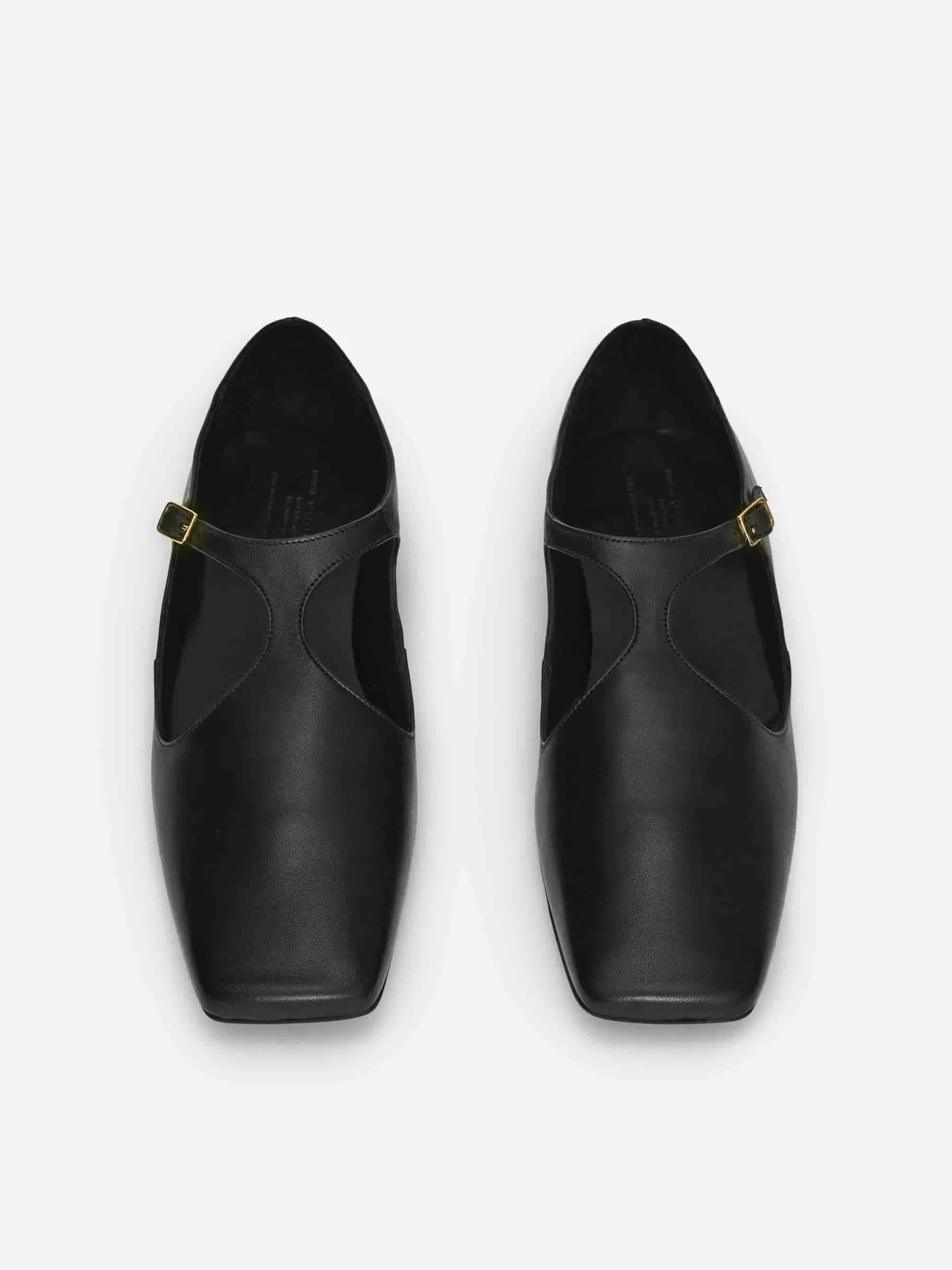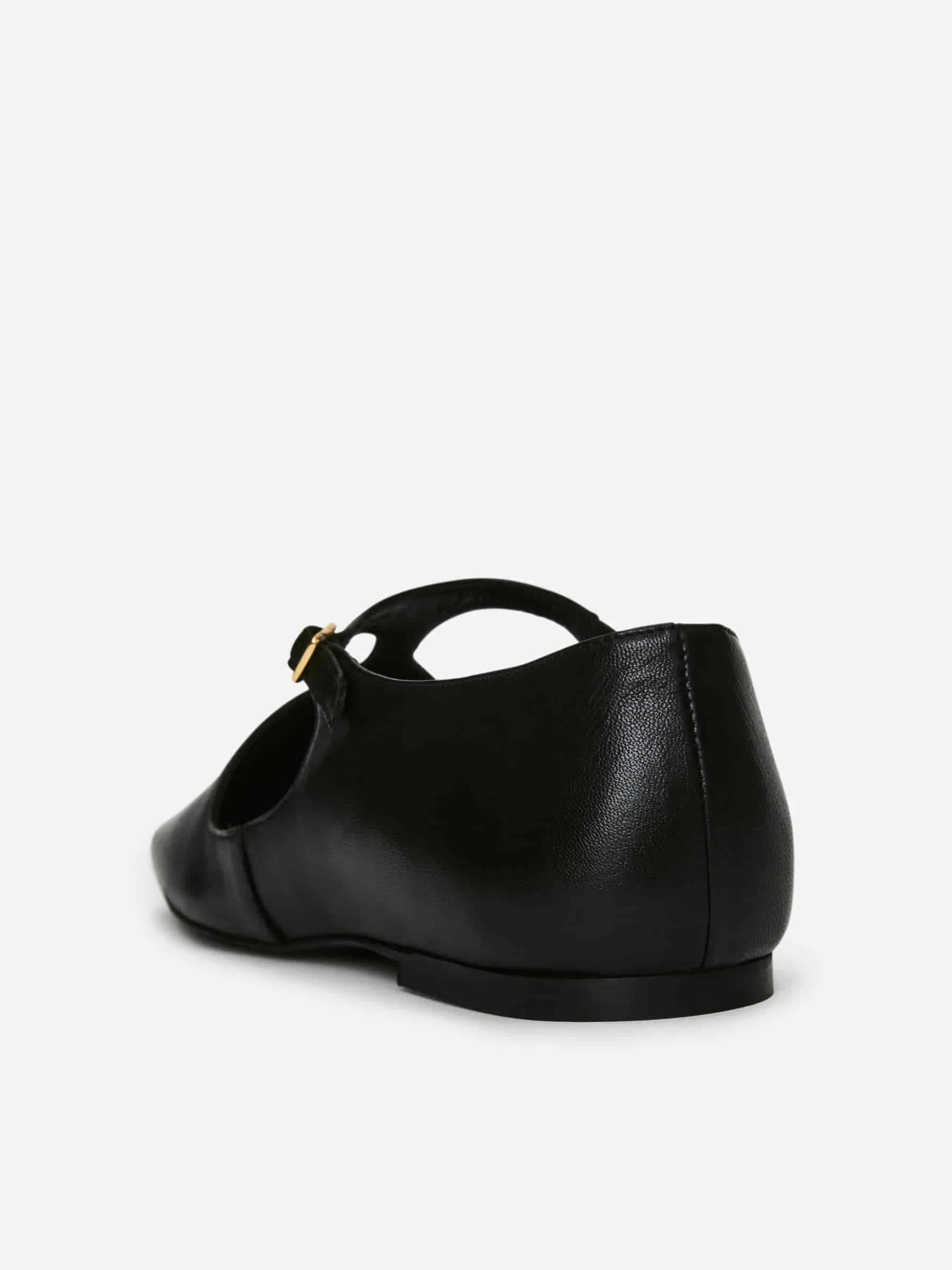 Leder-Flats mit goldfarbener Schnalle und eckiger Spitze.