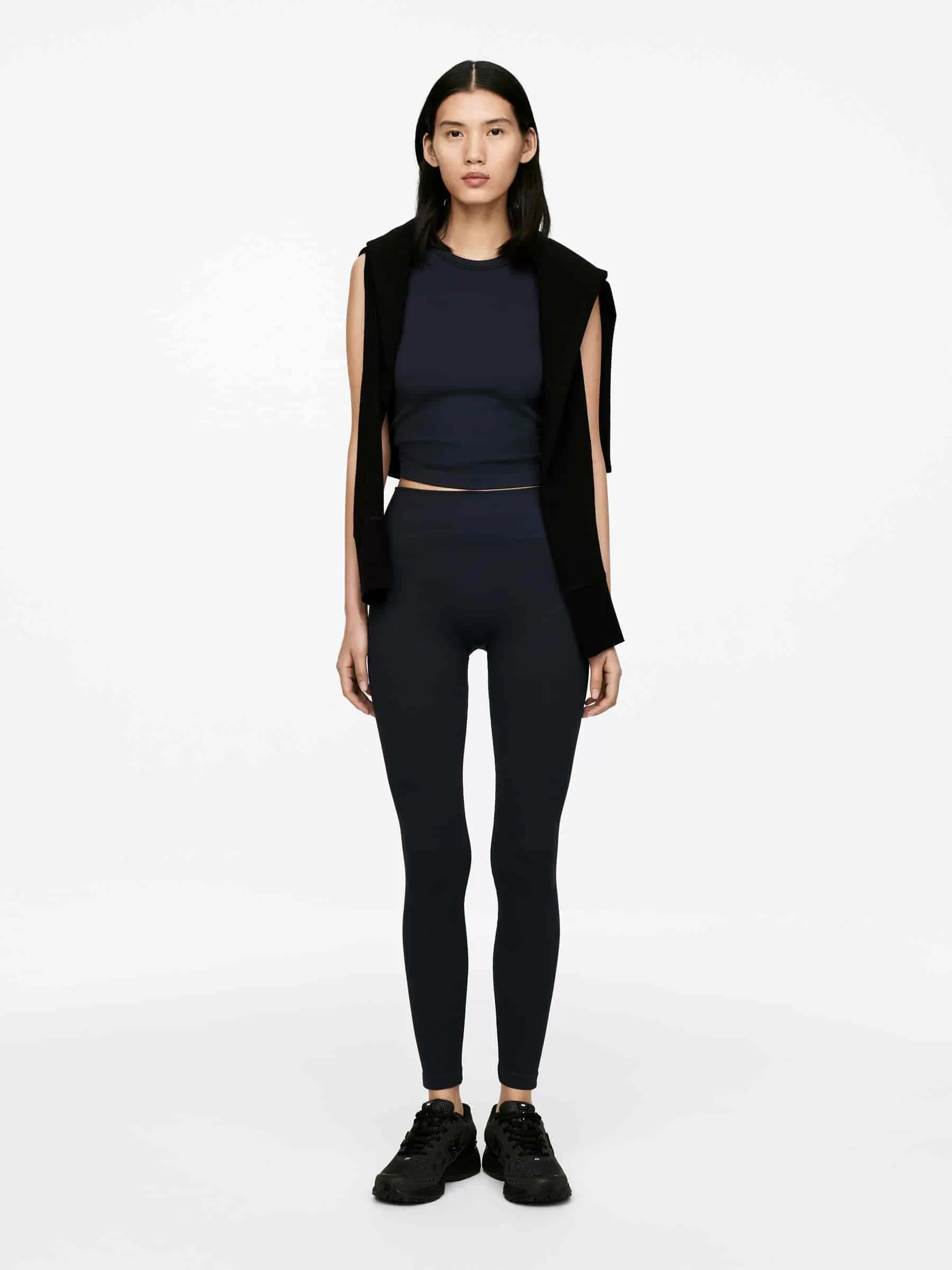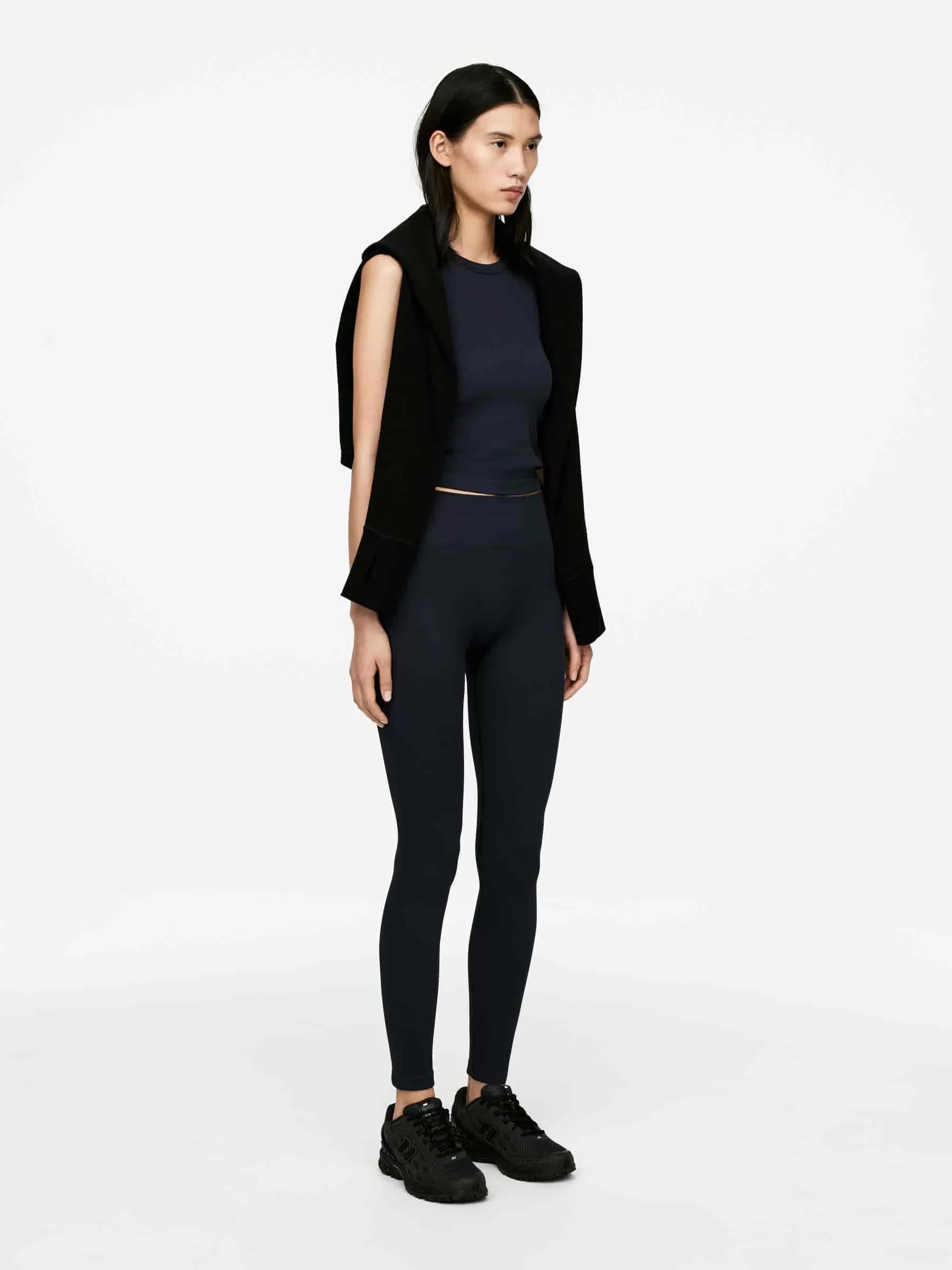 Nahtlose, rippgestrickte Strumpfhose aus dehnbarem Polyamid mit gewaschener Oberfläche. Ein Modell mit mittlerer Taille, voller Länge und elastischem Bund. Leichte Unterstützung. Schnell trocknend.