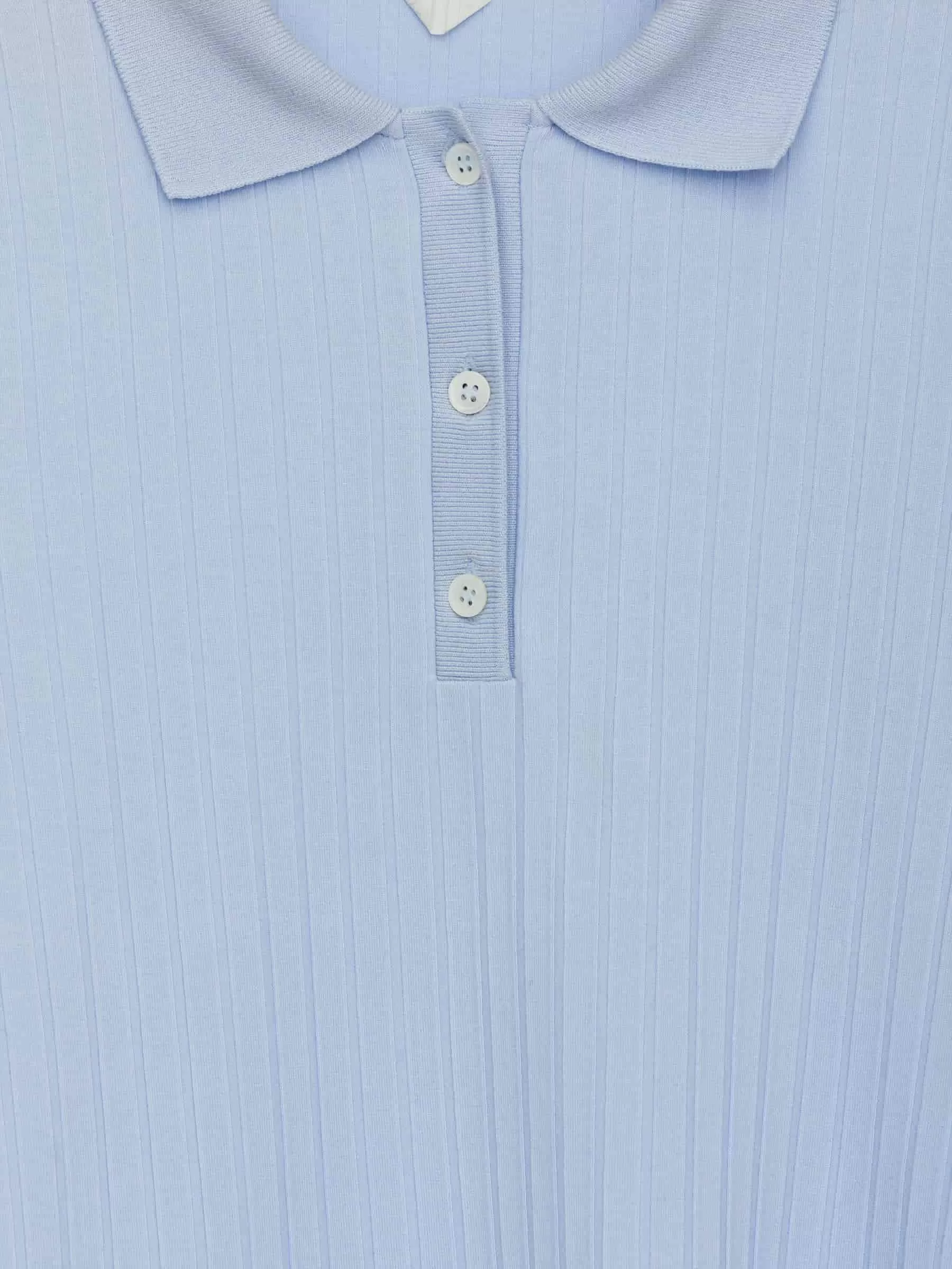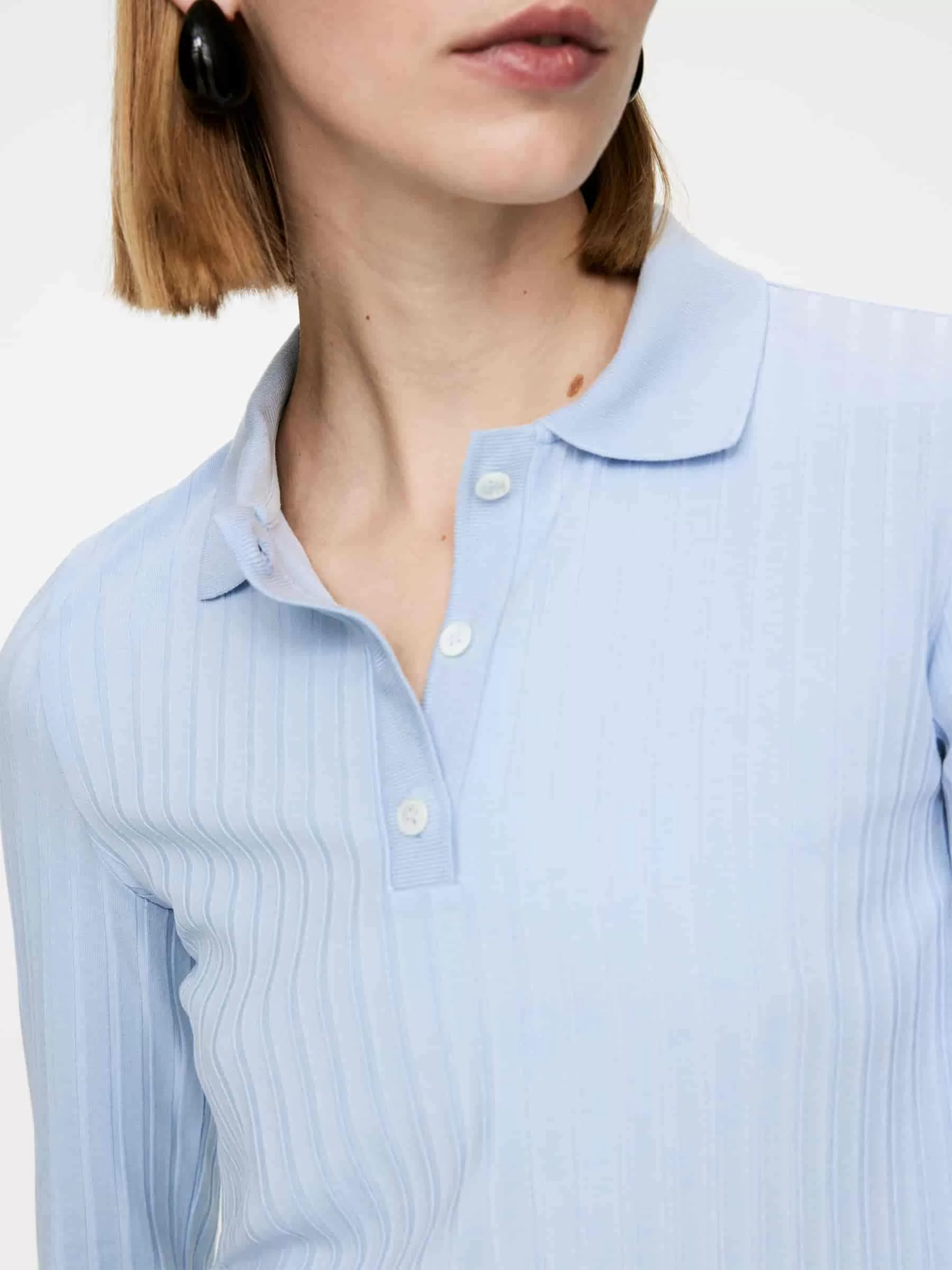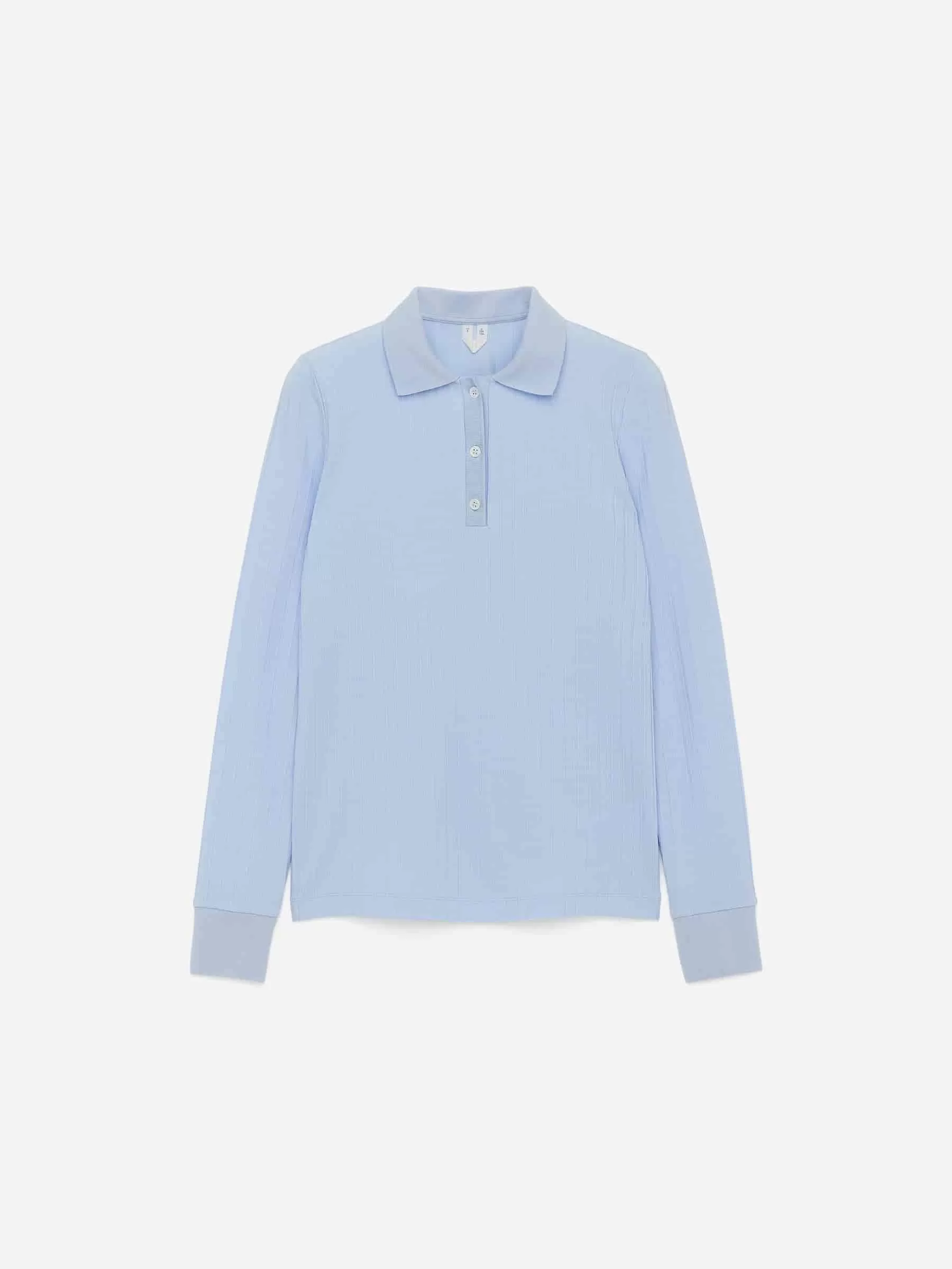 Langärmliges Poloshirt in gerippter Qualität aus Lyocell und einem Hauch Elasthan für Dehnbarkeit. Manschetten, Kragen und geknöpfte Halbleiste aus Leinwandbindung. Normale Passform.