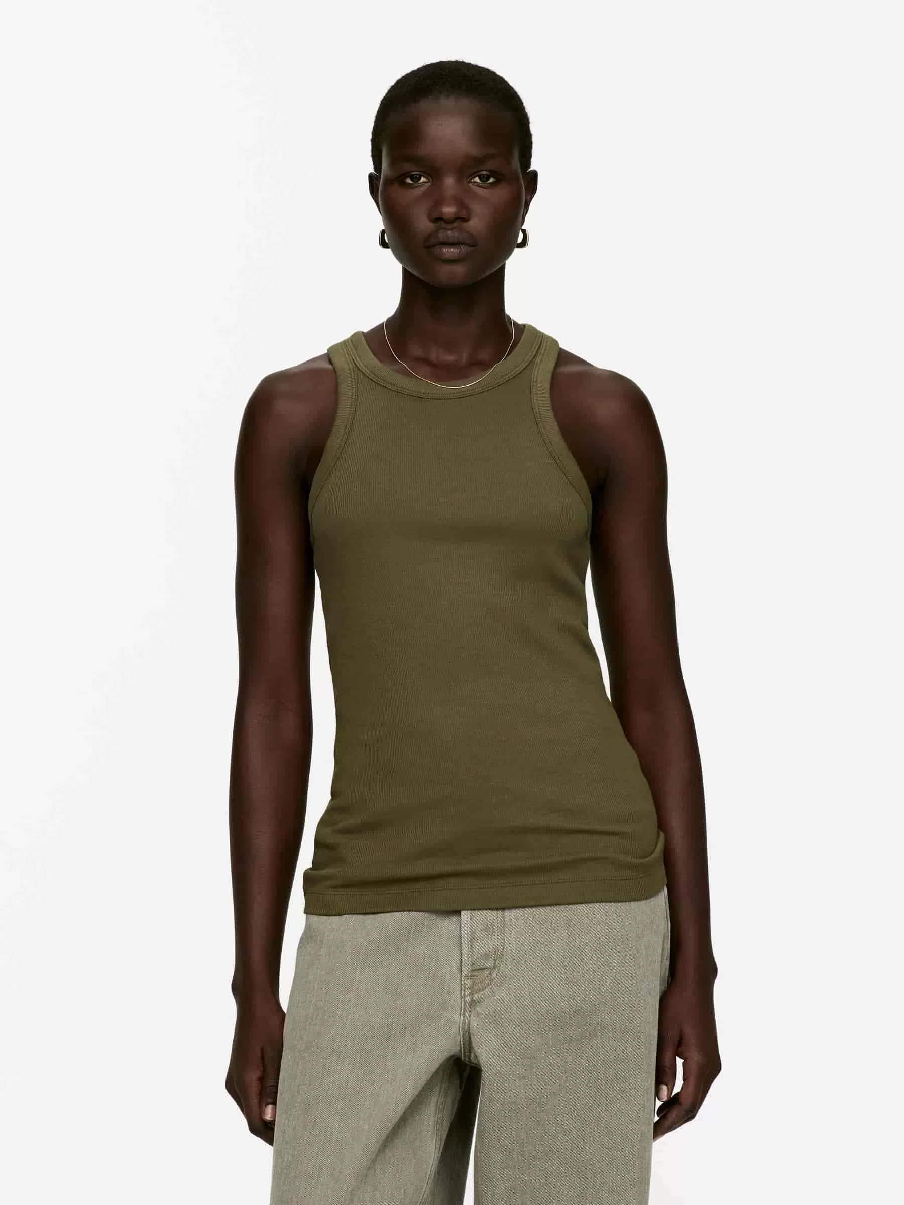 ARKE Damen Geripptes Racer-Tanktop Khakigrün