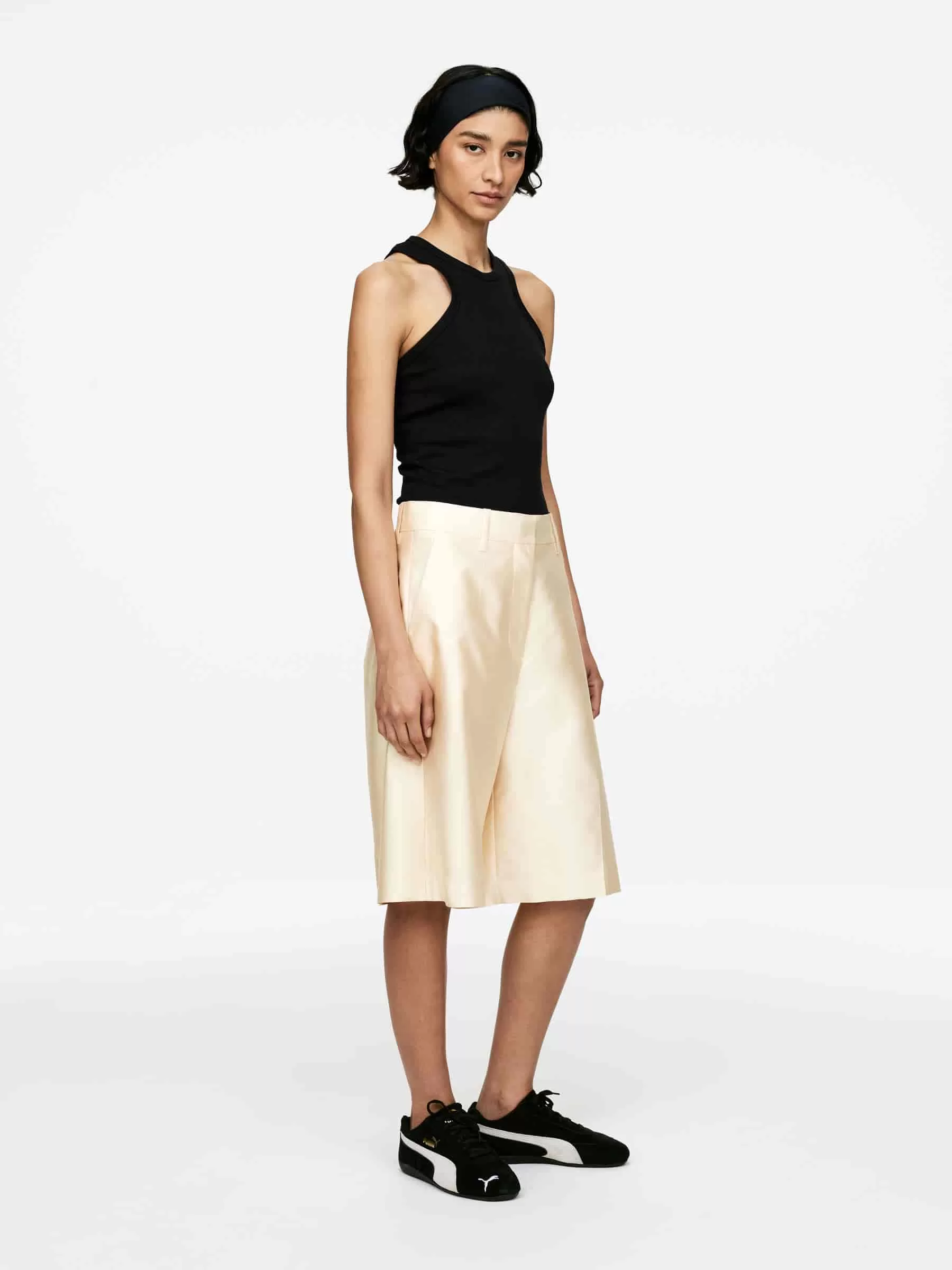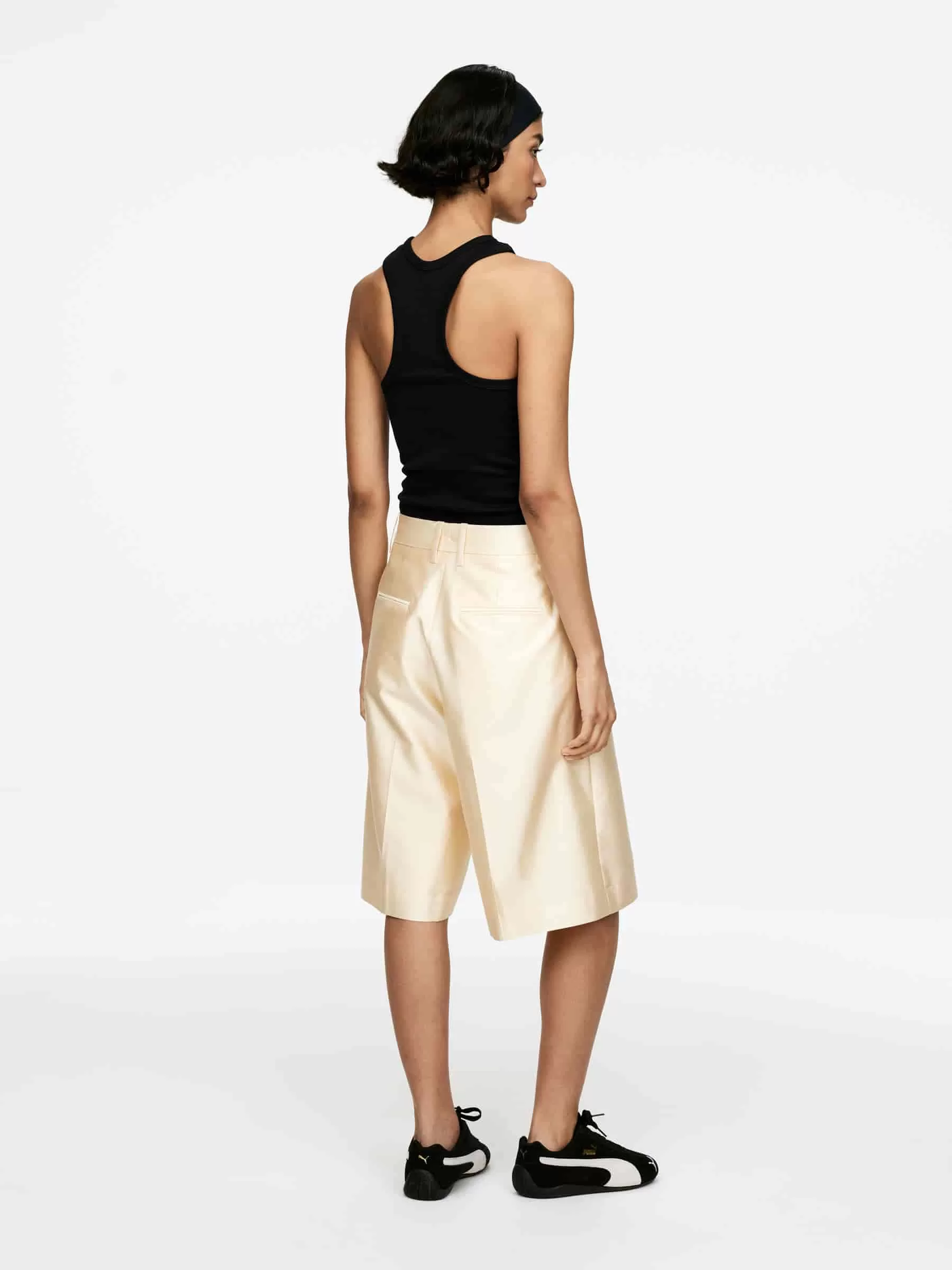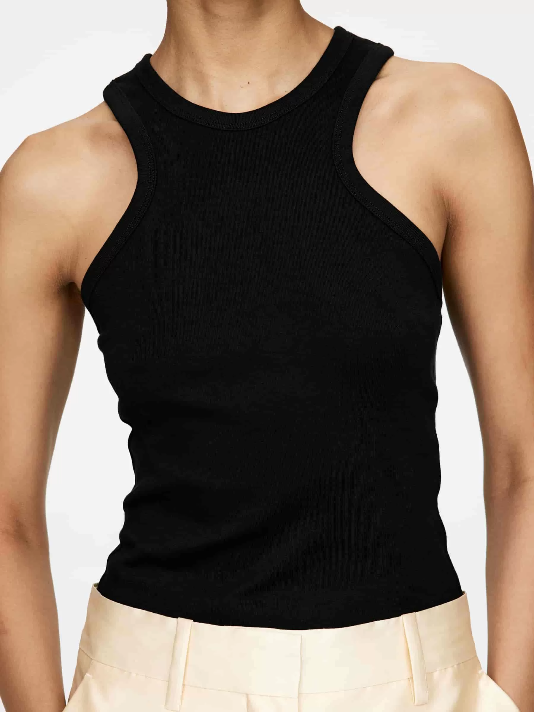 Rippstrick-Tanktop mit Cut-away-Stil vorne und Racer-Form hinten.