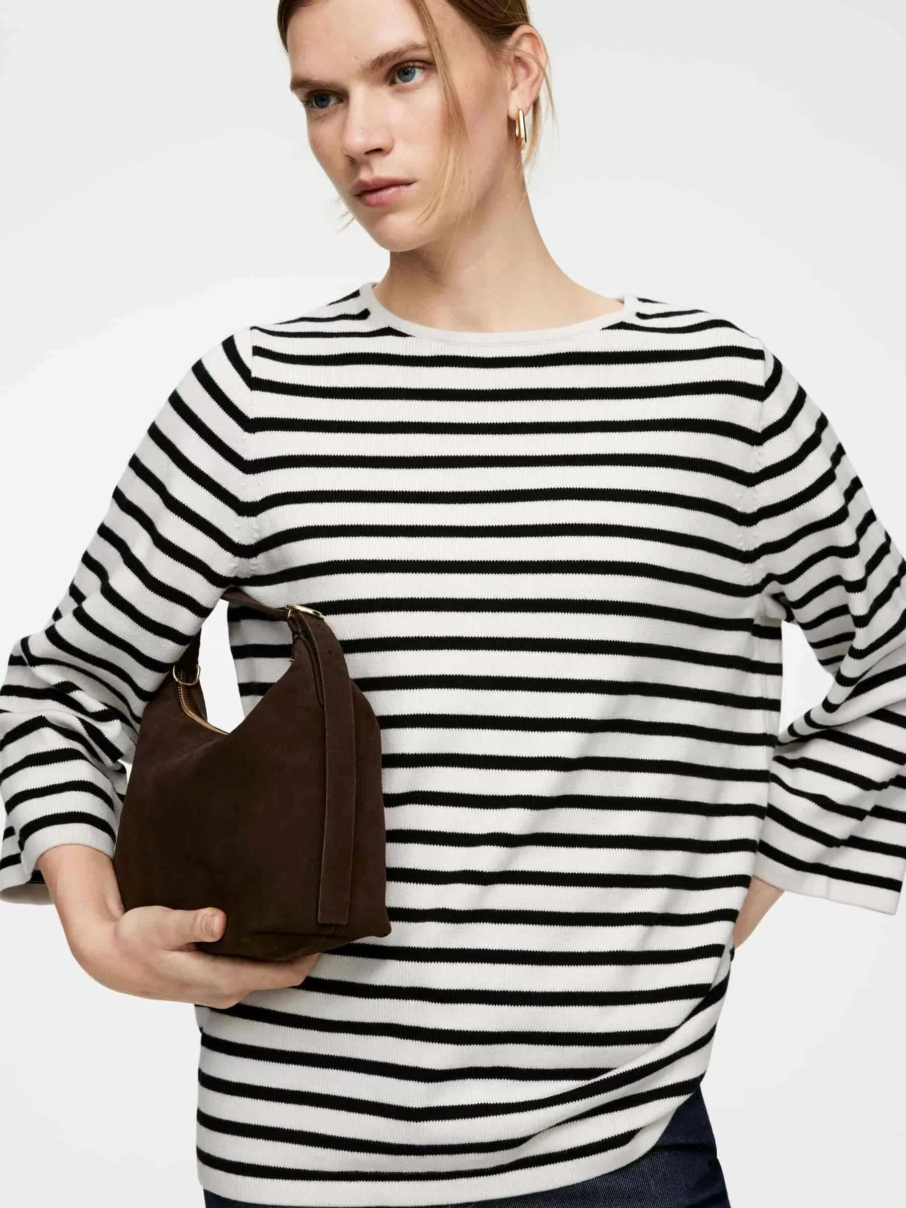 ARKE Damen Gestrickter Baumwollpullover Beige/Schwarz