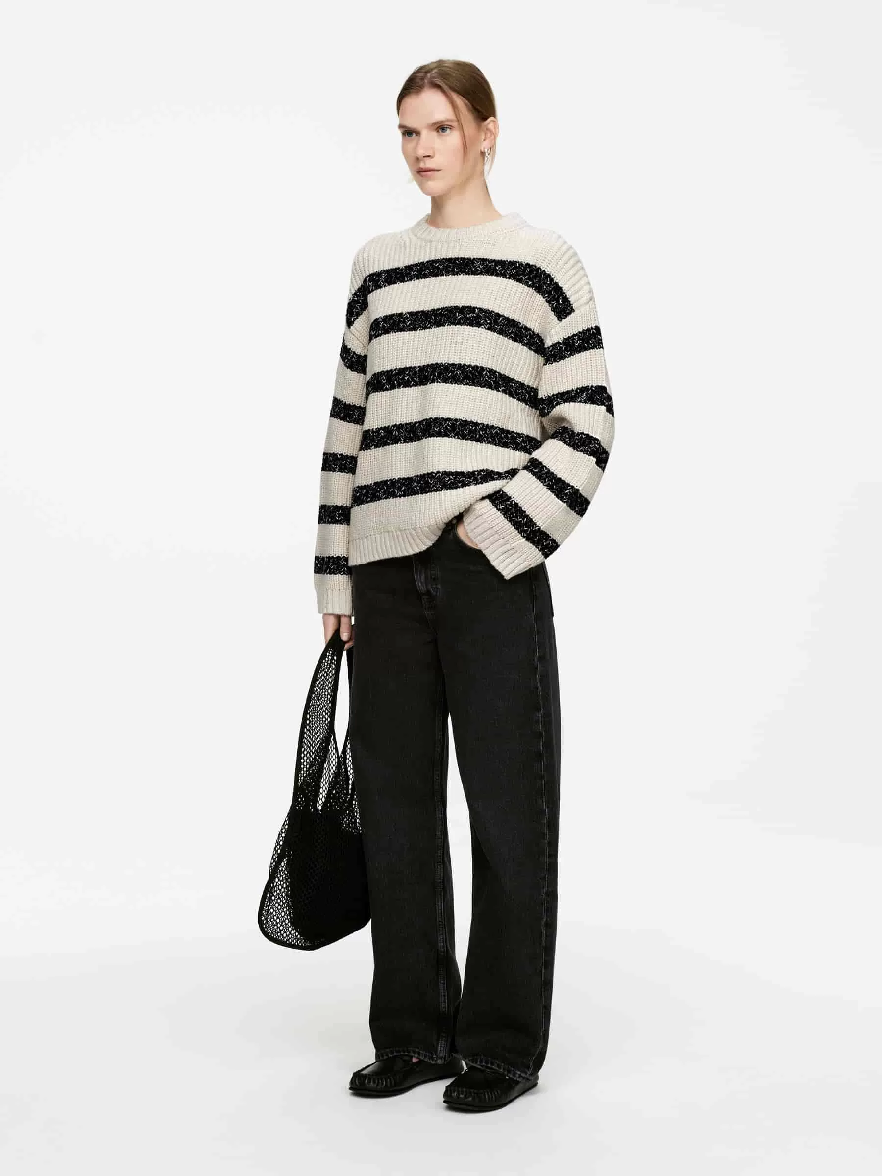 ARKE Damen Gestrickter Baumwollpullover Beige/Schwarz