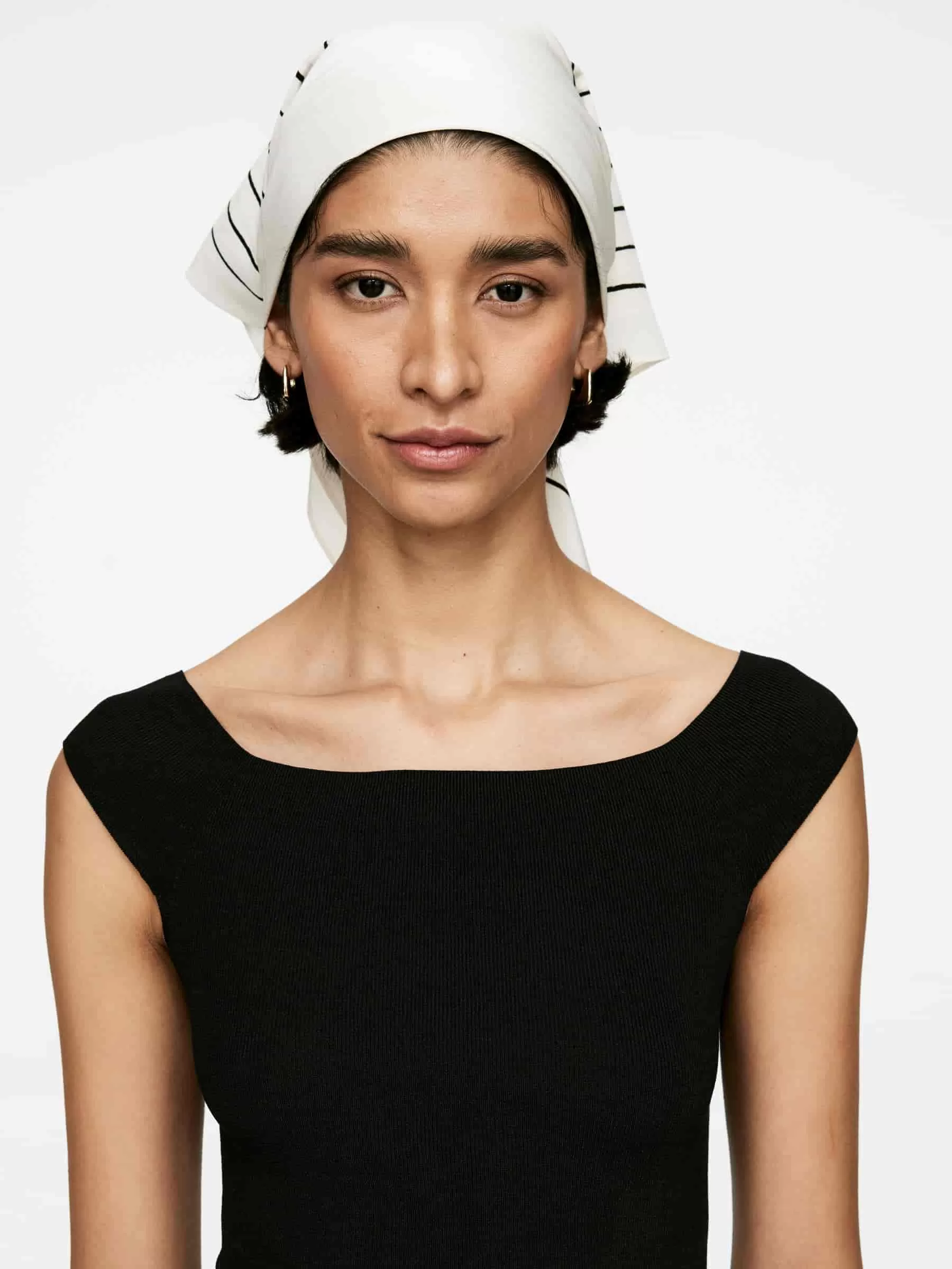 Schulterfreies Oberteil aus Viskosemischung gestrickt. Schlanke Passform.