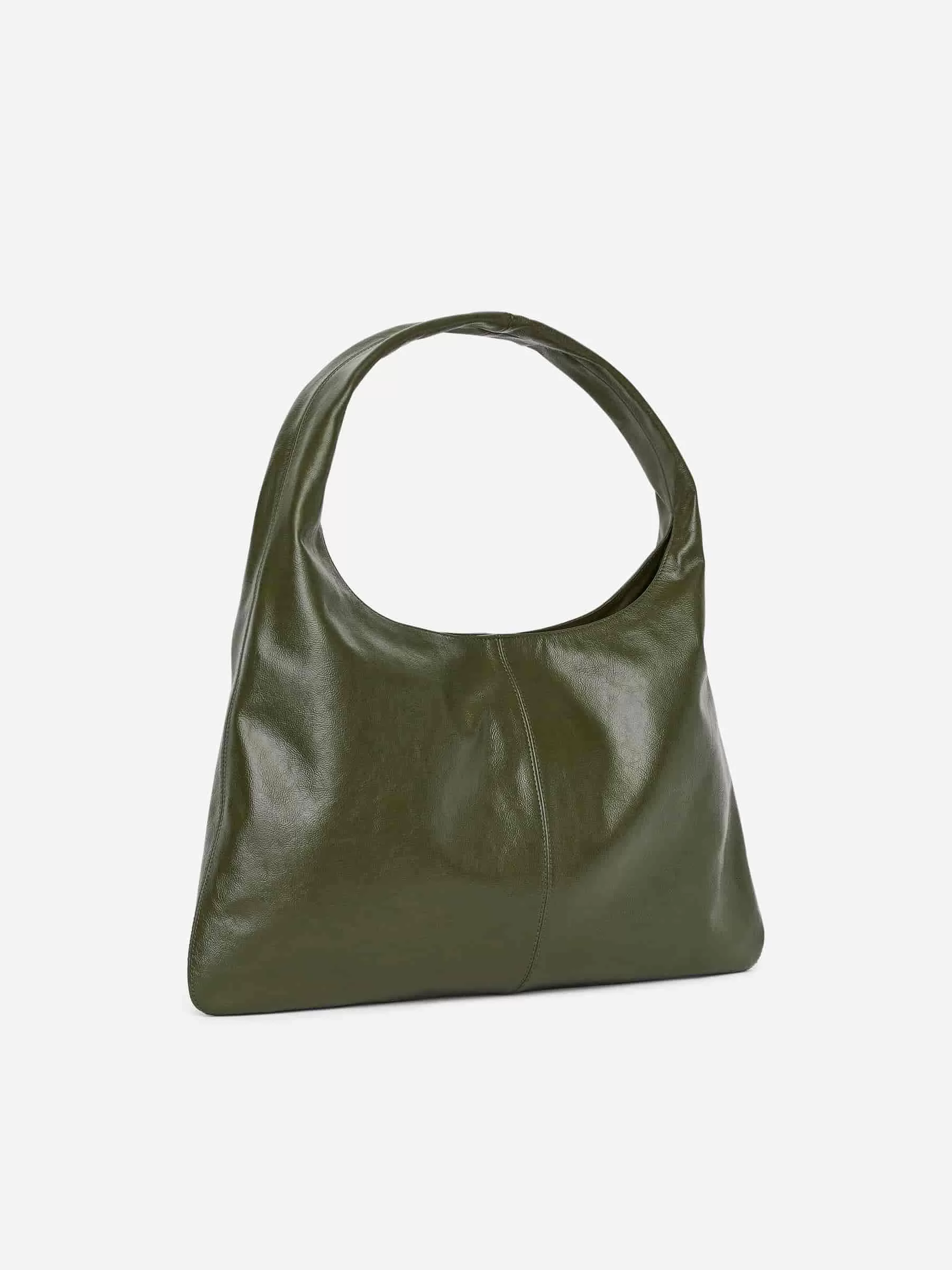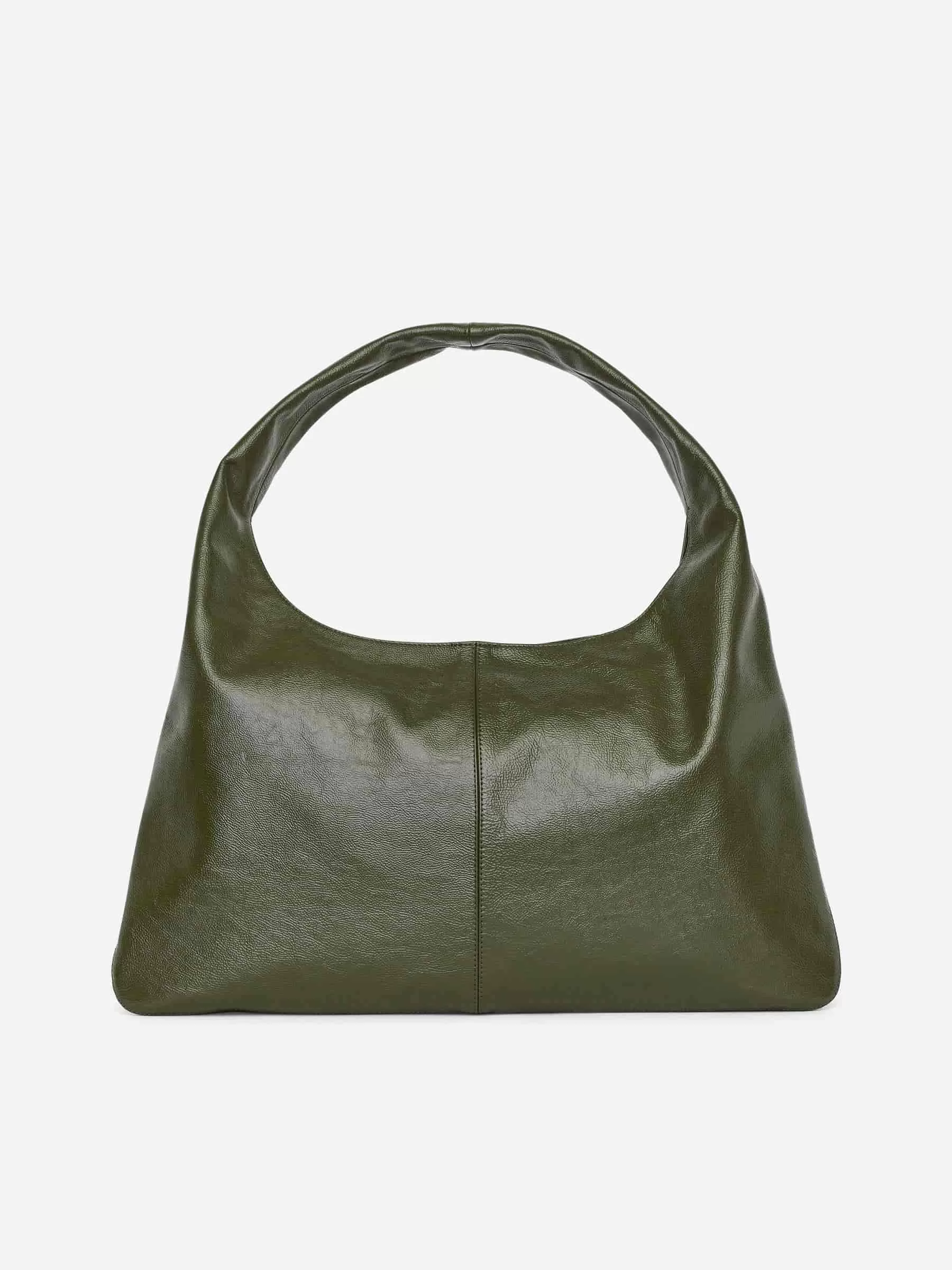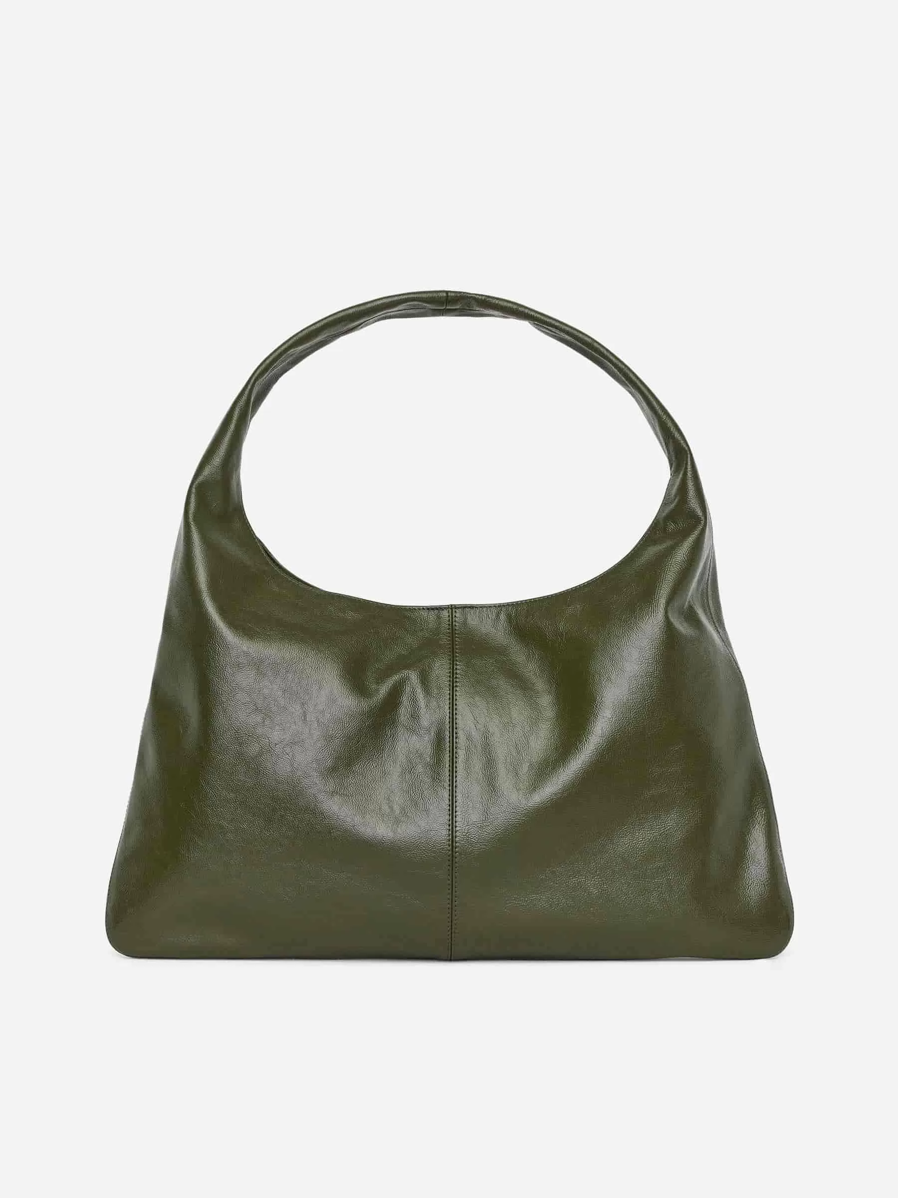 ARKE Damen Glänzende Ledertasche Khakigrün