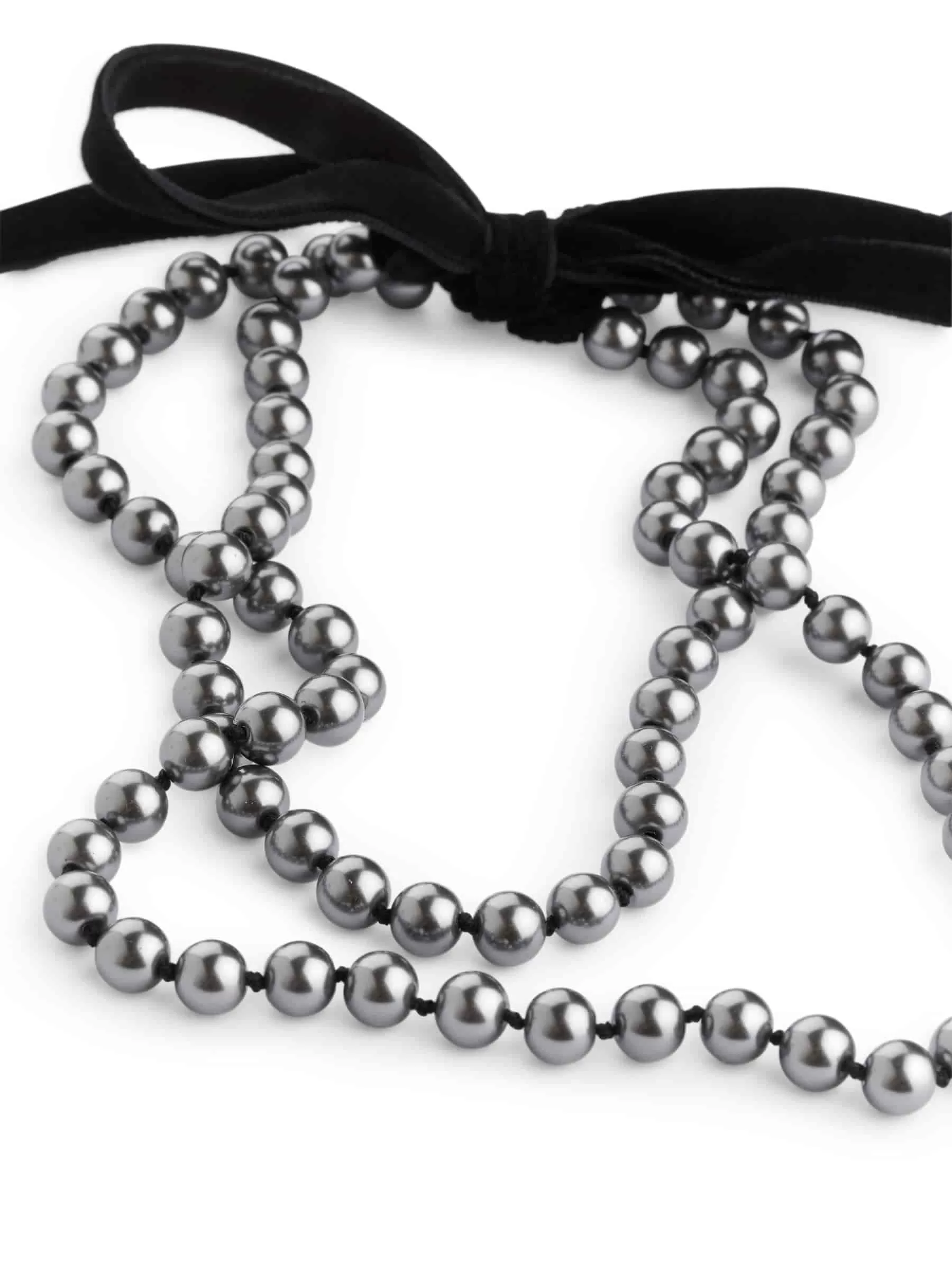 ARKE Damen Glasperlen-Samt-Halskette Dunkelgrau/Schwarz