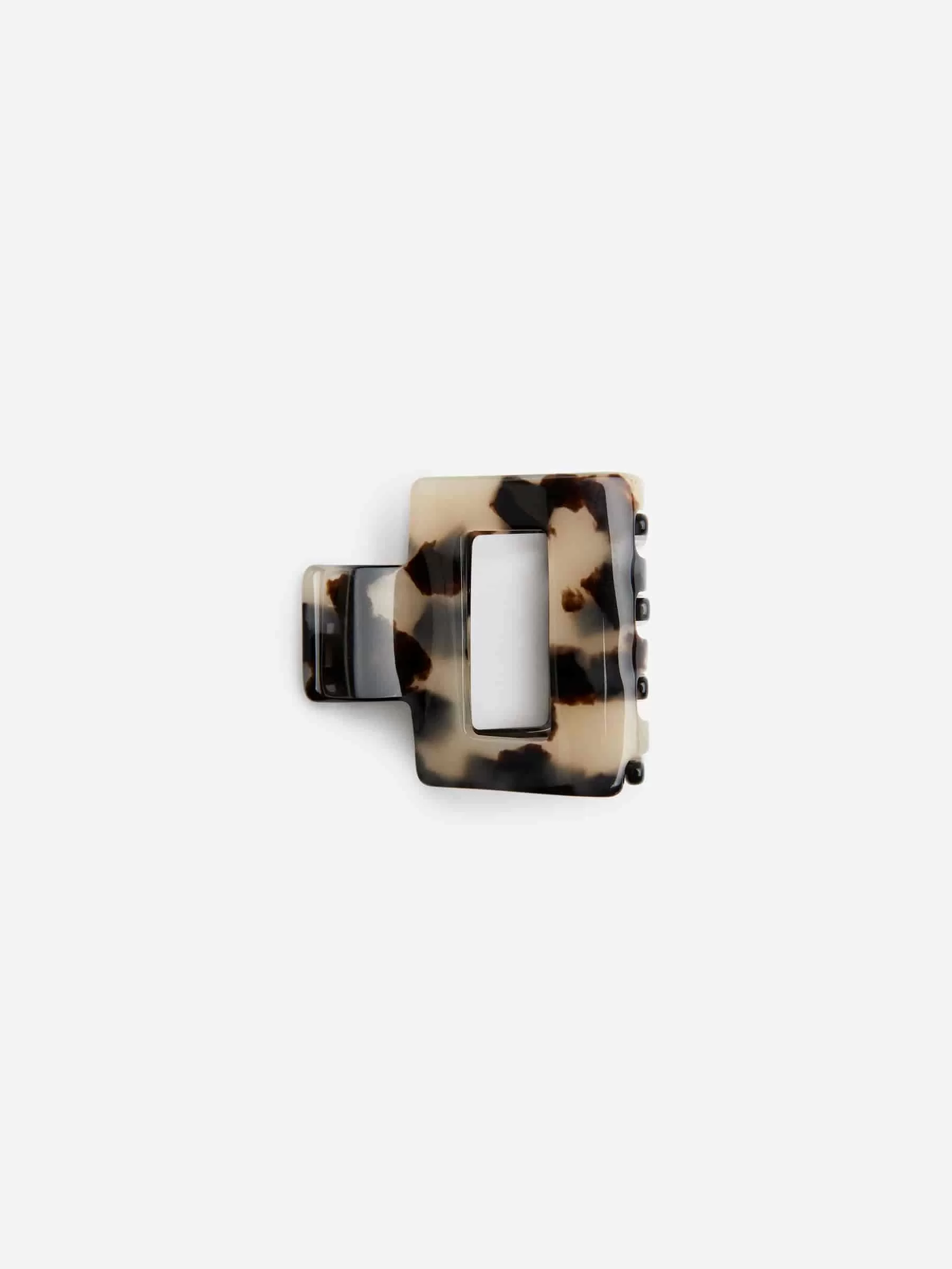 Quadratische Haarspange aus recyceltem Acetat. Maße: 4,5 cm x 4,6 cm.