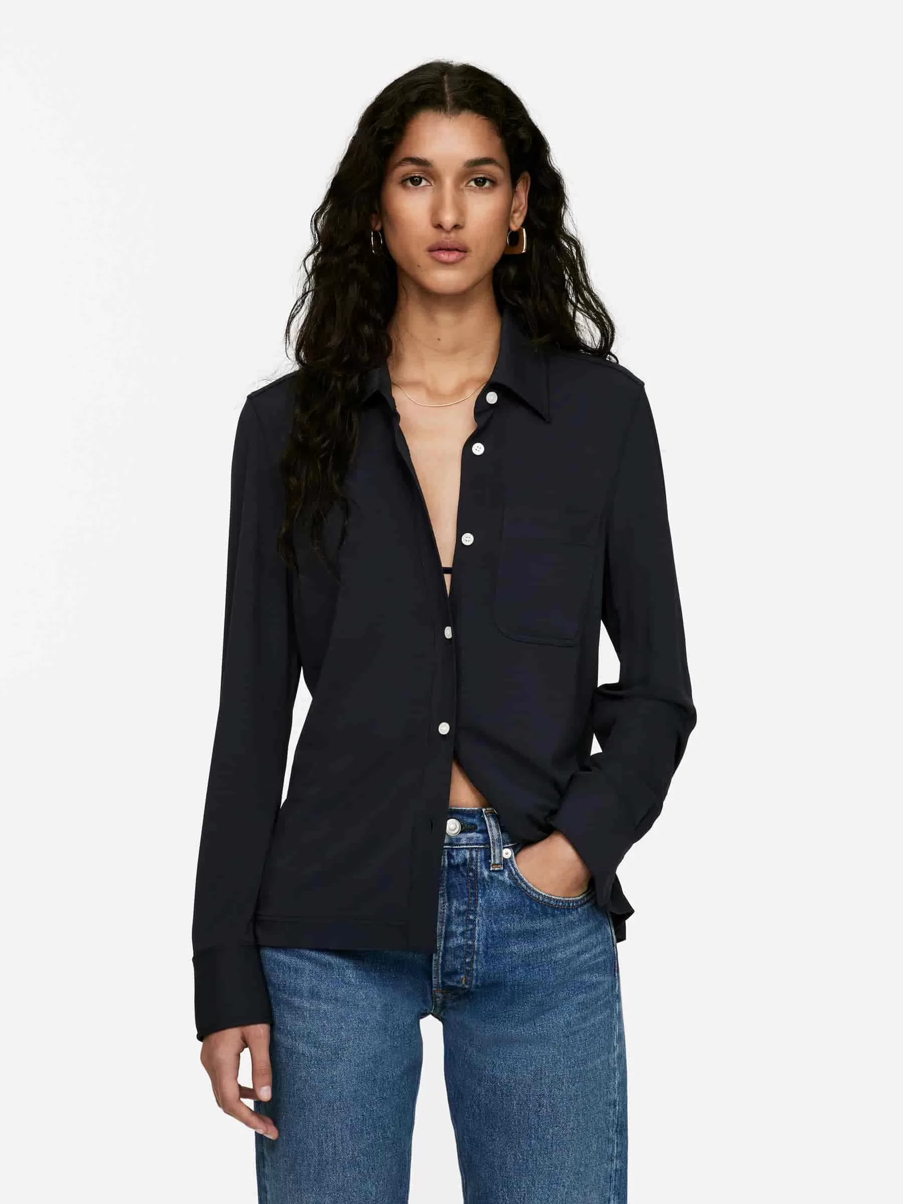 Shirt aus Viskose mit einem Hauch Elastan für Dehnbarkeit. Ein geknöpfter Stil mit einer einzelnen Brusttasche und geknöpften Manschetten. Normale Passform.