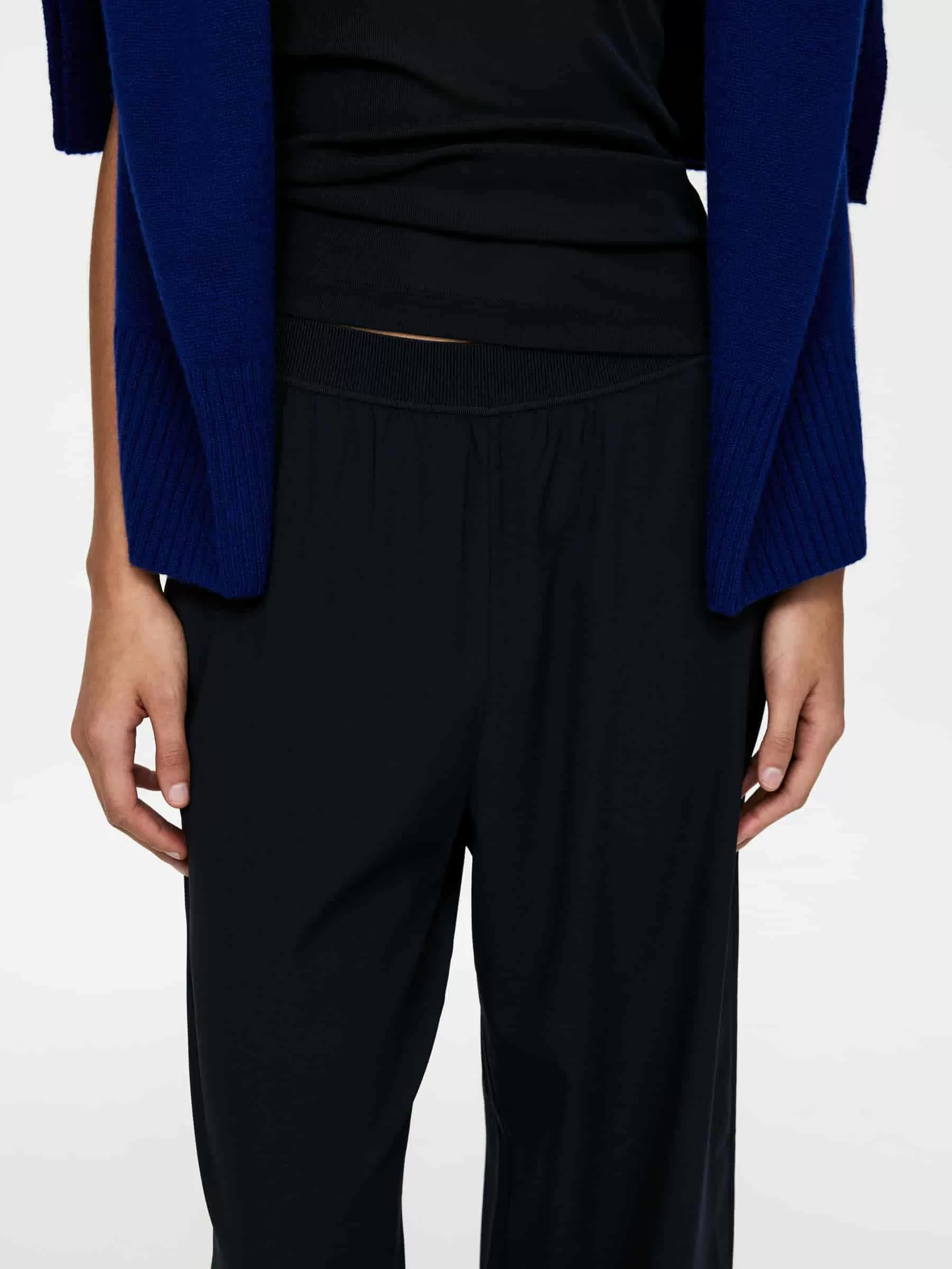 Loungewear-Hose aus hochwertigem Stretch-Seidenkrepp. Mit geradem Bein und Gummizug in der Taille.
