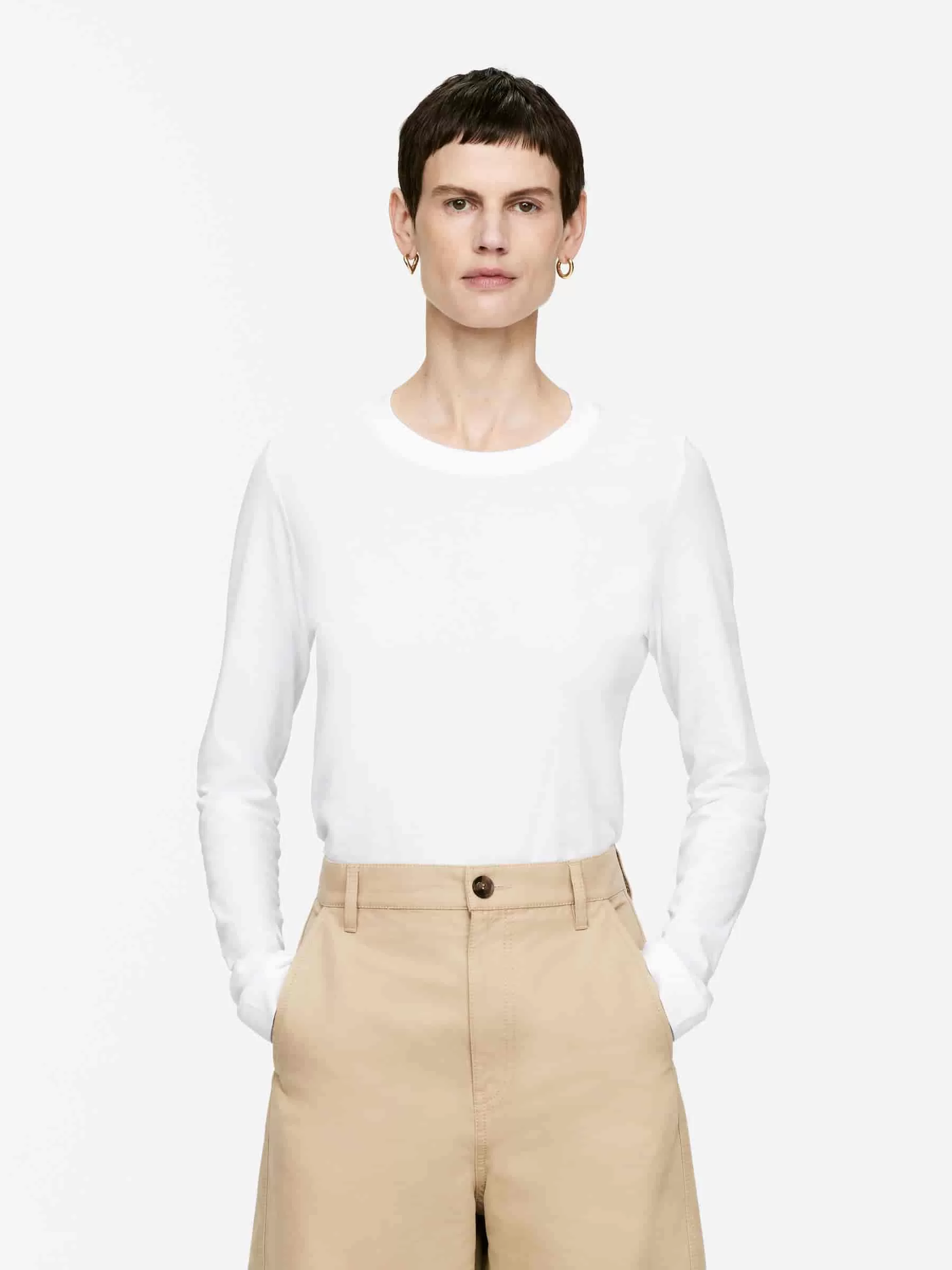 Langärmliges T-Shirt aus leichtem Baumwolljersey. Mit Rundhalsausschnitt und normaler Passform.