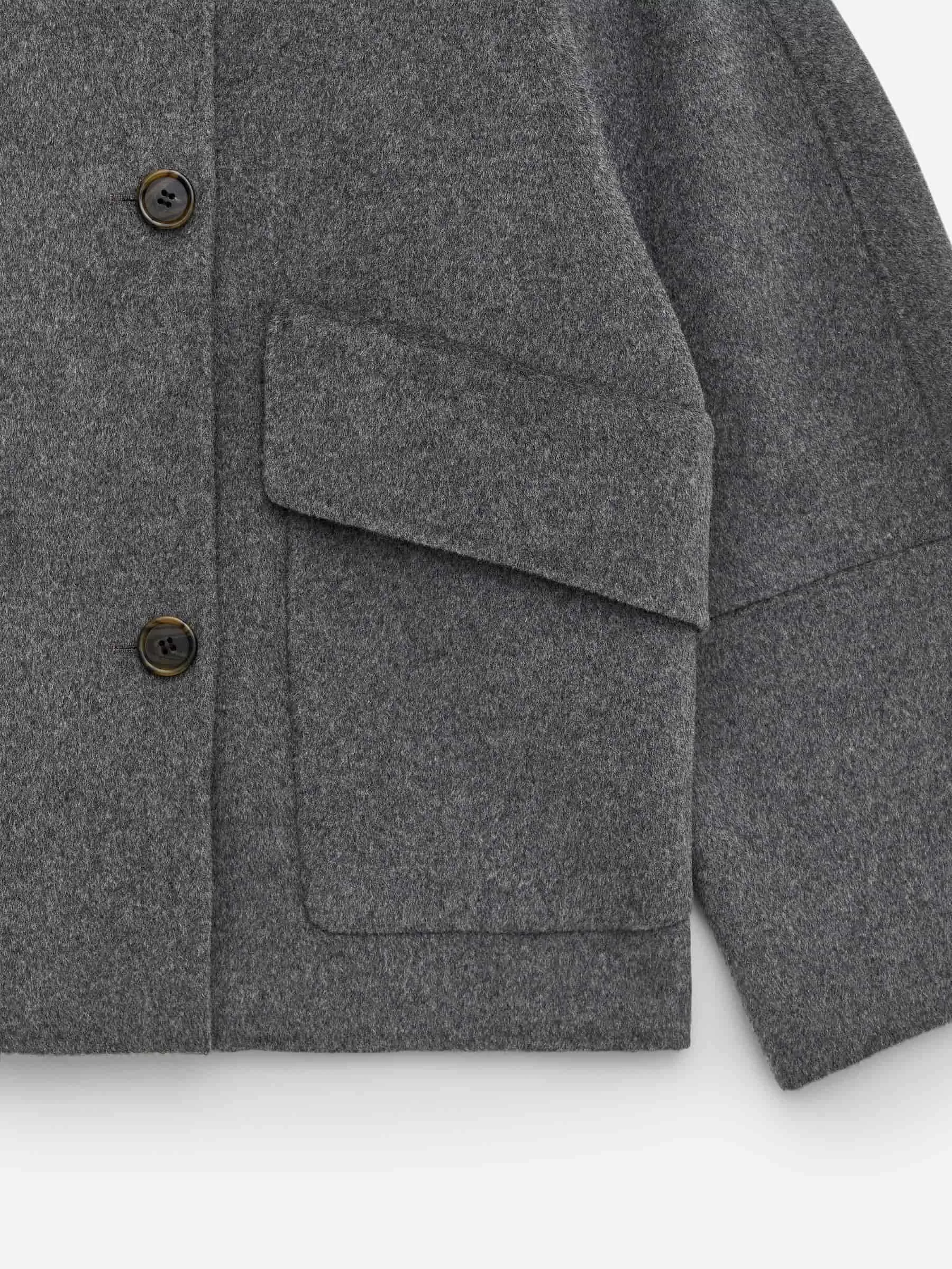 Jacke aus doppelseitigem Wollmischgewebe. Mit Stehkragen, Knopfverschluss und schrägen aufgesetzten Taschen mit Klappen vorne. Die Jacke besteht zu 80 % aus RWS-Wolle (TE-00047206). Produkte, die nach dem Responsible Wool Standard (RWS) zertifiziert sind, enthalten Wollfasern von Farmen, die unabhängig nach Tierschutz- und Landbewirtschaftungsanforderungen zertifiziert sind.