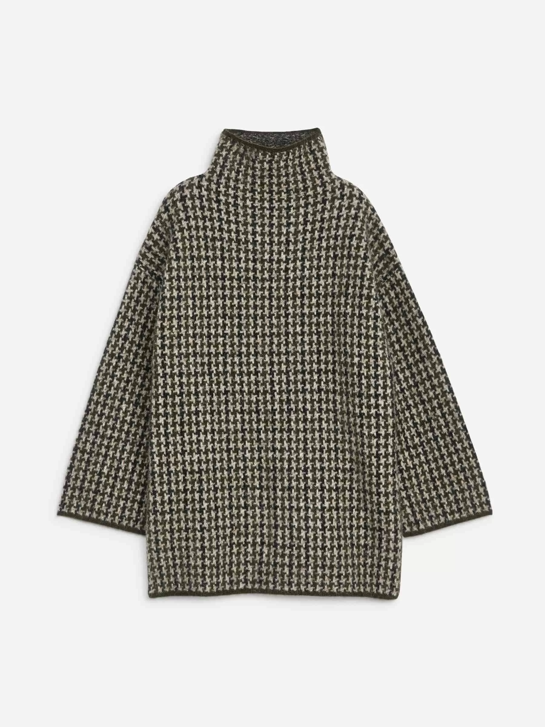 ARKE Damen Jacquard-Strickpullover Beige/Dunkelgrün
