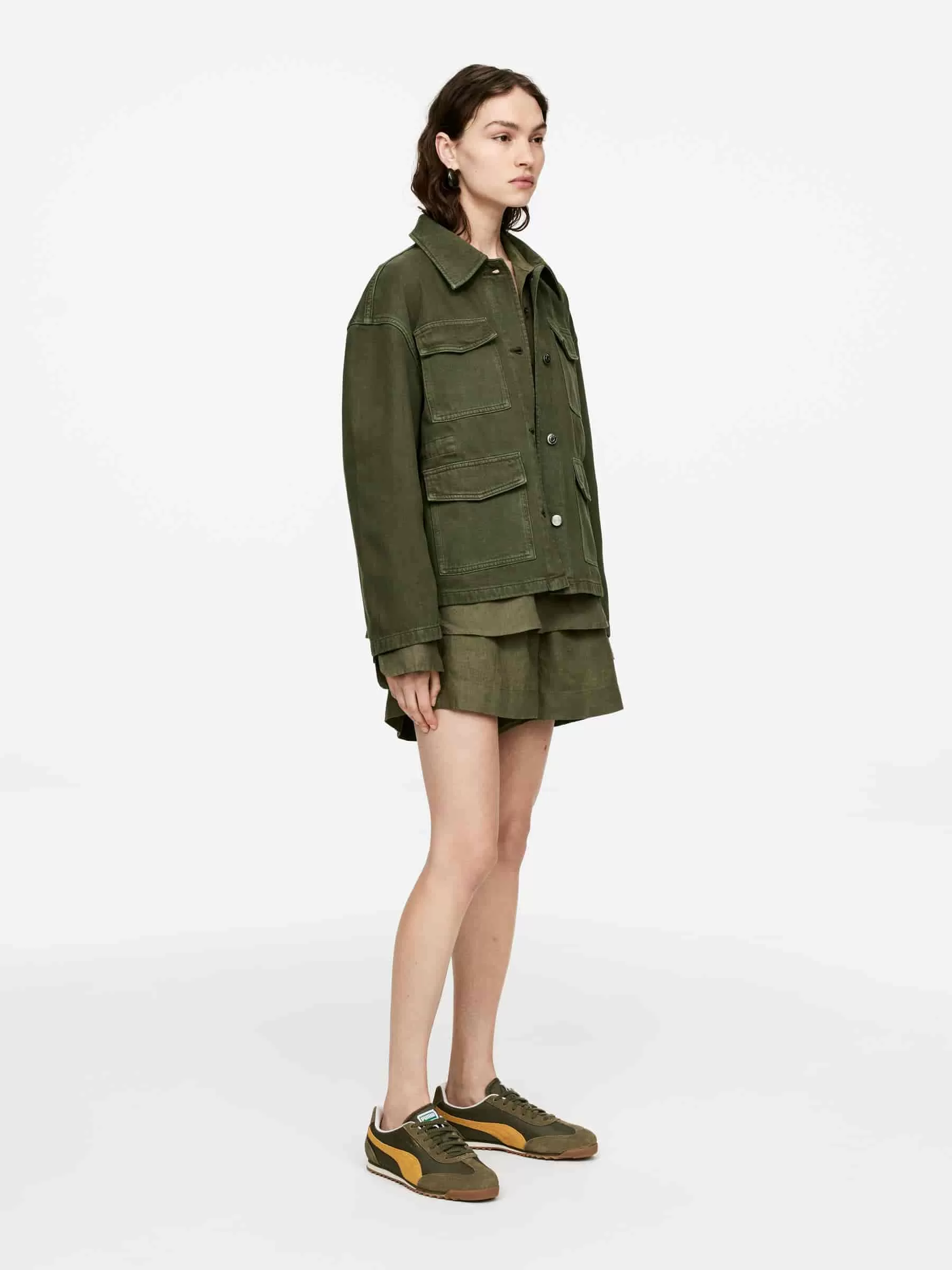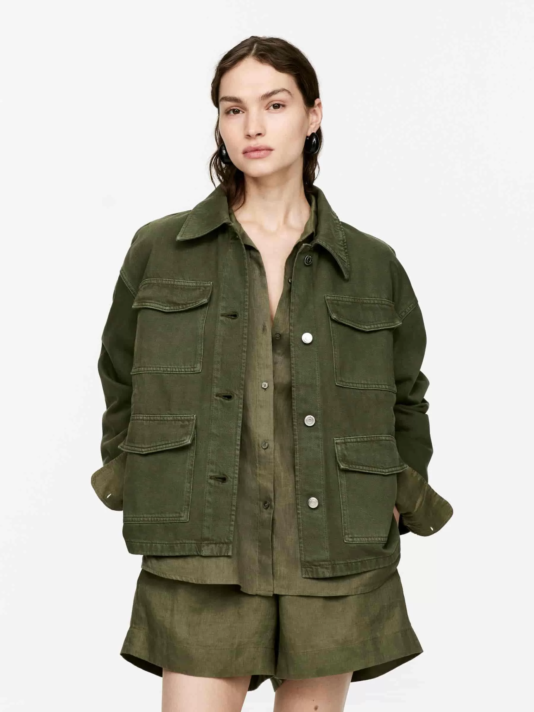 ARKE Damen Jeansjacke Khakigrün