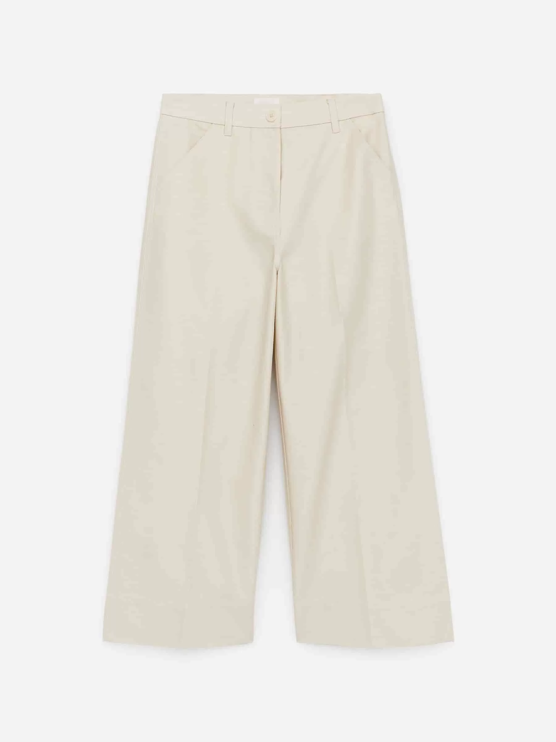 Hose aus Baumwollgewebe mit strukturierter Haptik. Mit normaler Taille und weiten, knöchellangen Beinen. Schräge Taschen vorne, aufgesetzte Taschen hinten. Gürtelschlaufen.