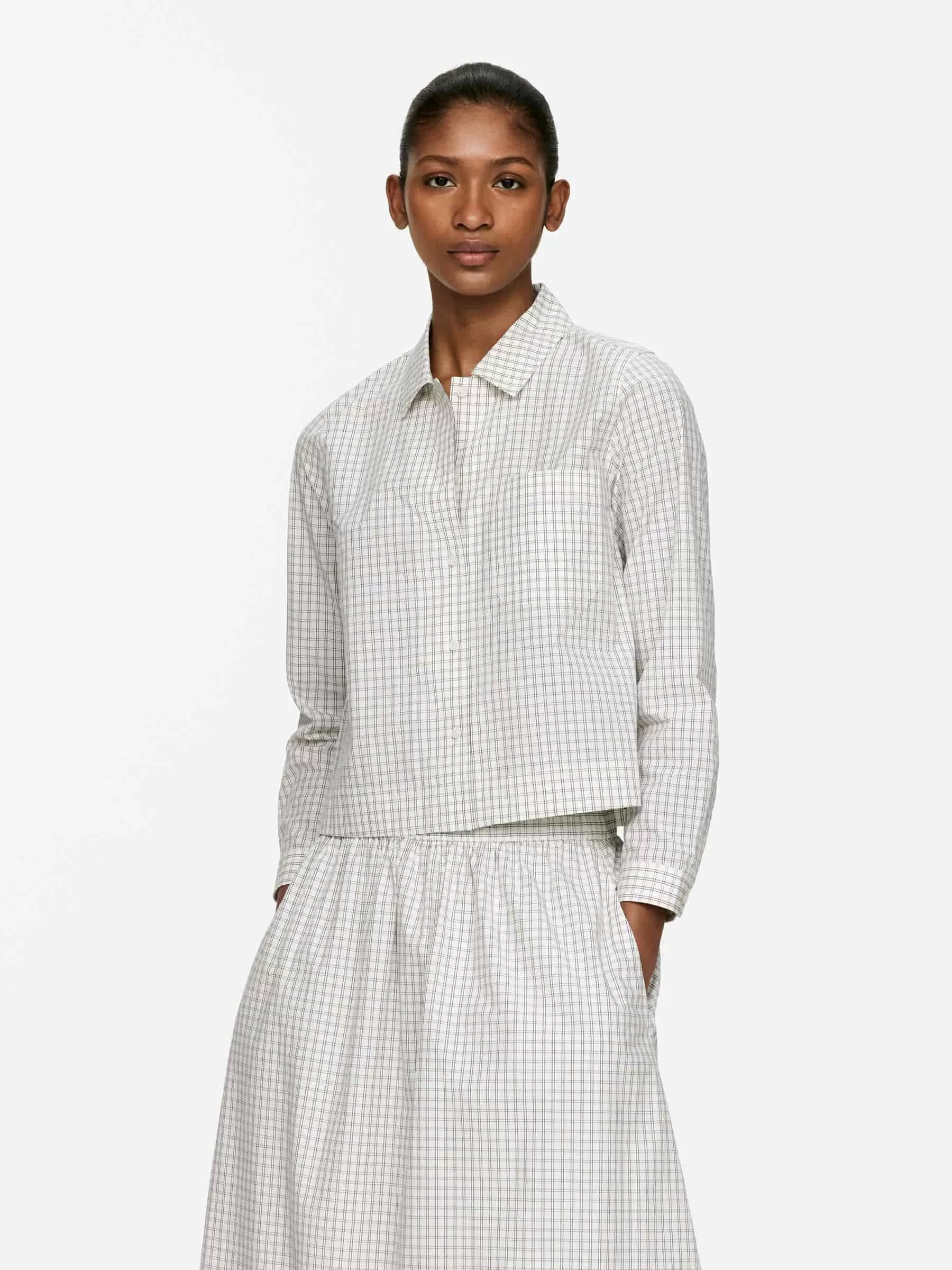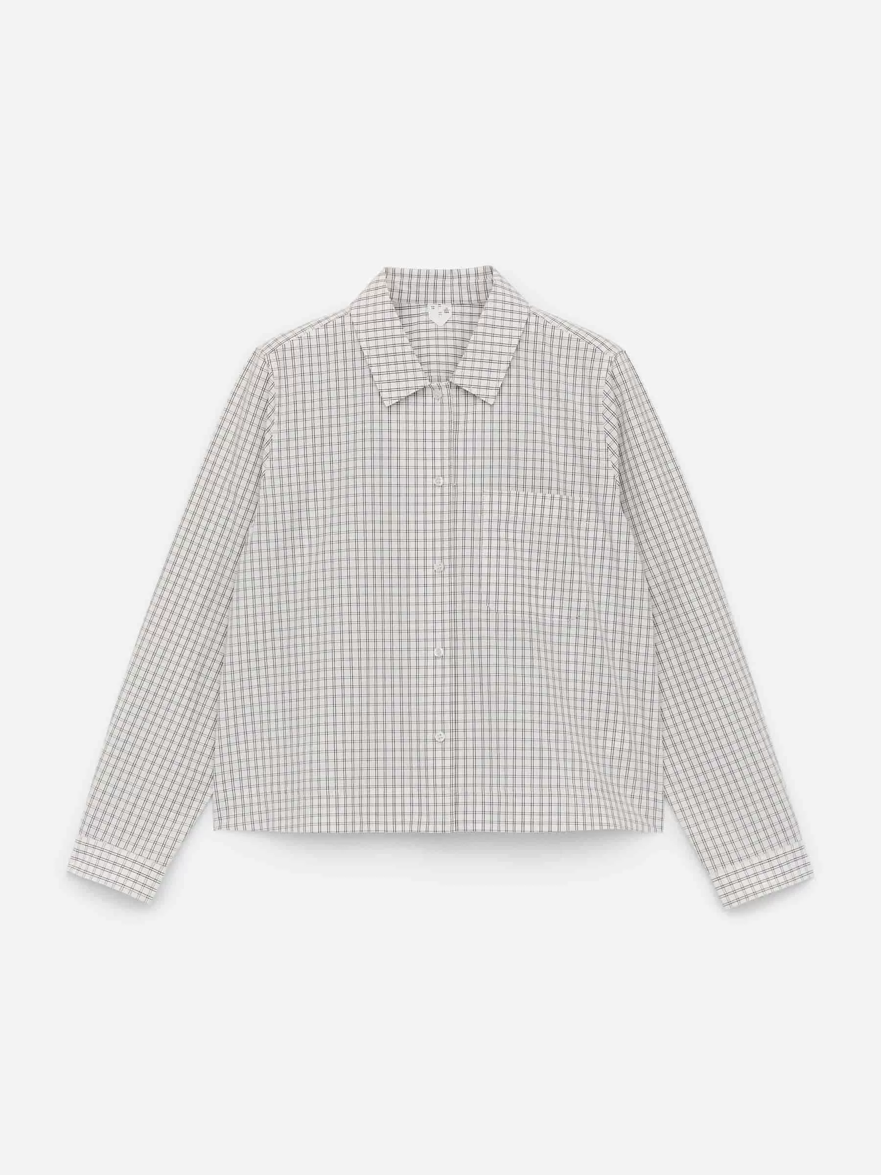 Kurz geschnittenes Hemd aus Baumwolle. Ein geknöpfter Stil mit einer einzelnen Brusttasche. Normale Passform.