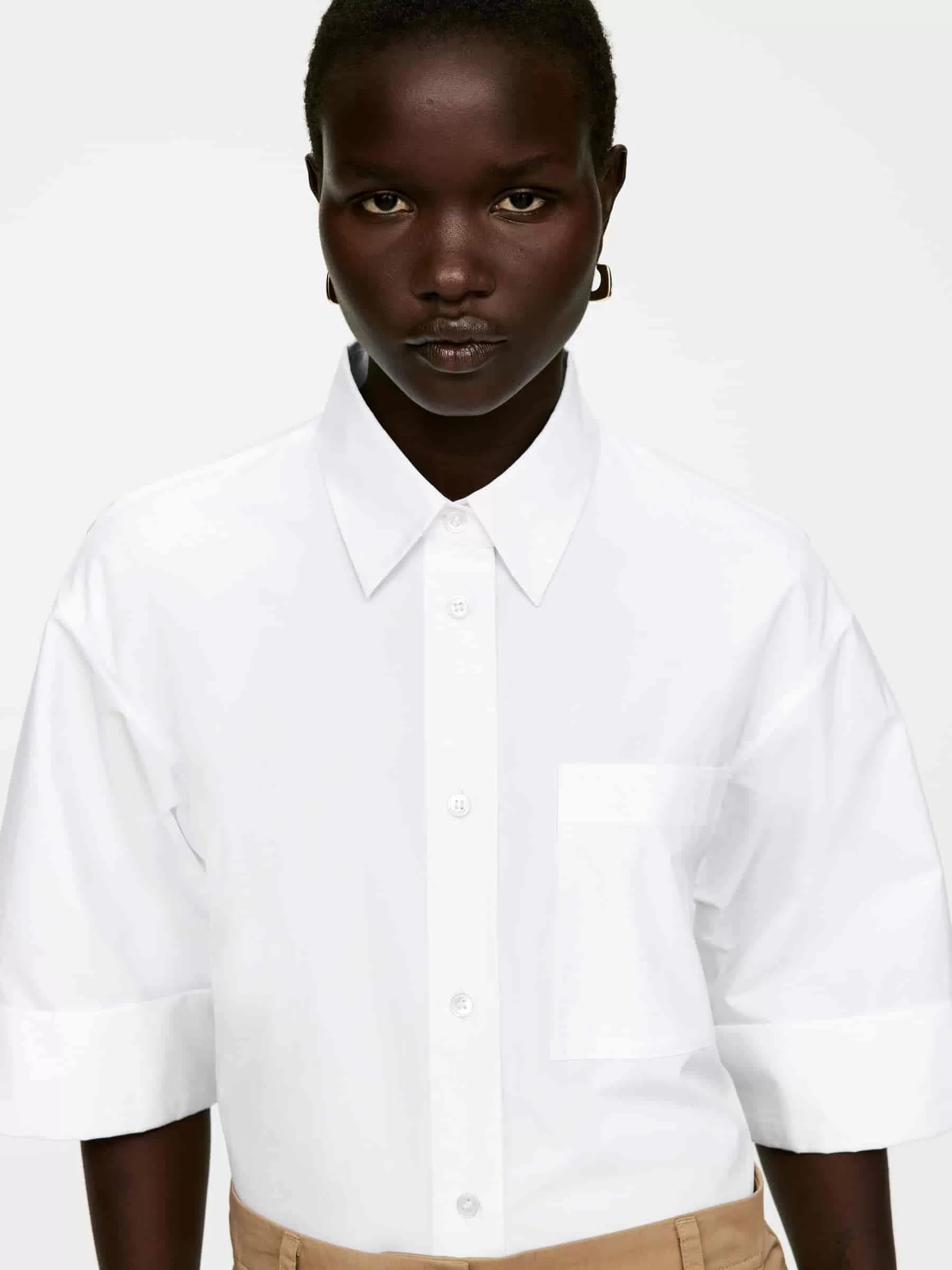Kurzärmeliges Hemd aus Baumwolle. Ein übergroßer Stil mit einer einzigen Brusttasche.