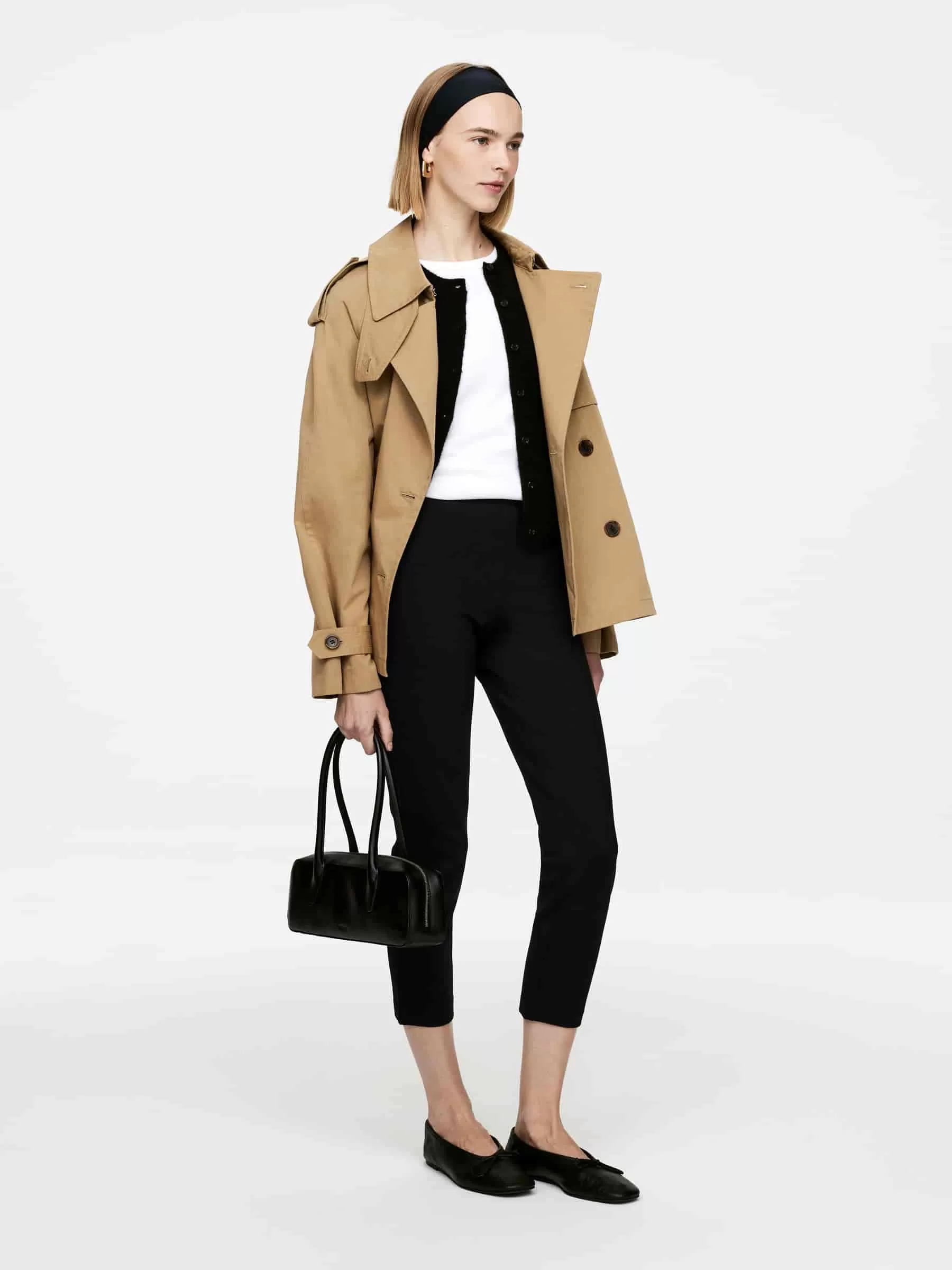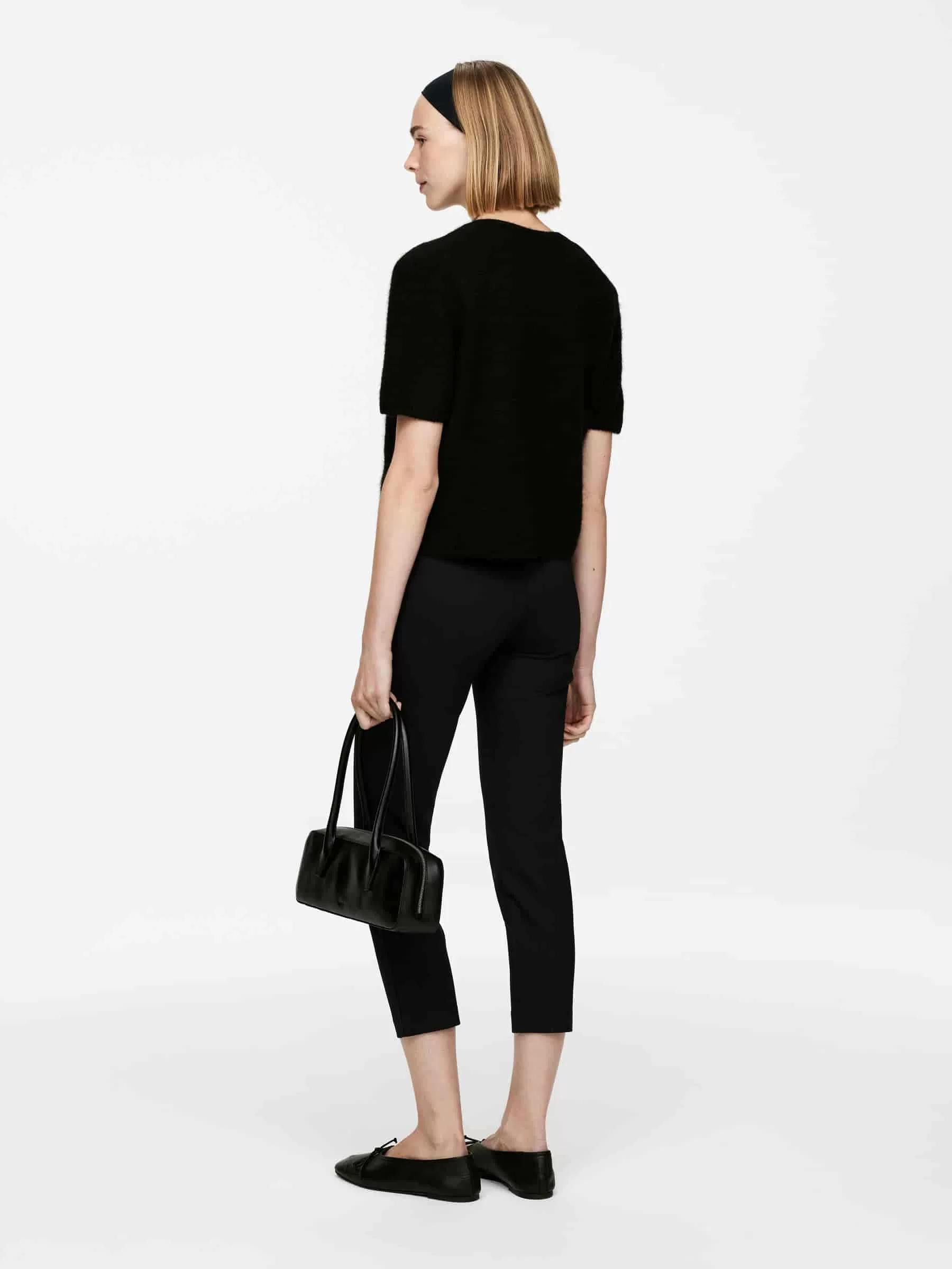 Kurz geschnittene Hose aus einer elastischen Viskosemischung. Gummizug innen am Bund. Schlitztaschen hinten. Schlanke Passform.