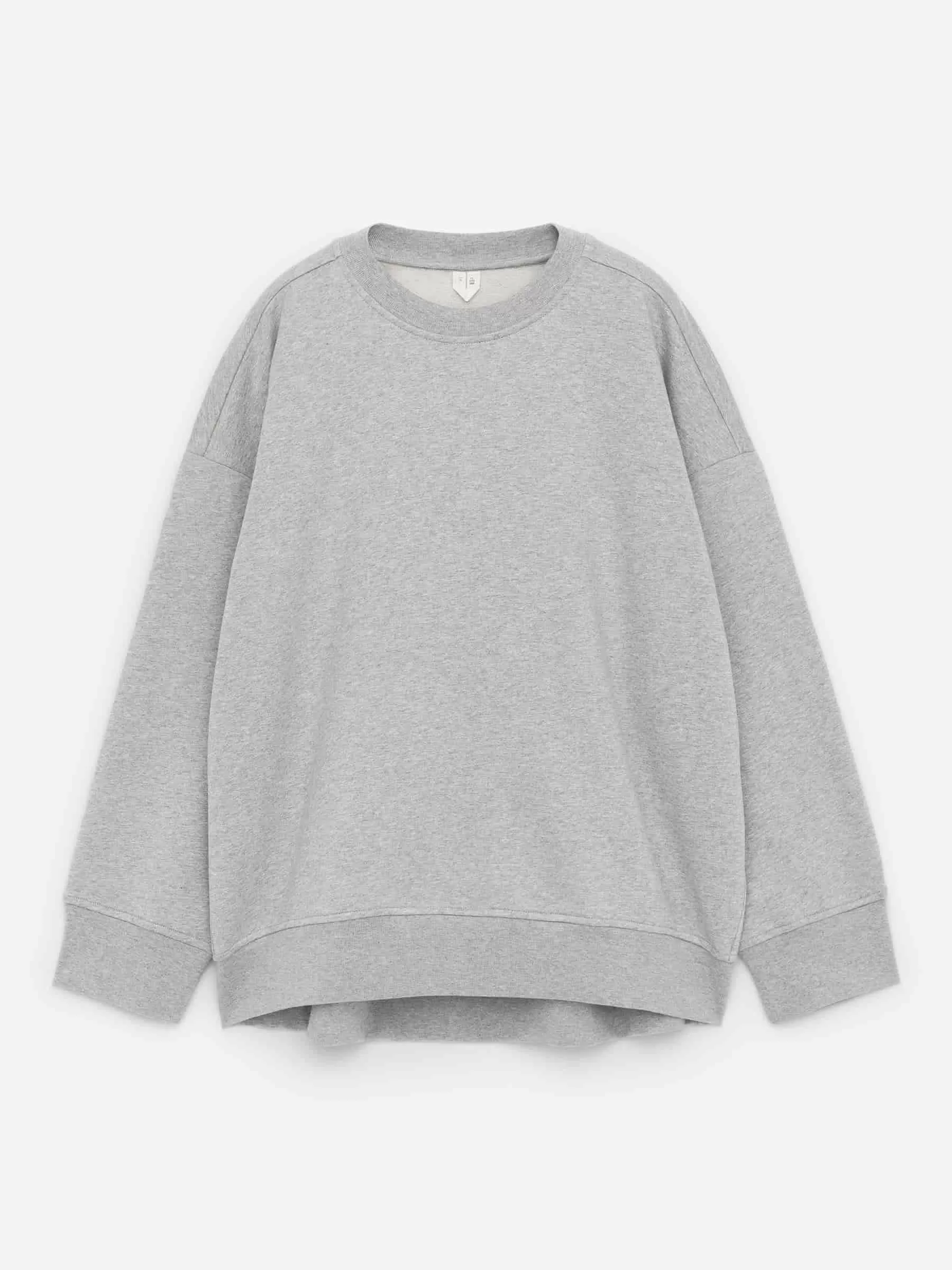 Entspanntes Sweatshirt aus Baumwolle mit French-Terry-Unterseite für feuchtigkeitsableitende Eigenschaften. Ein Modell mit Rundhalsausschnitt, gerippten Abschlüssen, überschnittenen Schultern und einer übergroßen Passform.