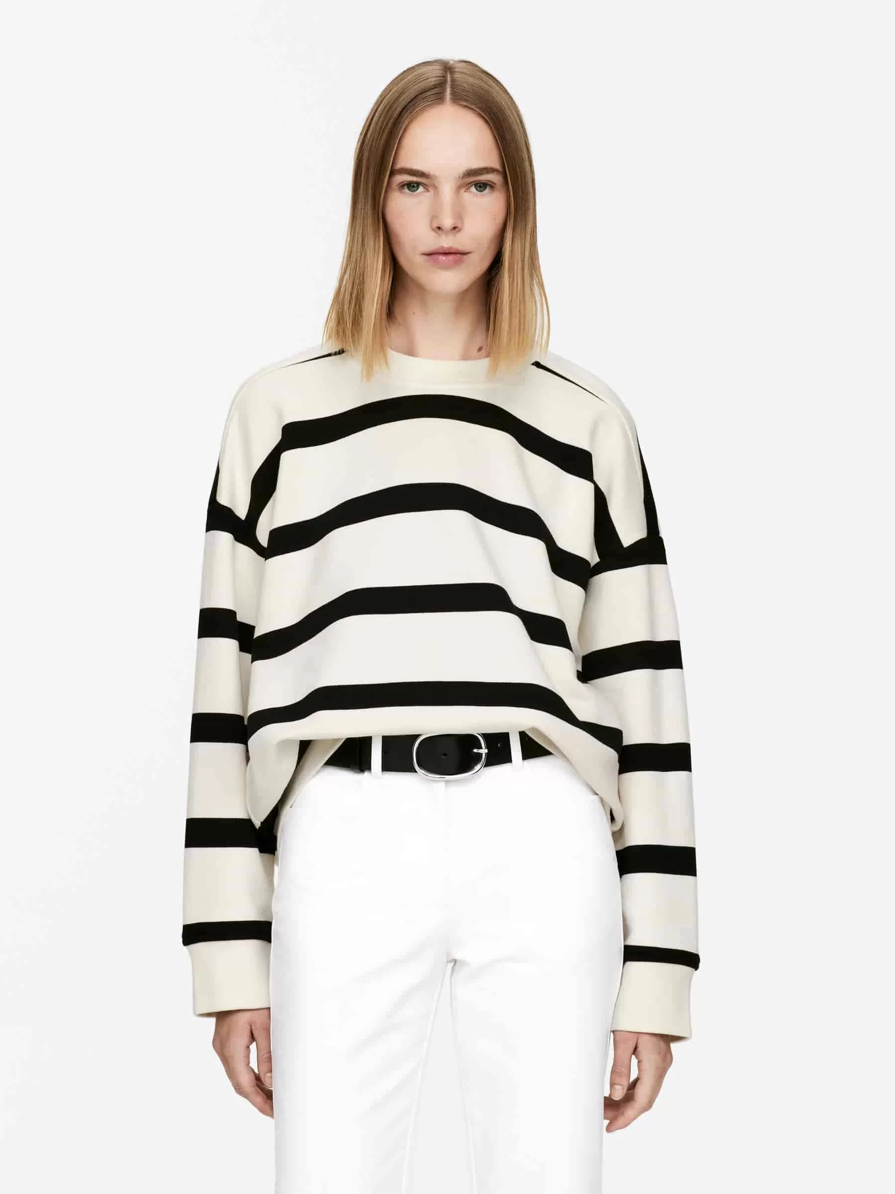 Entspanntes Sweatshirt aus Baumwolle mit French-Terry-Unterseite für feuchtigkeitsableitende Eigenschaften. Ein Modell mit Rundhalsausschnitt, gerippten Abschlüssen, überschnittenen Schultern und einer übergroßen Passform.
