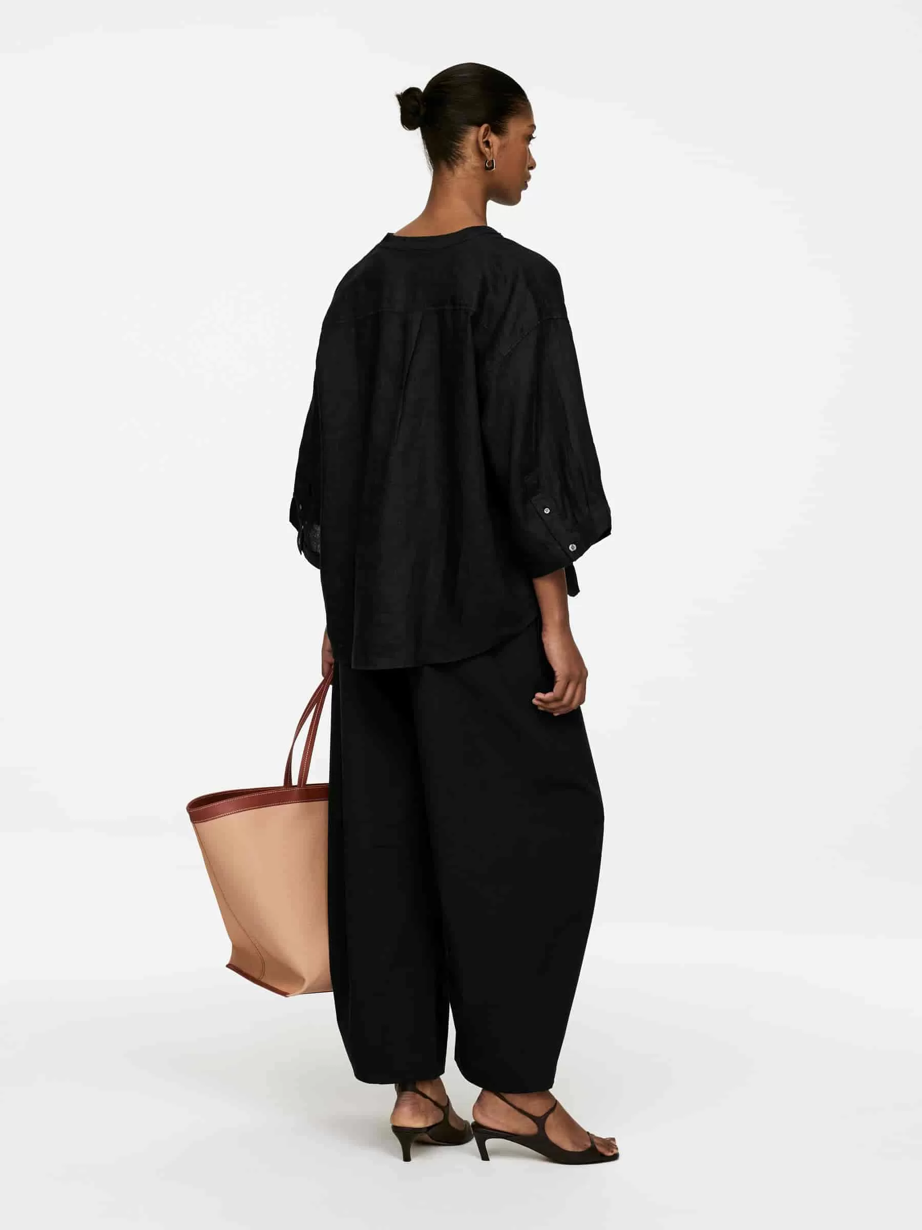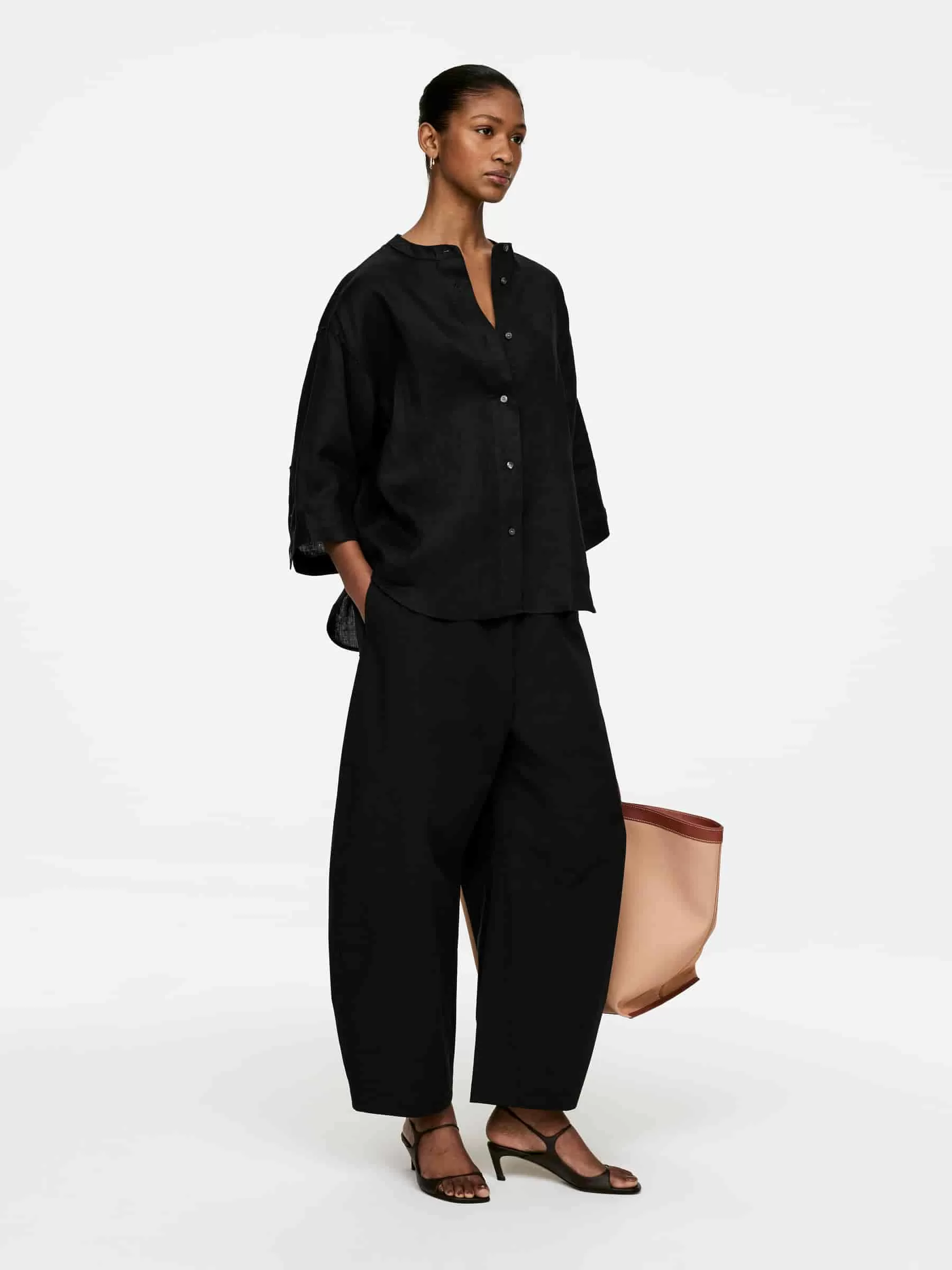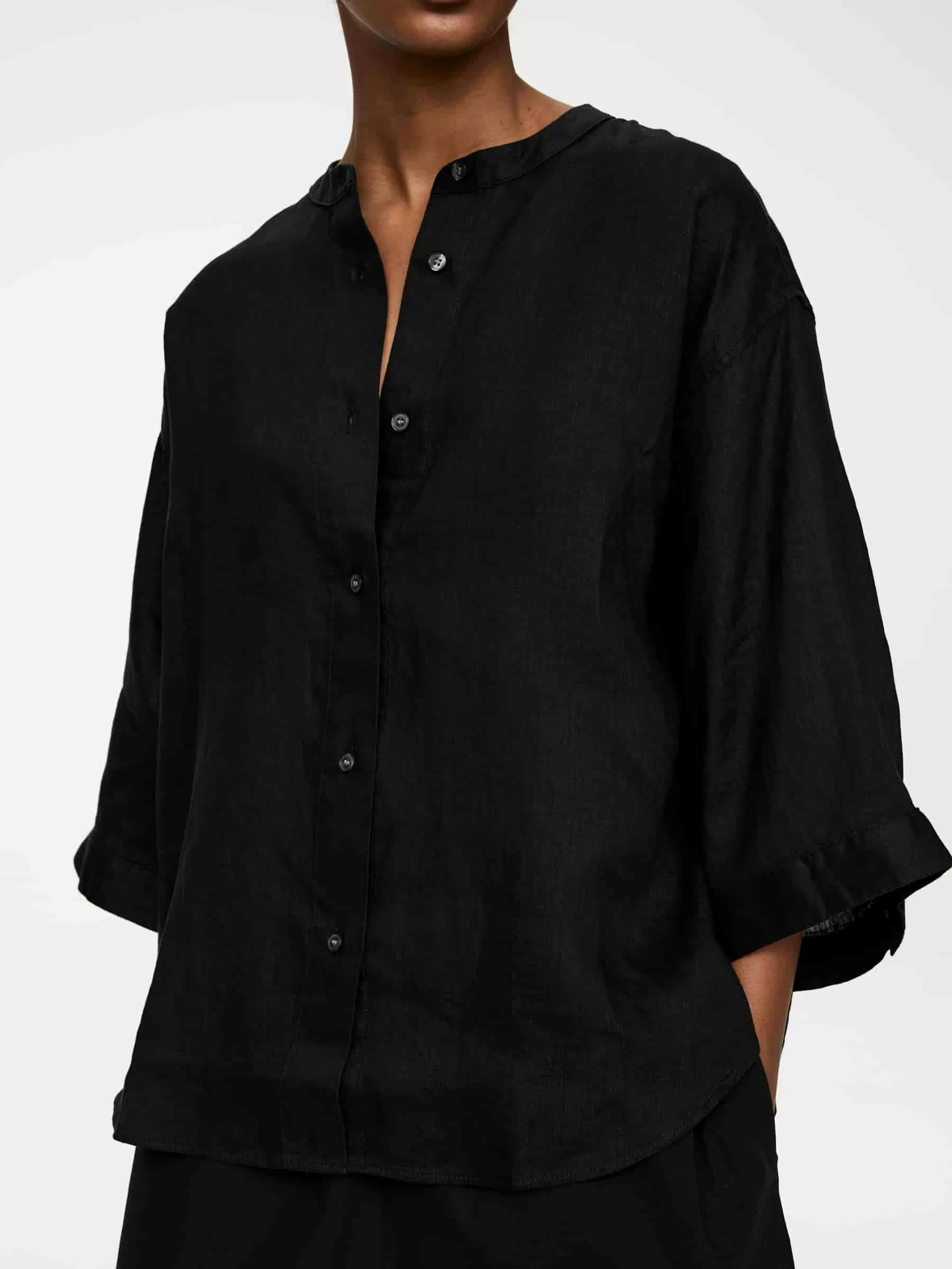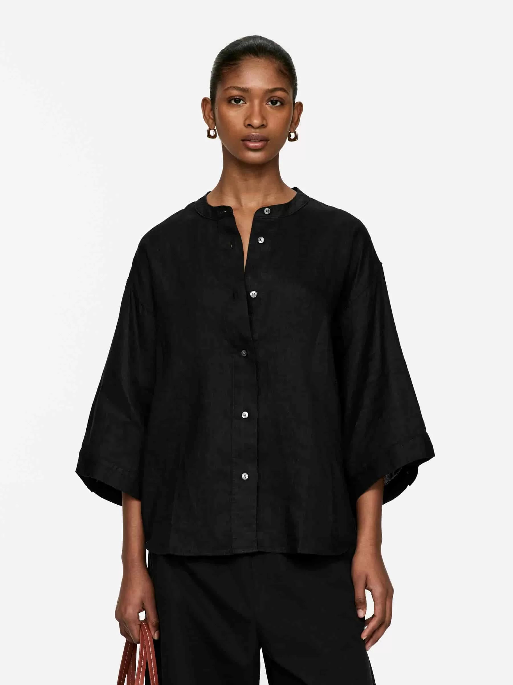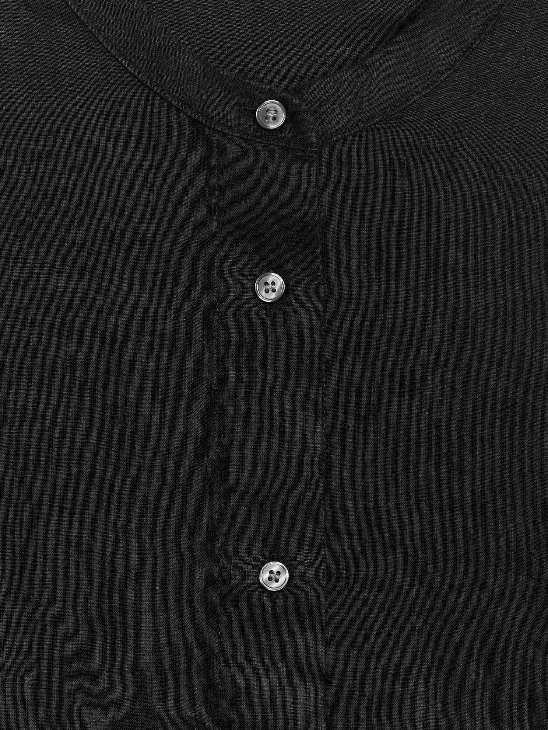 Kragenloses Leinenhemd mit entspannter Passform. Mit Dreiviertelärmeln und Knopf an den Manschetten.