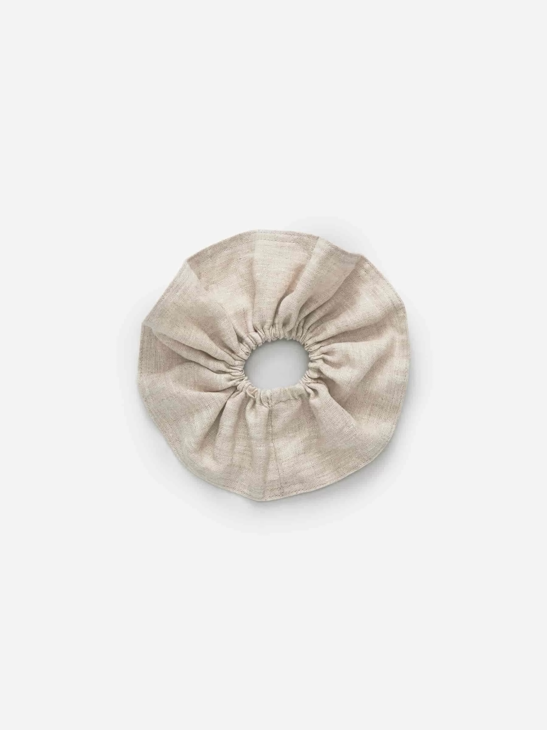Weiches, aber plüschiges Leinen-Scrunchie mit elastischer Innenseite.