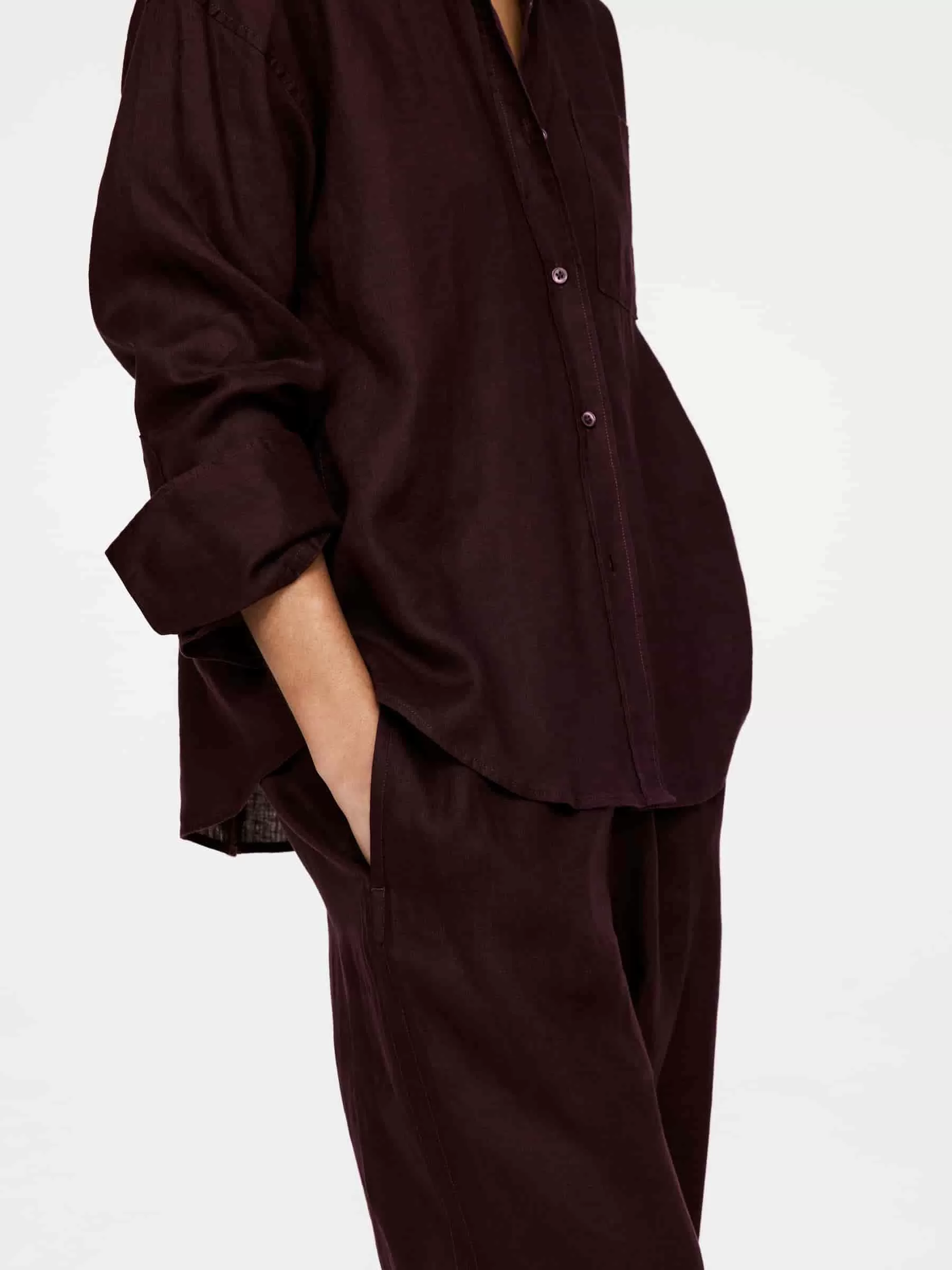Leinenhose mit mittelhohem Bund, lockerer Passform und Seitentaschen. Gummizug in der Taille.
