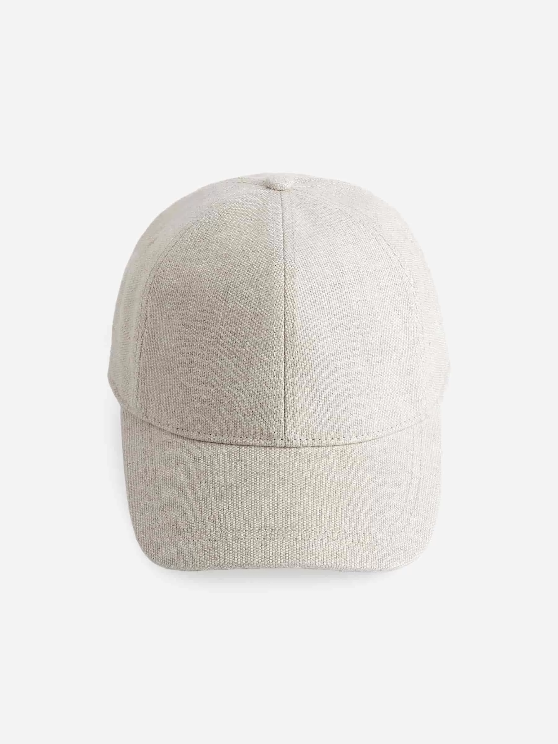 Klassische 5-Panel-Kappe aus einer Leinenmischung. Verstellbarer Riemen mit Metallschnalle hinten.