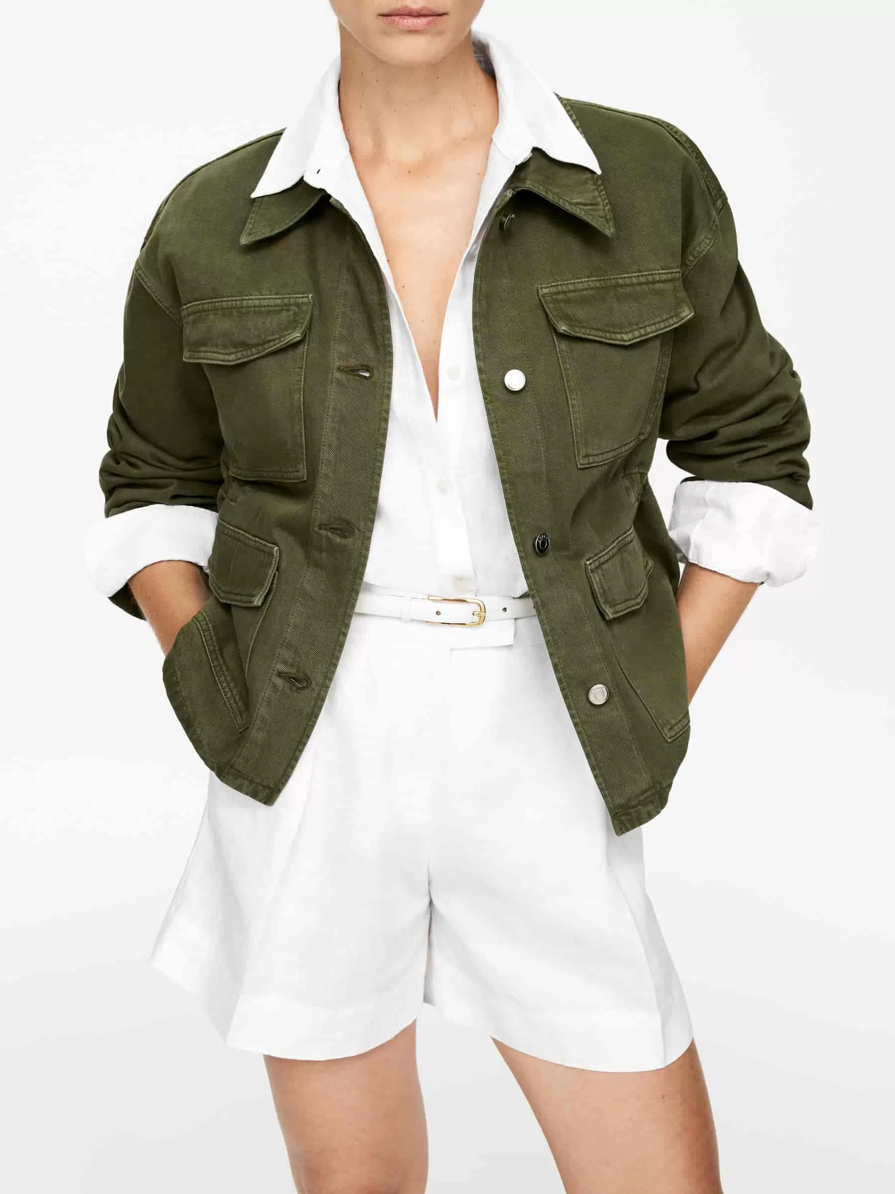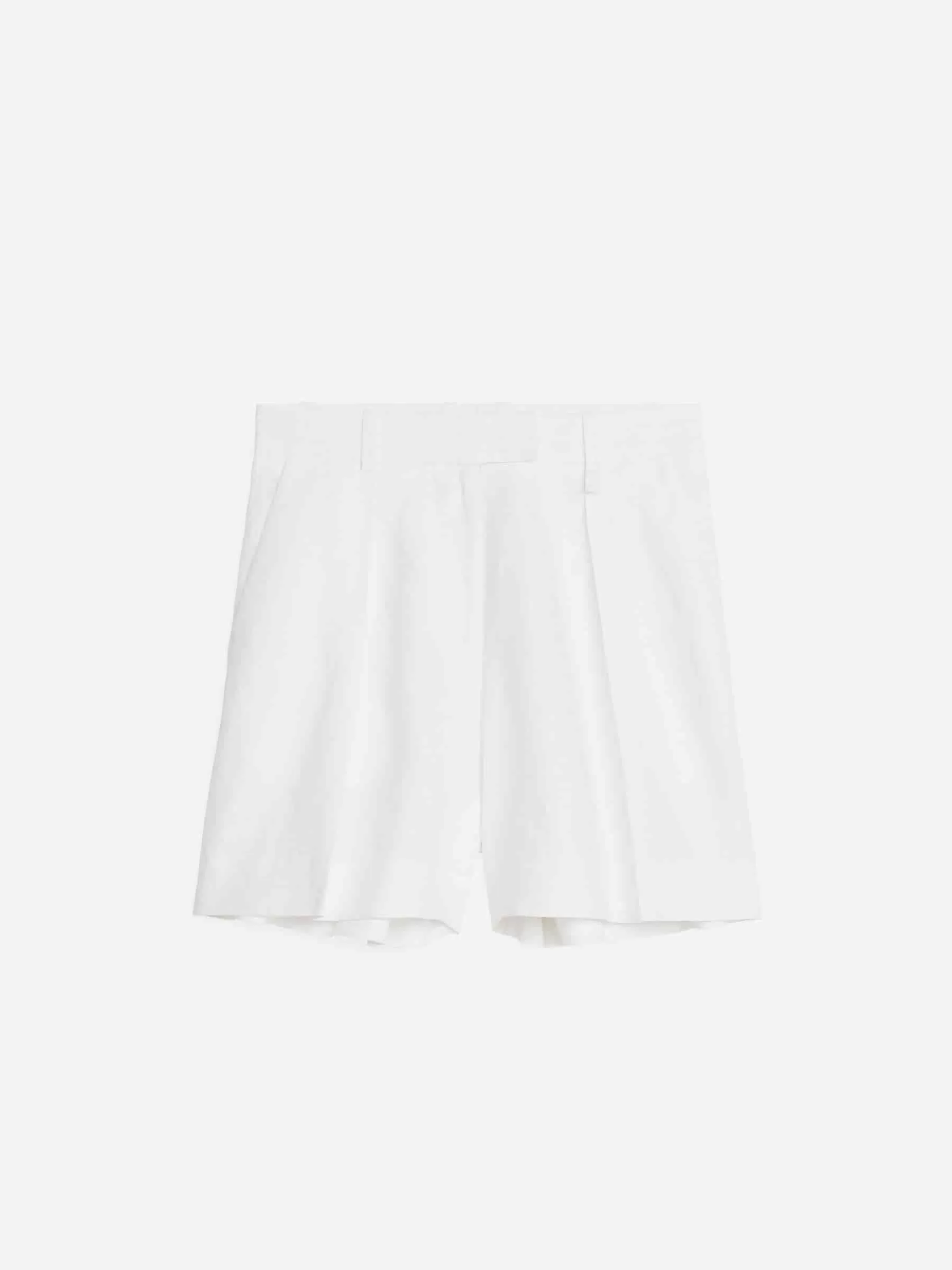 Shorts mit hoher Taille, genäht aus reinem Leinen. Detailliert mit Seitentaschen, Gürtelschlaufen und Gesäßtasche mit Klappen. Haken- und Riegelverschluss und Reißverschluss im Hosenschlitz. Gebügelte Falten.