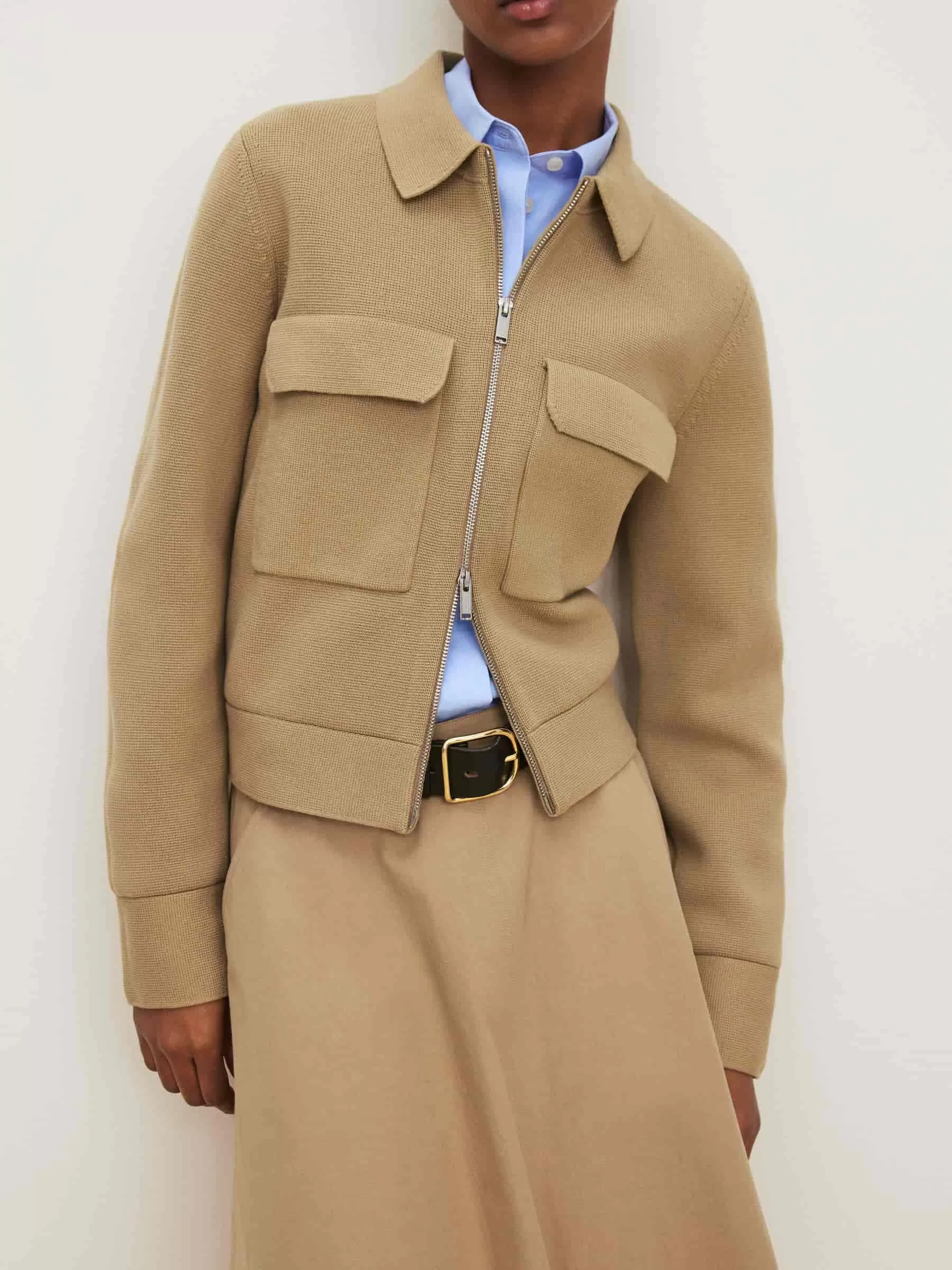 Rock aus Baumwollpopeline-Webart. Ein A-Linien-Stil mit schrägen Taschen an den Seiten und verdecktem Reißverschluss in der hinteren Mitte. Normale Passform.