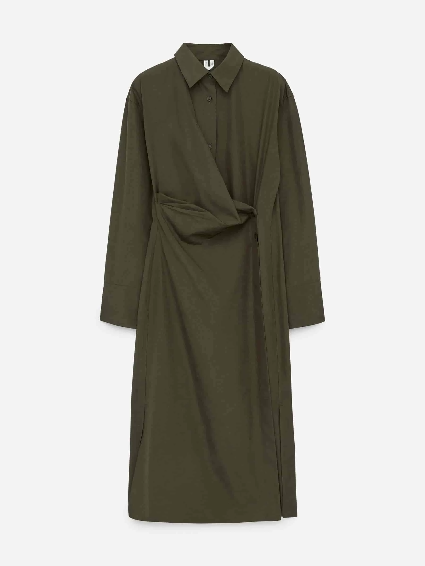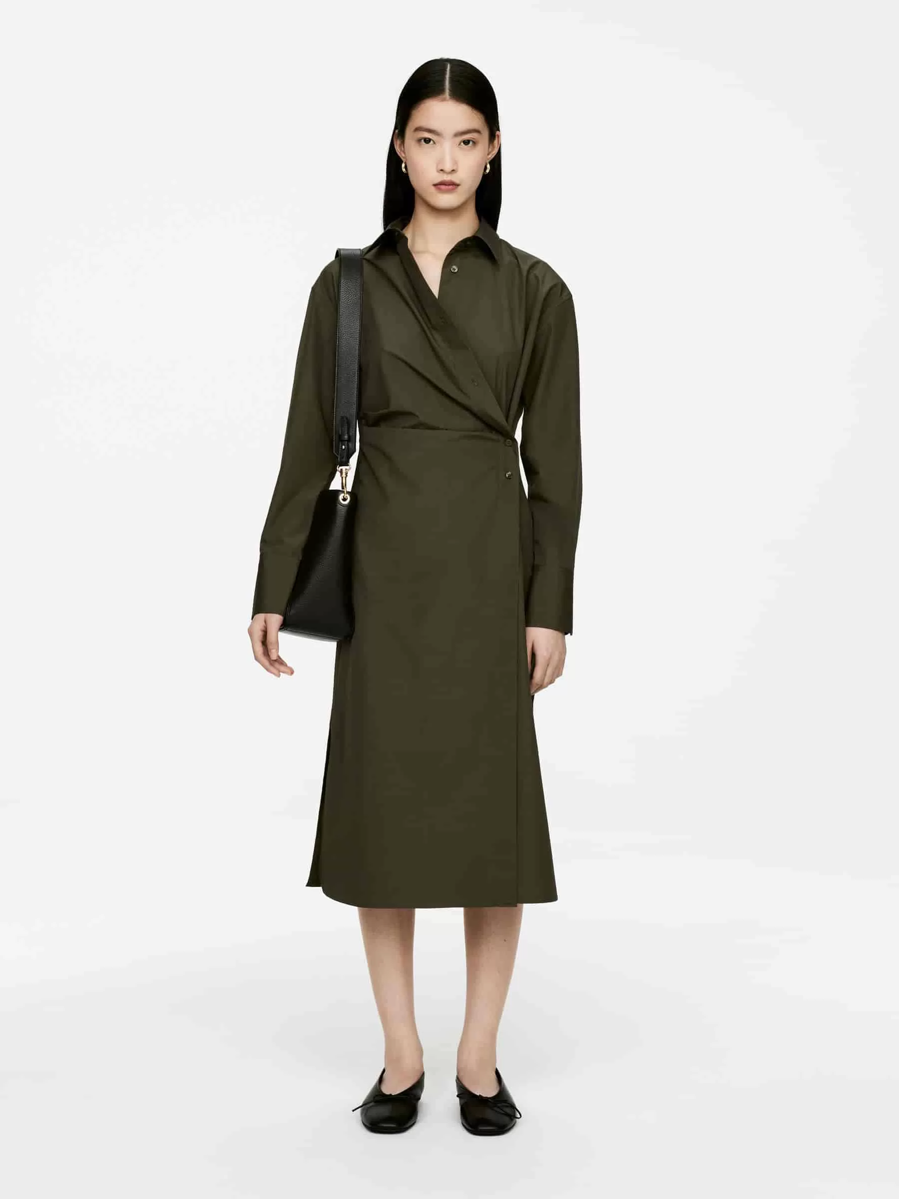 ARKE Damen Midi-Wickelkleid Dunkelgrün
