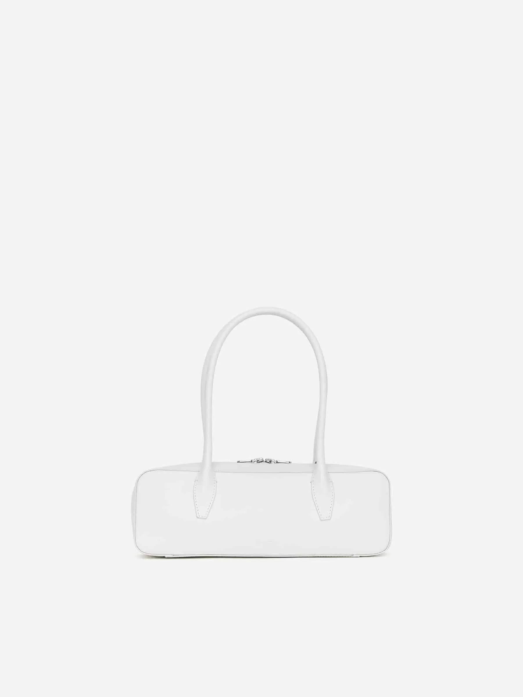 Mini-Bowlingtasche mit Henkeln oben. Entworfen mit einer länglichen Form und sanft abgerundeten Kanten. Doppelter Reißverschluss und Innentasche. Breite 33 cm, Höhe 11 cm, Tiefe 7 cm. 21 cm fallen.