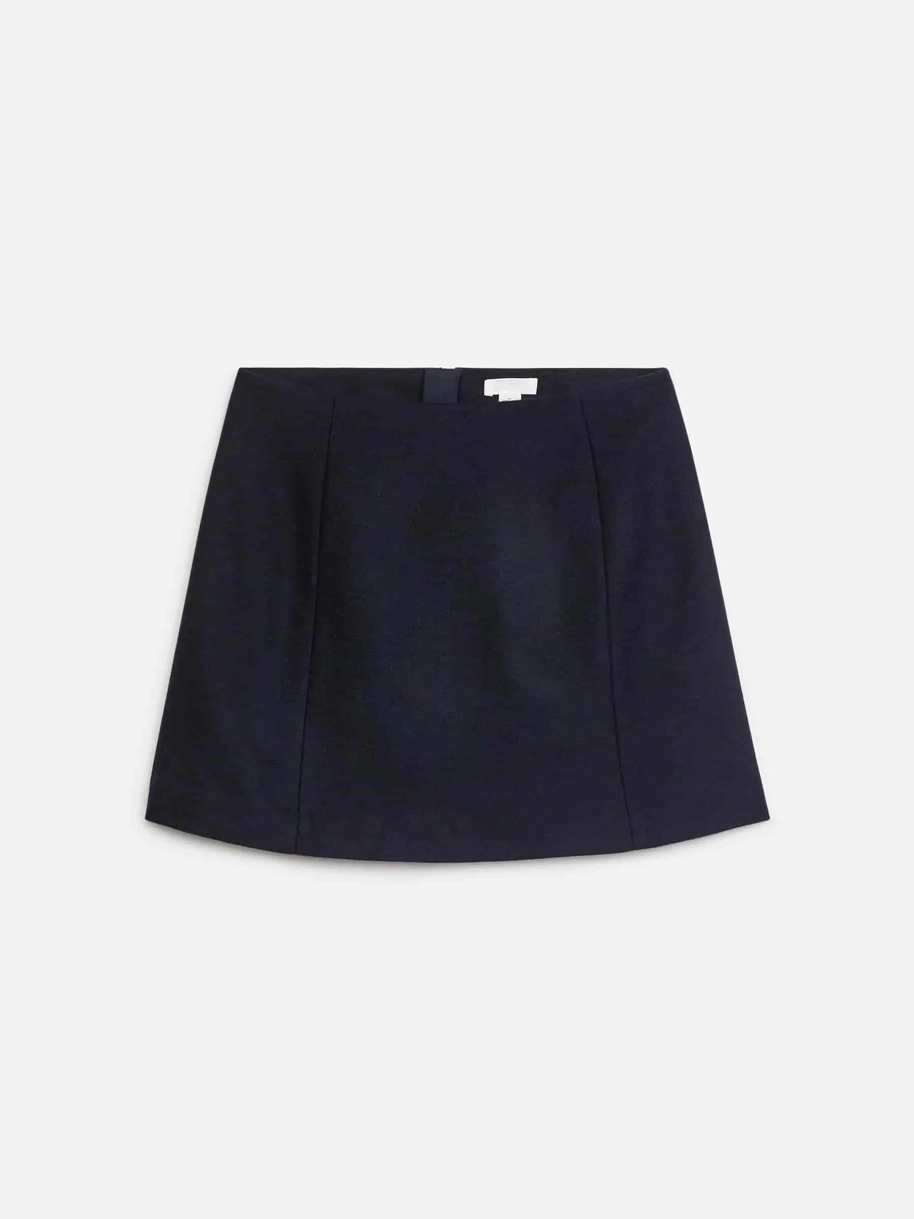 Minirock aus einer gefilzten Wollmischung. A-Linien-Stil mit vertikalen Nahtdetails vorne und Reißverschluss in der Mitte hinten. Der Rock hat eine normale Passform und eine hohe Taille. Gefüttert.
