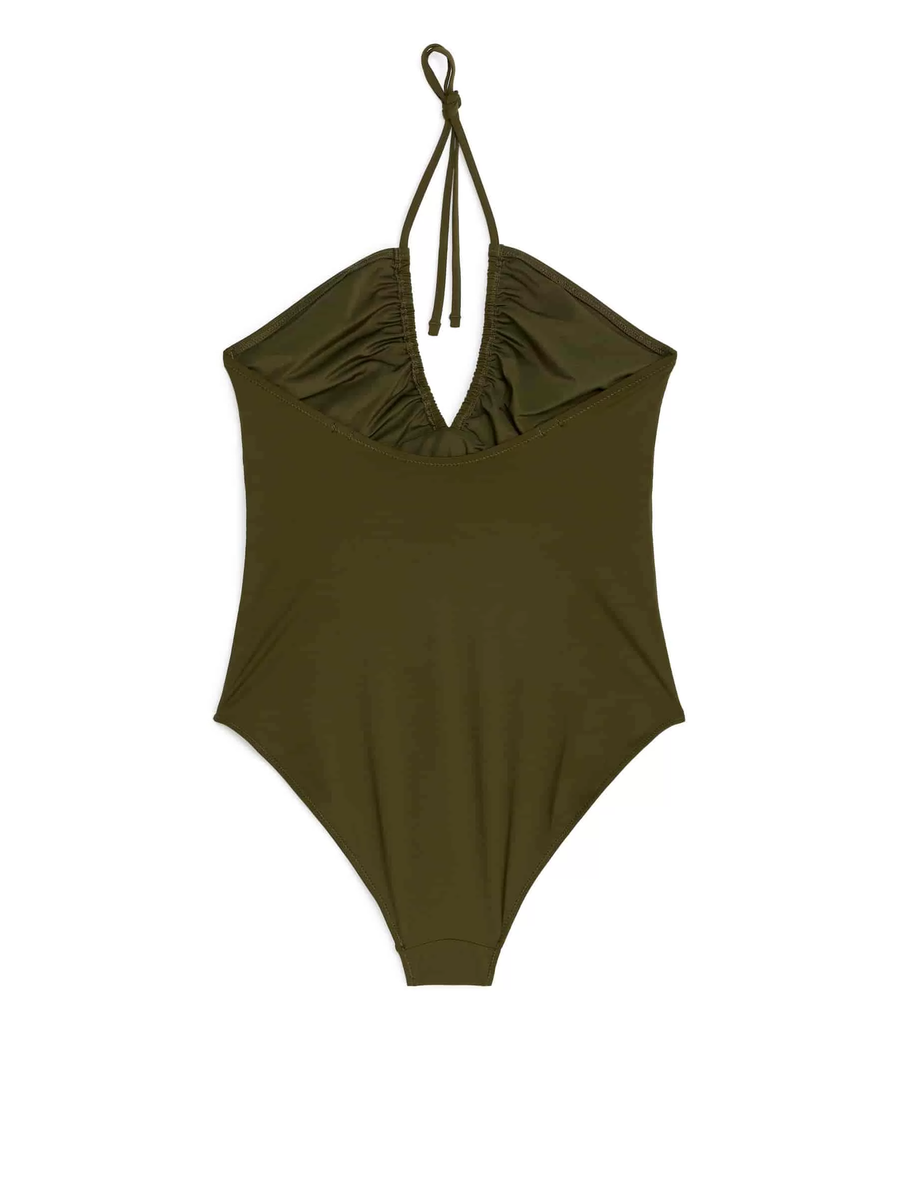 ARKE Damen Neckholder-Badeanzug Dunkelgrün