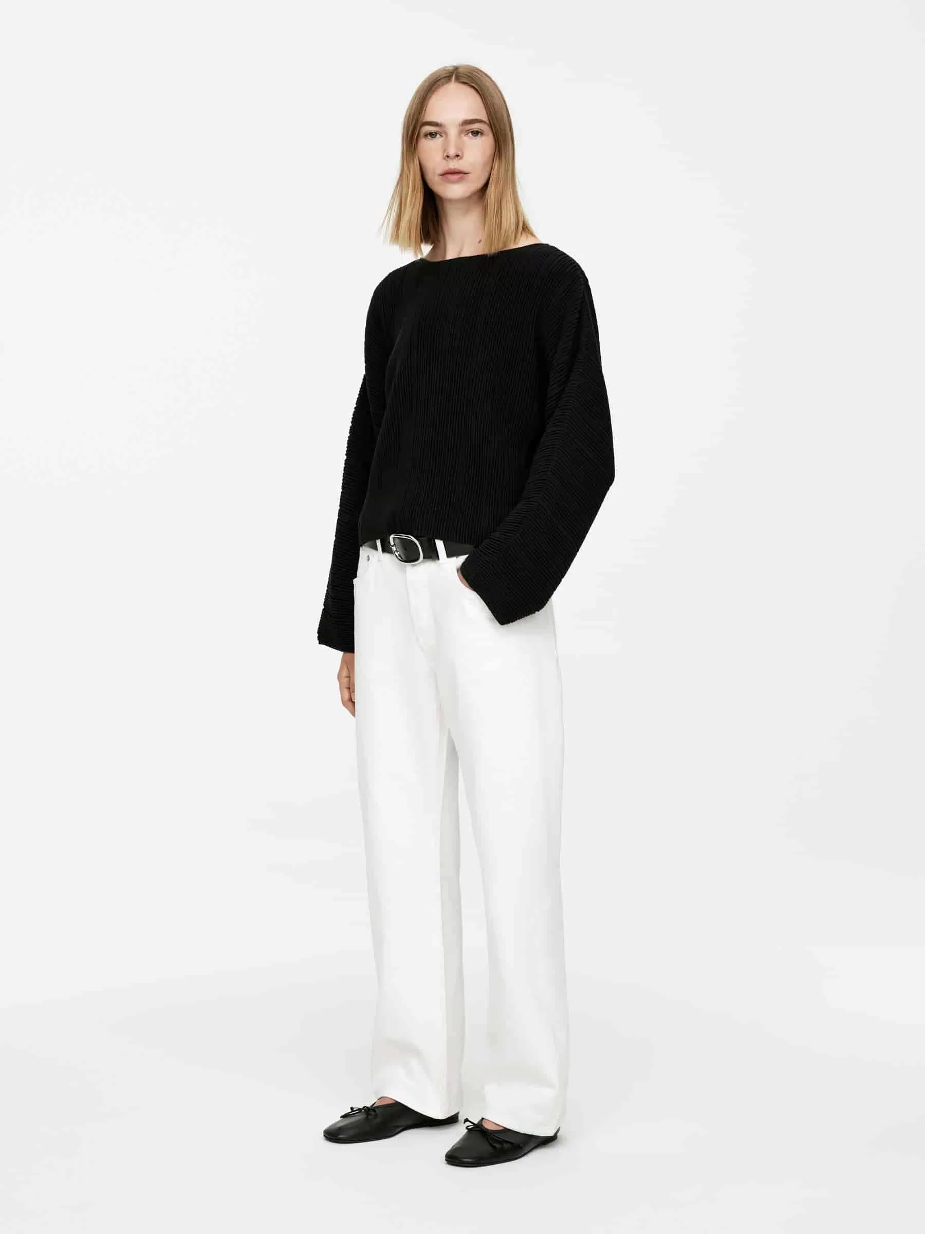 Stricktop aus Baumwolle mit Rippstruktur. Ein locker sitzender Stil mit Bindeband am Hals.