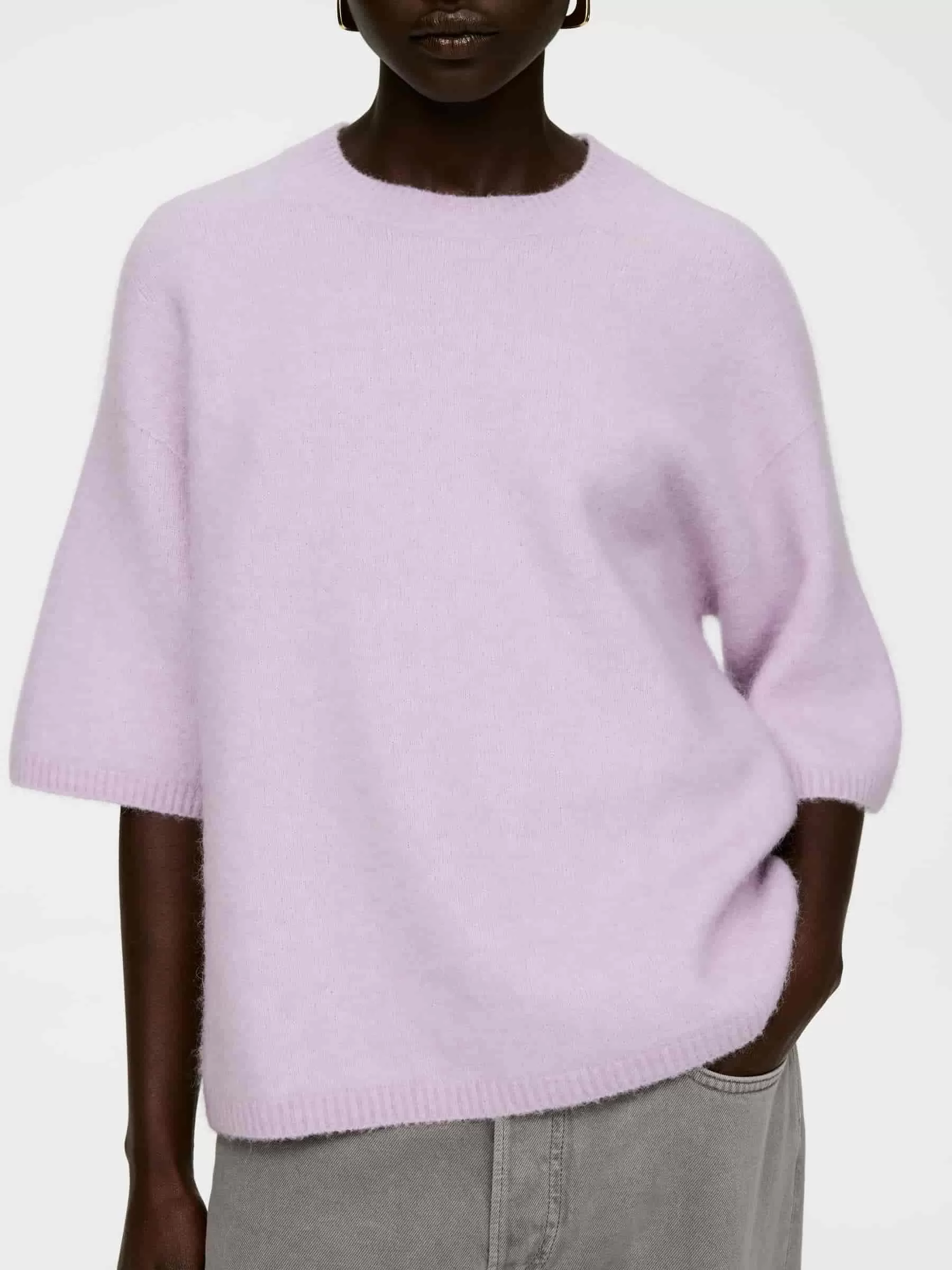 Kurzärmliger Pullover aus angenehmem Alpaka und Wolle. Ein Rundhalsausschnitt mit lockerer Passform. Gerippte Abschlüsse runden den Look ab. Dieser Stil enthält 31 % RAS-Alpaka und 31 % RWS-Wolle (TE-00047206). Produkte, die nach dem Responsible Wool Standard (RWS) und dem Responsible Alpaca Standard (RAS) zertifiziert sind, enthalten Wolle und Alpakafasern von Farmen, die unabhängig nach Tierschutz- und Landmanagementanforderungen zertifiziert sind.